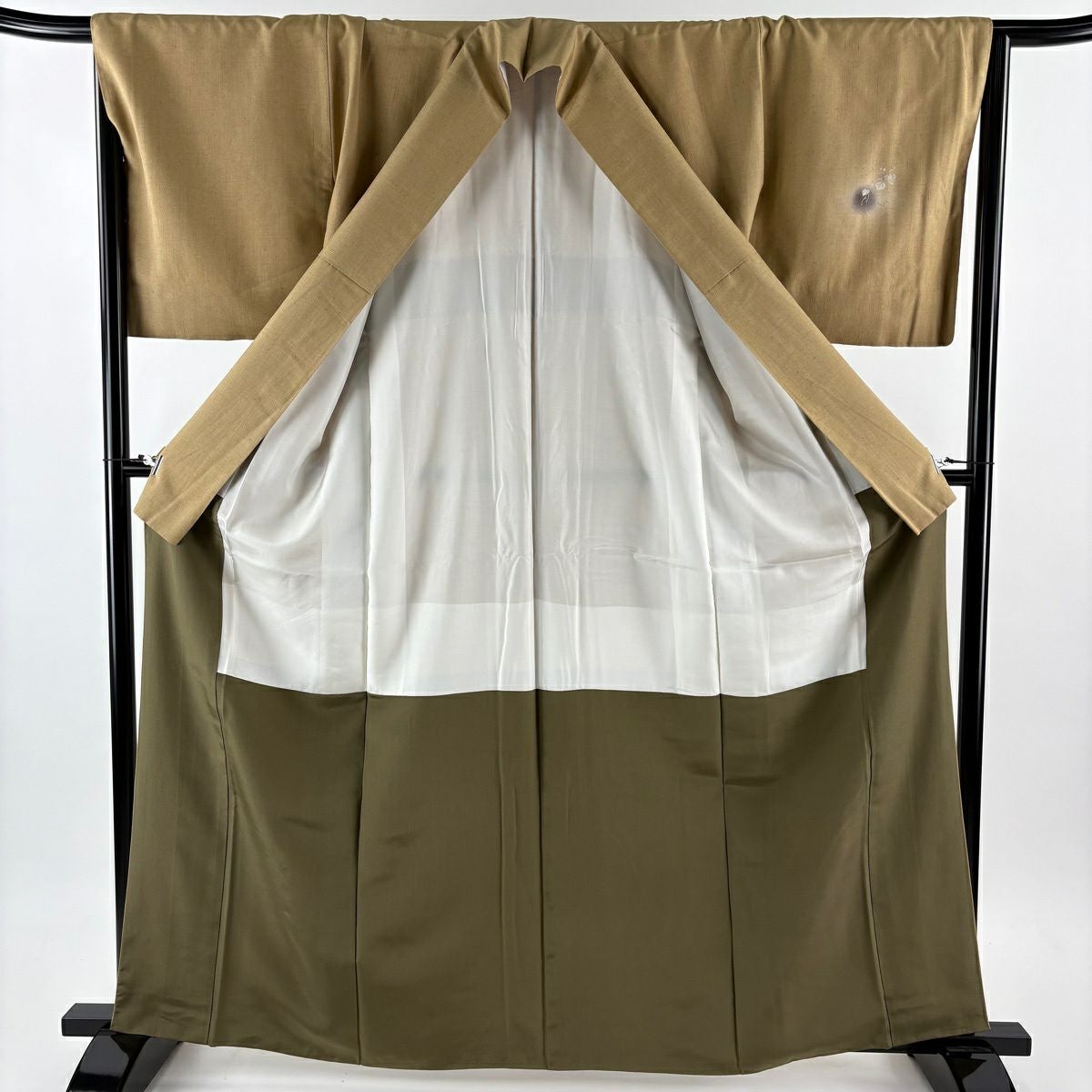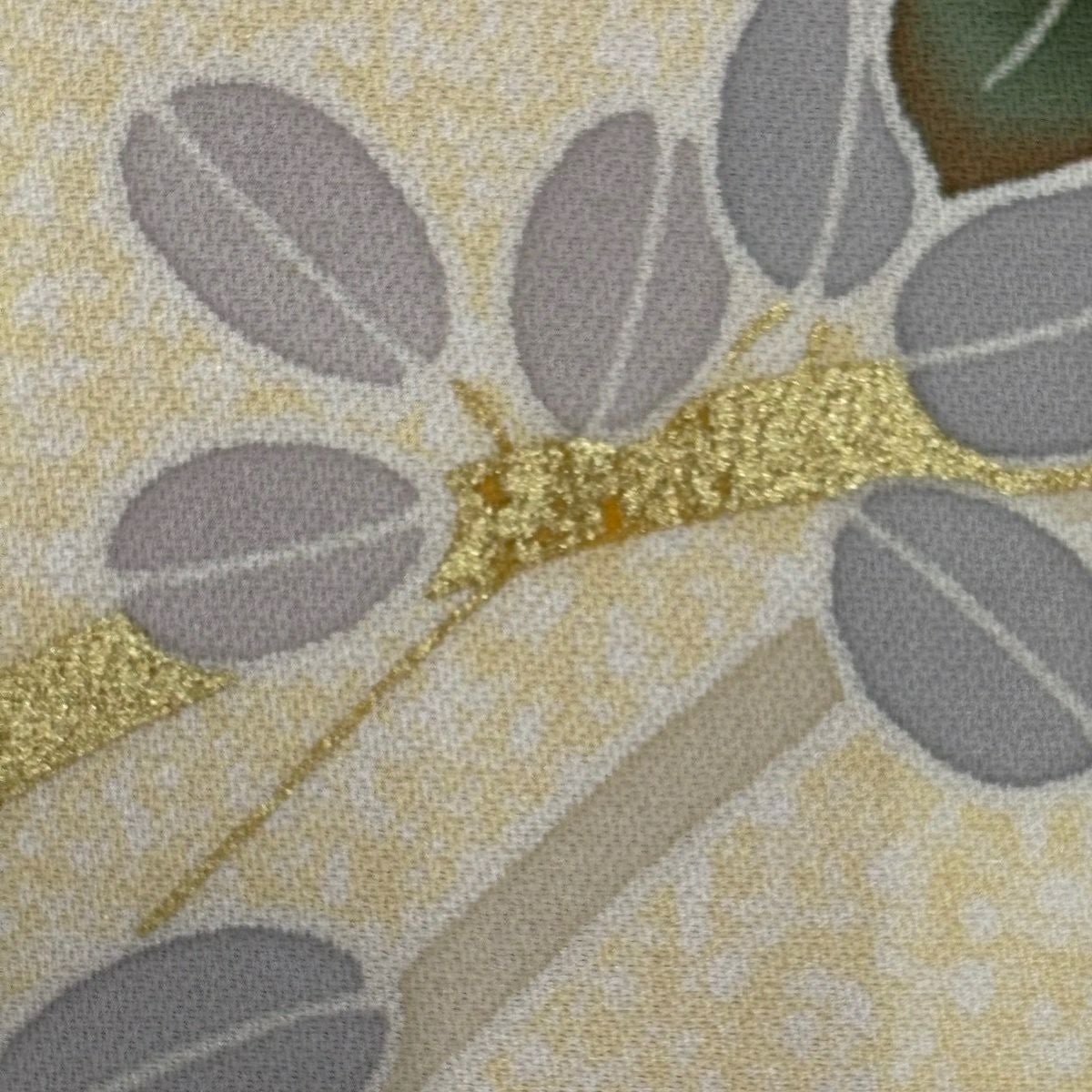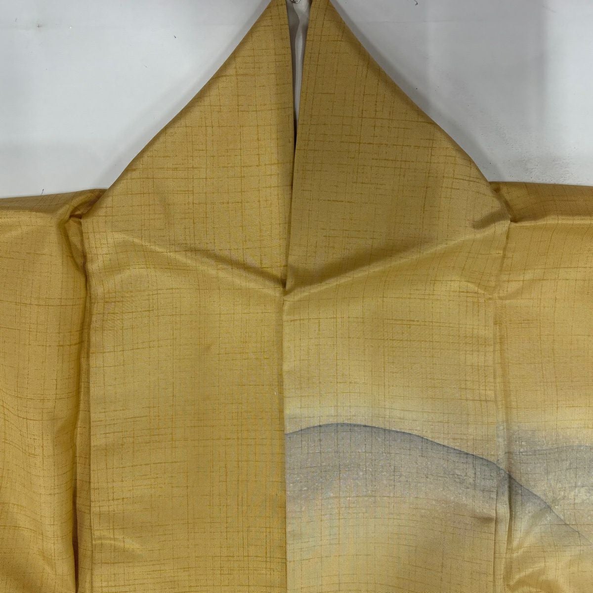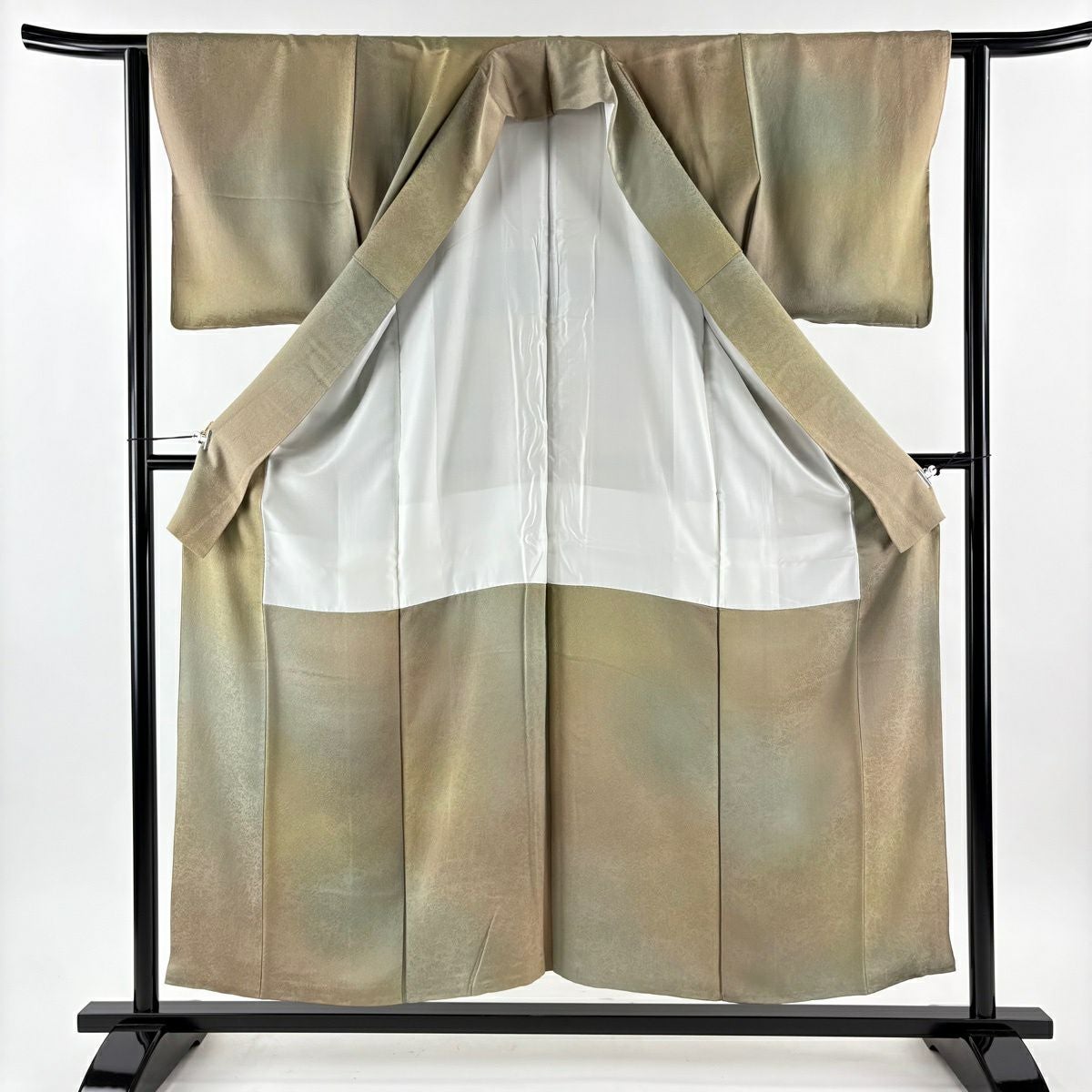 付下げ 身丈164cm 裄丈67cm M 袷 紬地 やまと 雪輪 柳 金銀彩 ぼかし 薄黄土色 正絹 秀品
