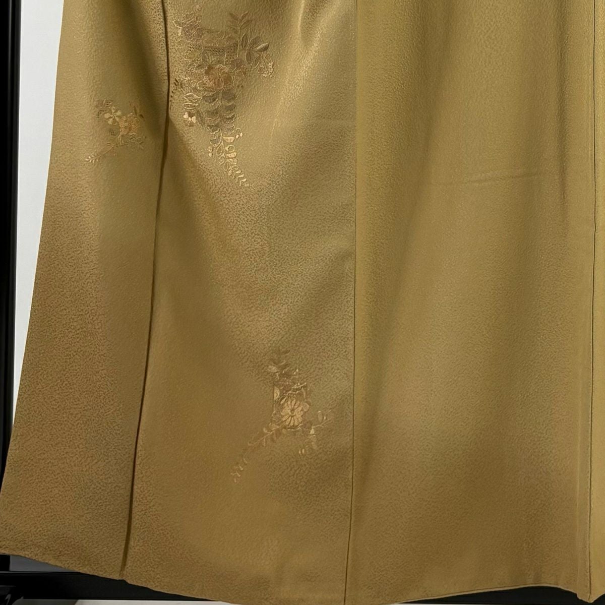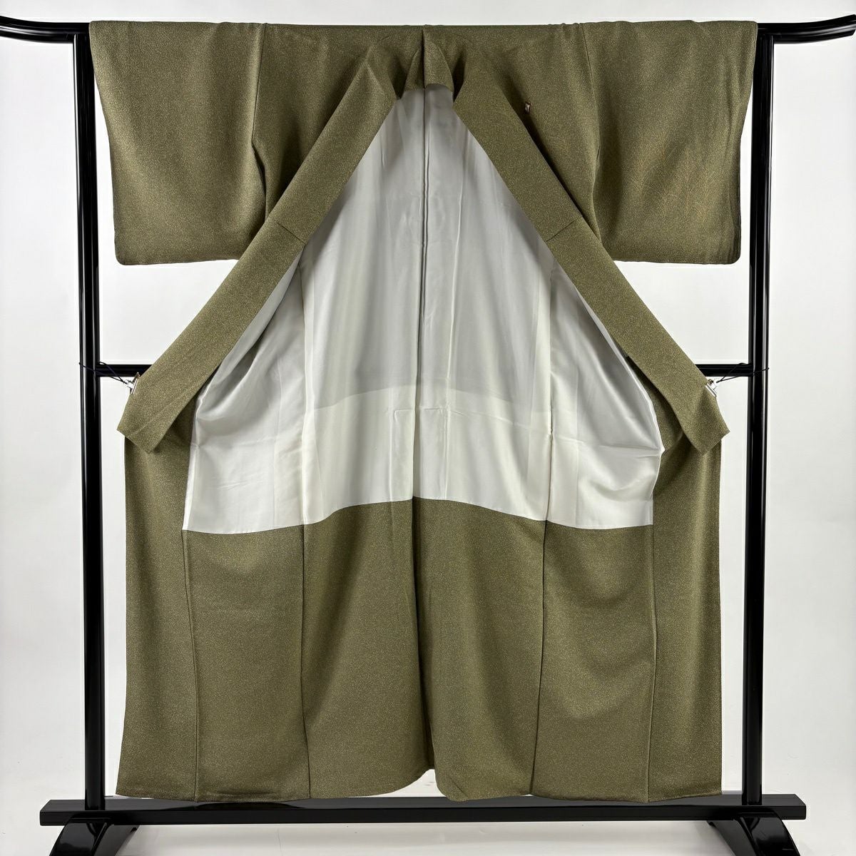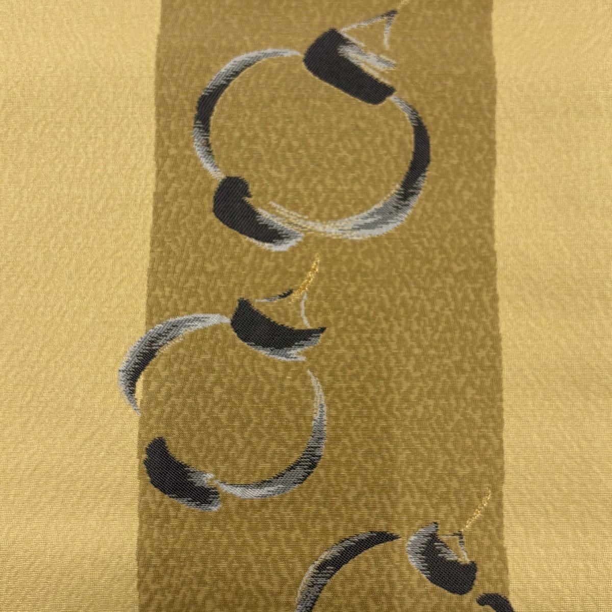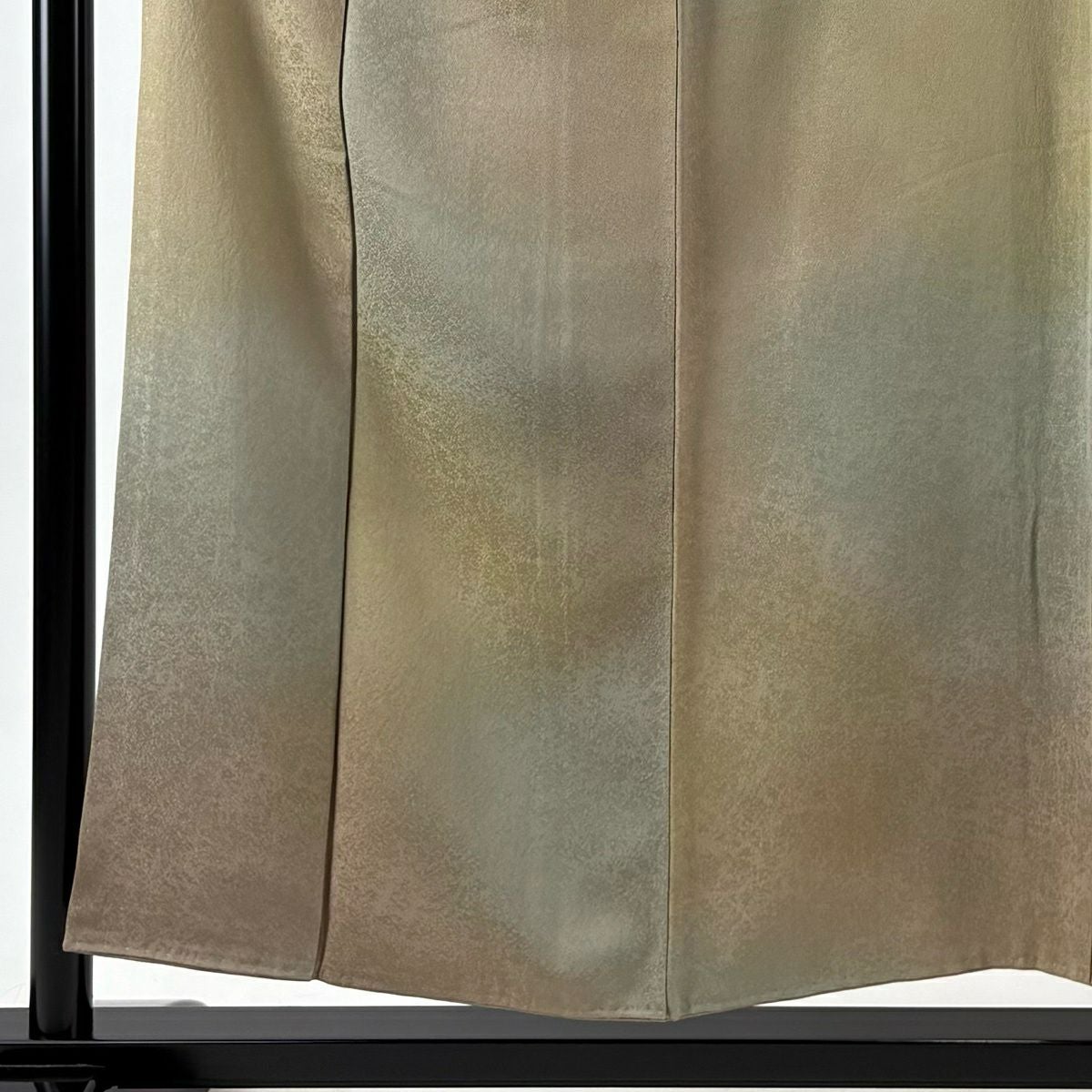 付下げ 身丈164cm 裄丈67cm M 袷 紬地 やまと 雪輪 柳 金銀彩 ぼかし 薄黄土色 正絹 秀品