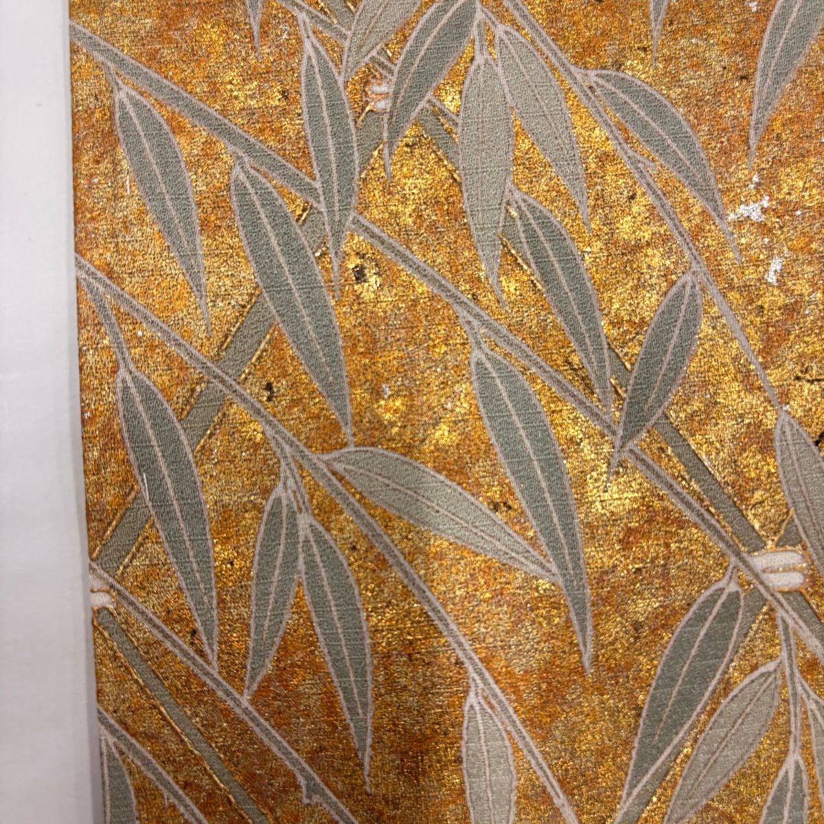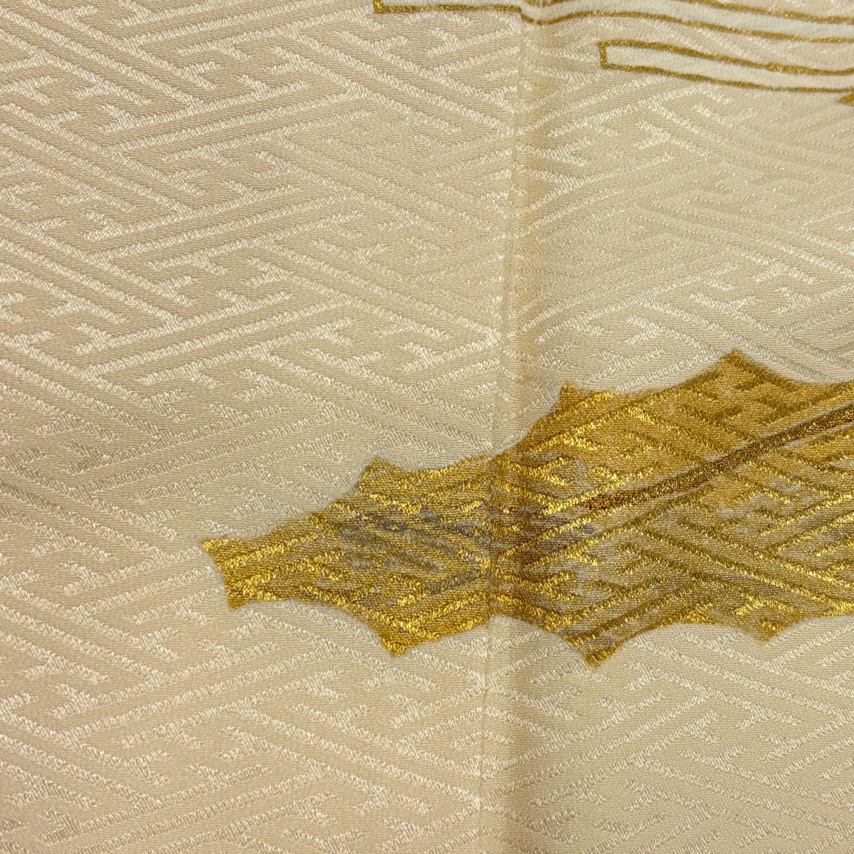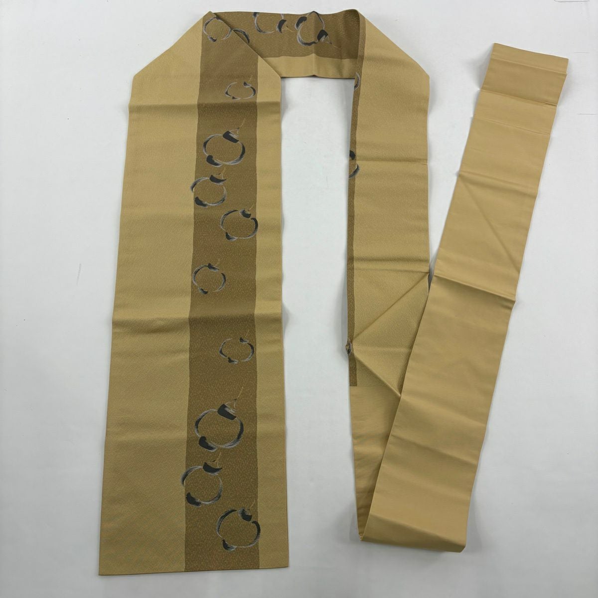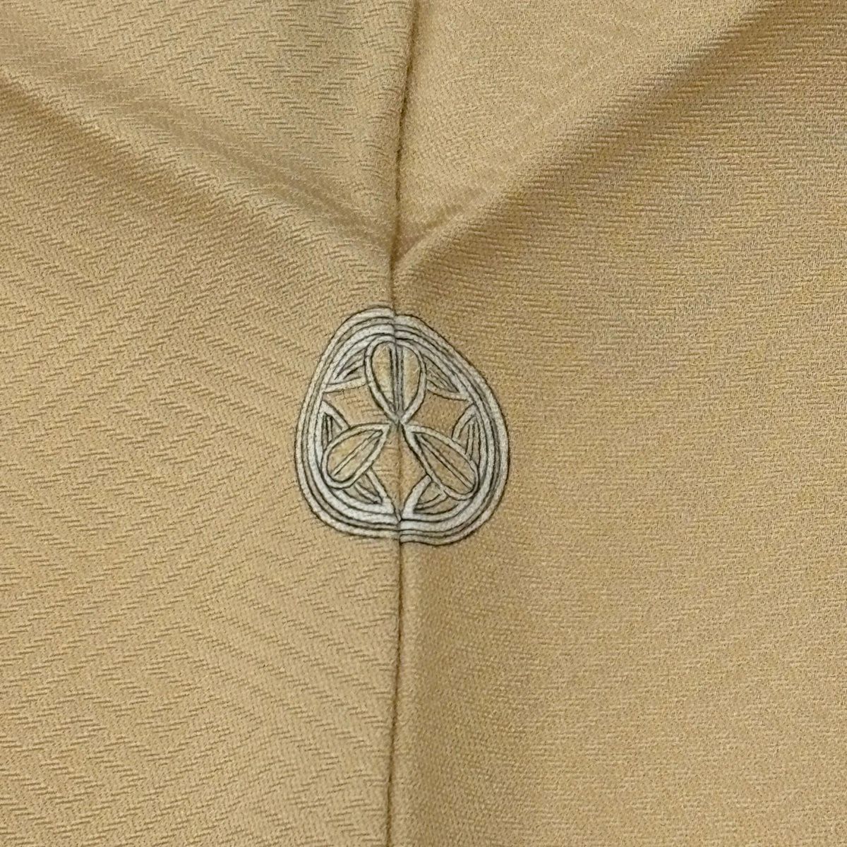 付下げ 身丈164cm 裄丈67cm M 袷 紬地 やまと 雪輪 柳 金銀彩 ぼかし 薄黄土色 正絹 秀品
