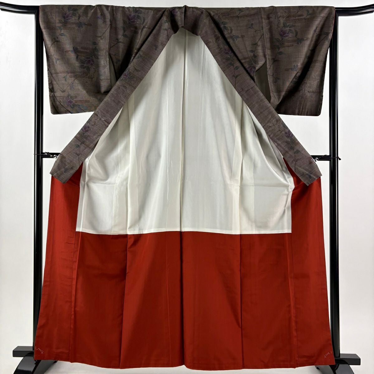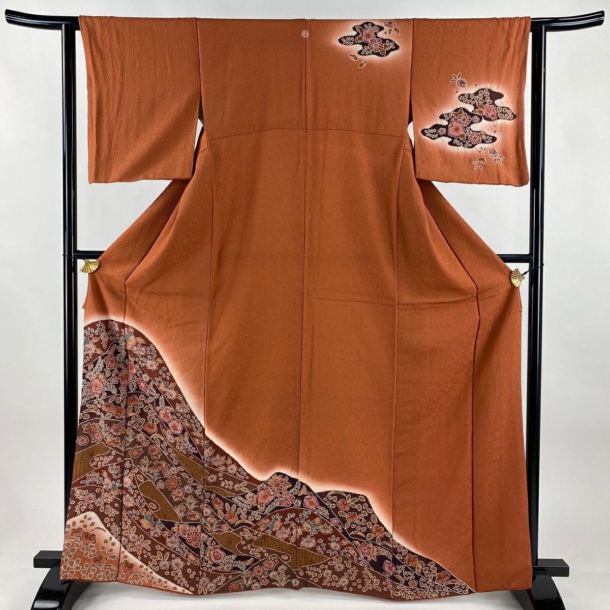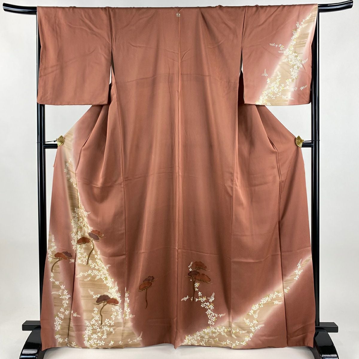 【在庫一掃】 訪問着 身丈164cm 裄丈67cm M 袷 松 萩 金彩 刺繍 薄小豆 正絹 秀品 一つ紋