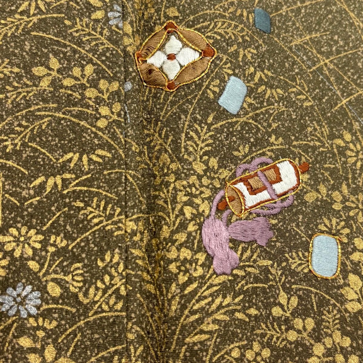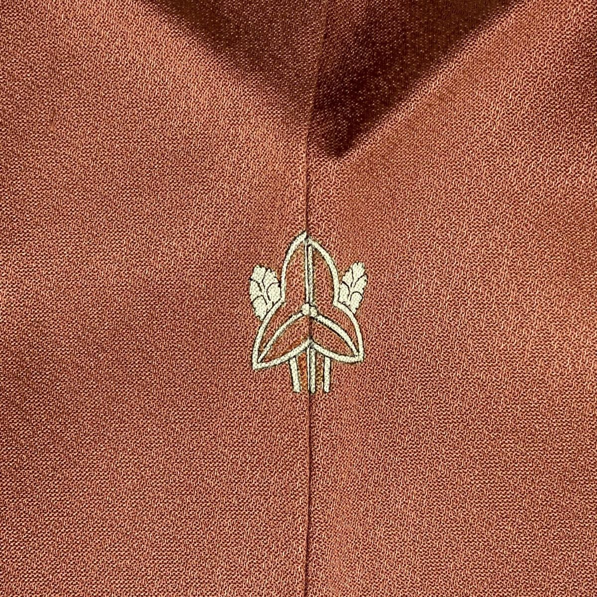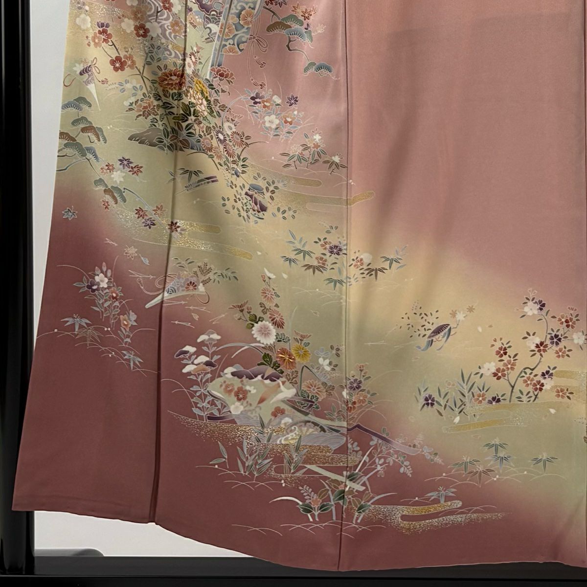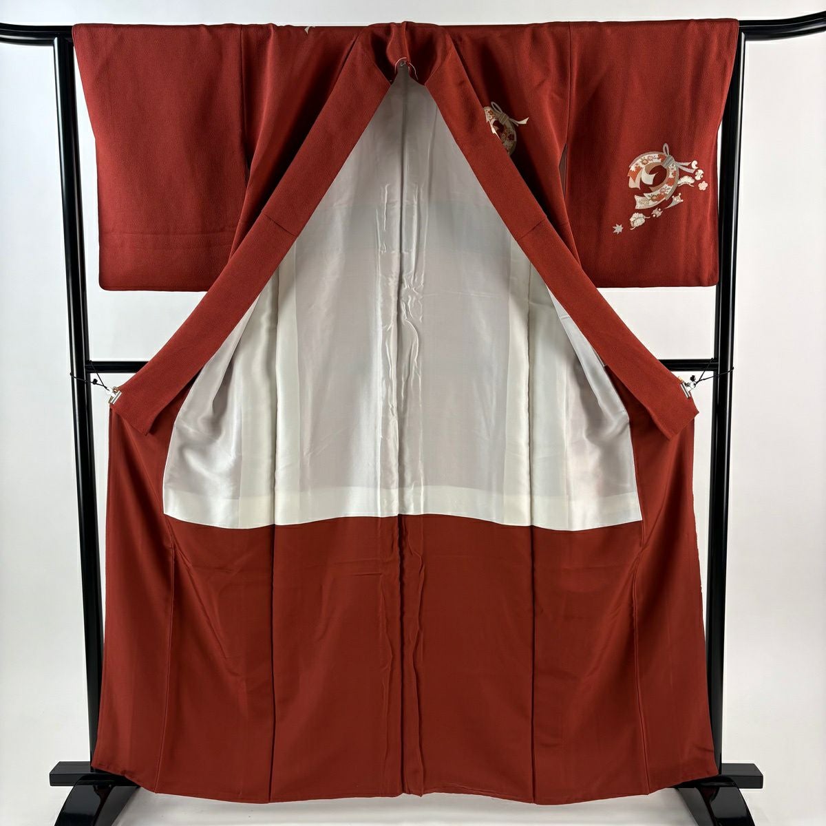 【在庫一掃】 訪問着 身丈164cm 裄丈67cm M 袷 松 萩 金彩 刺繍 薄小豆 正絹 秀品 一つ紋