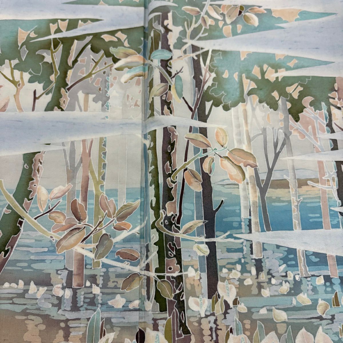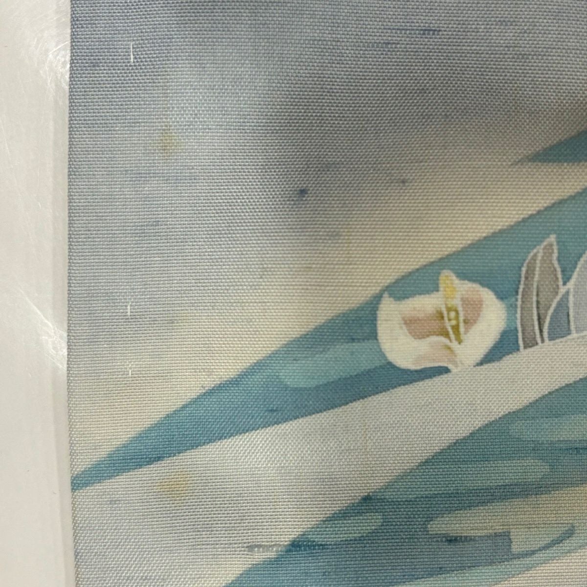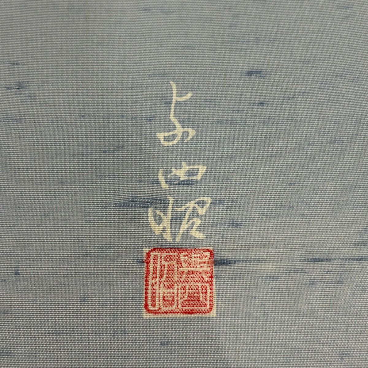訪問着 身丈166.5cm 裄丈67.5cm L 袷 紬地 落款あり 水辺の風景 水芭蕉 ぼかし 水色 正絹 秀品
