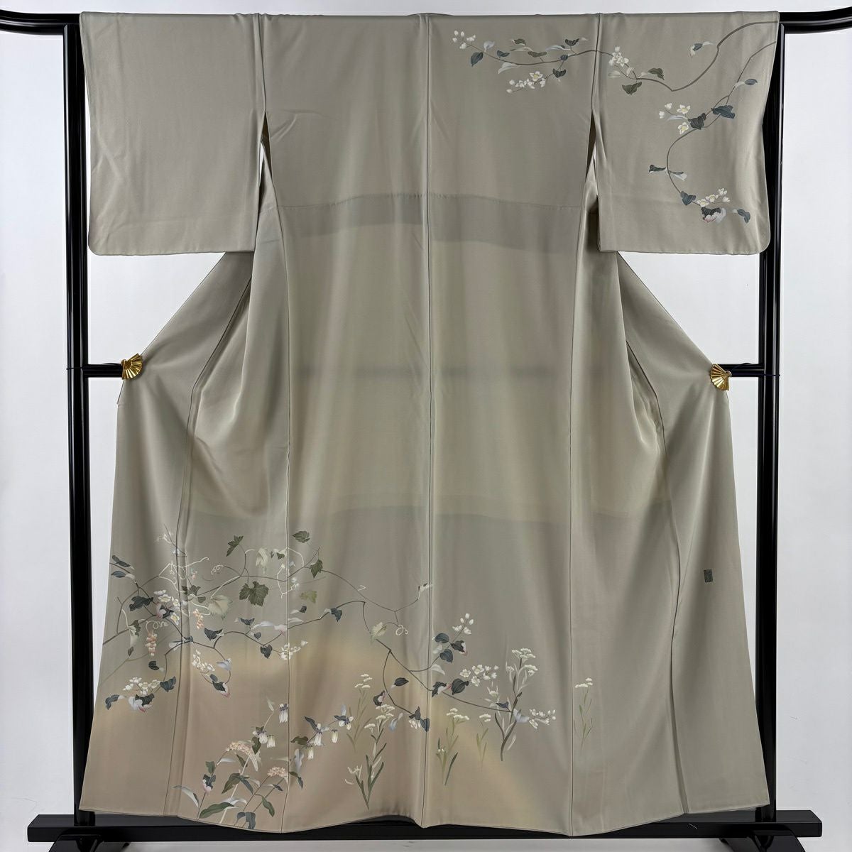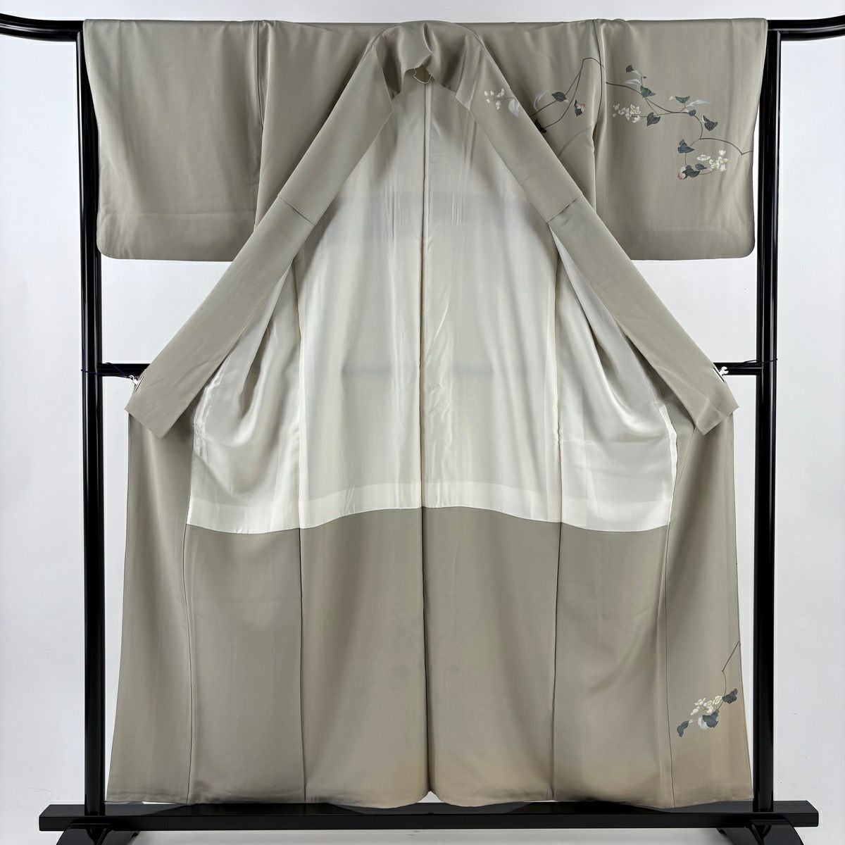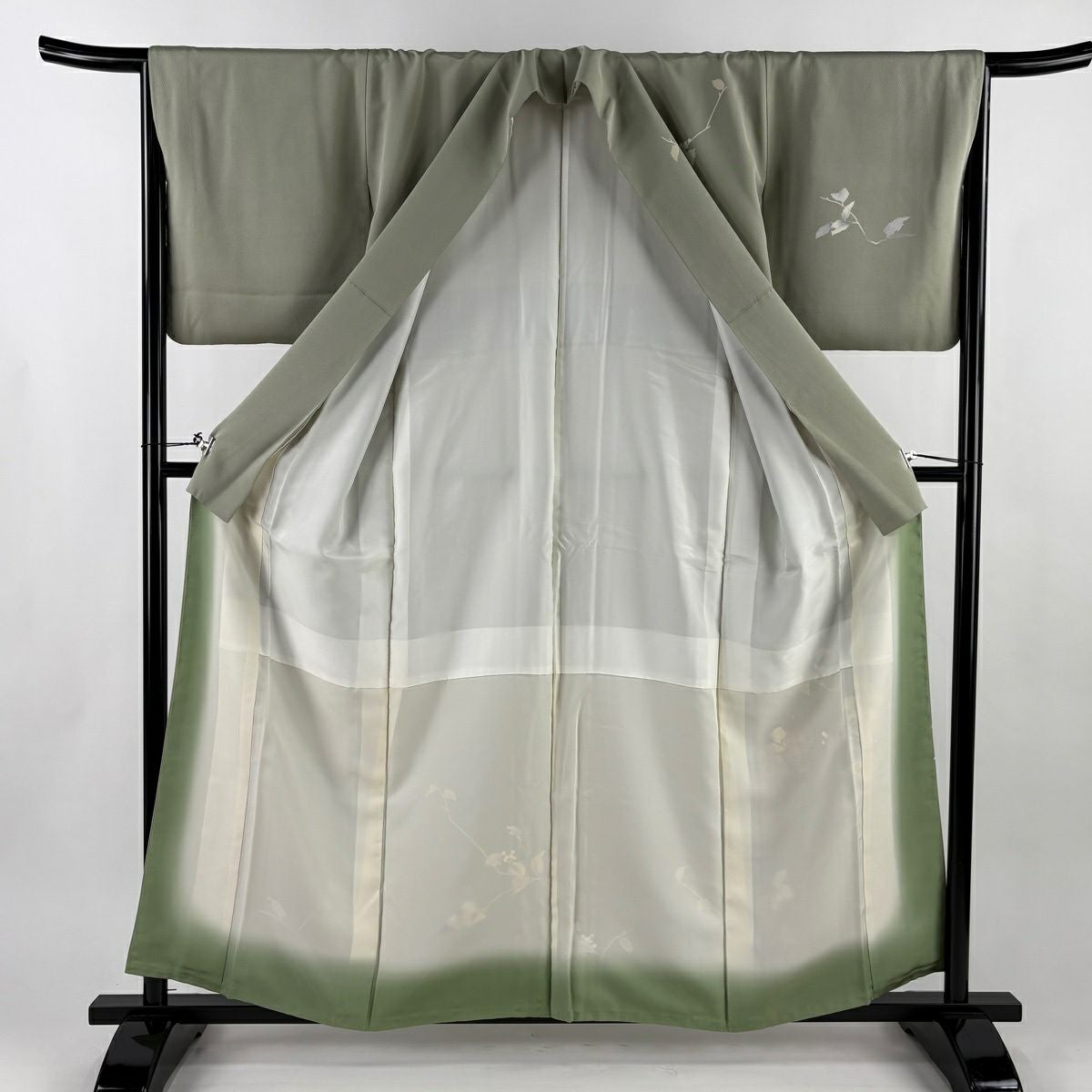 【美品】 訪問着 身丈157cm 裄丈65.5cm M 袷 落款あり 枝花 葡萄 ぼかし 灰茶 正絹 秀品