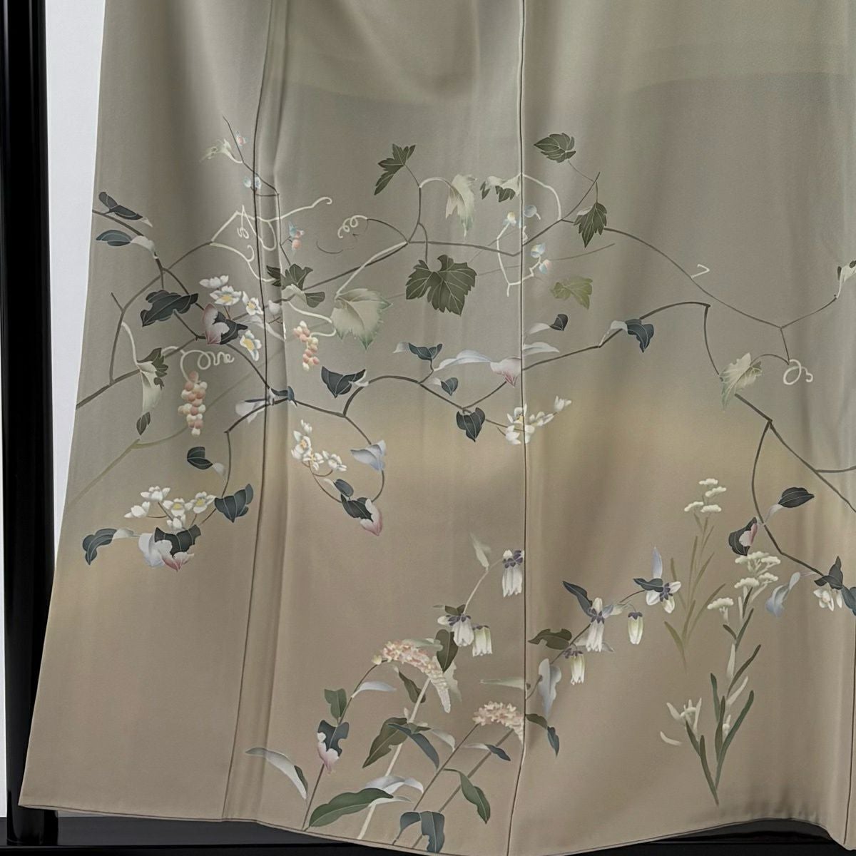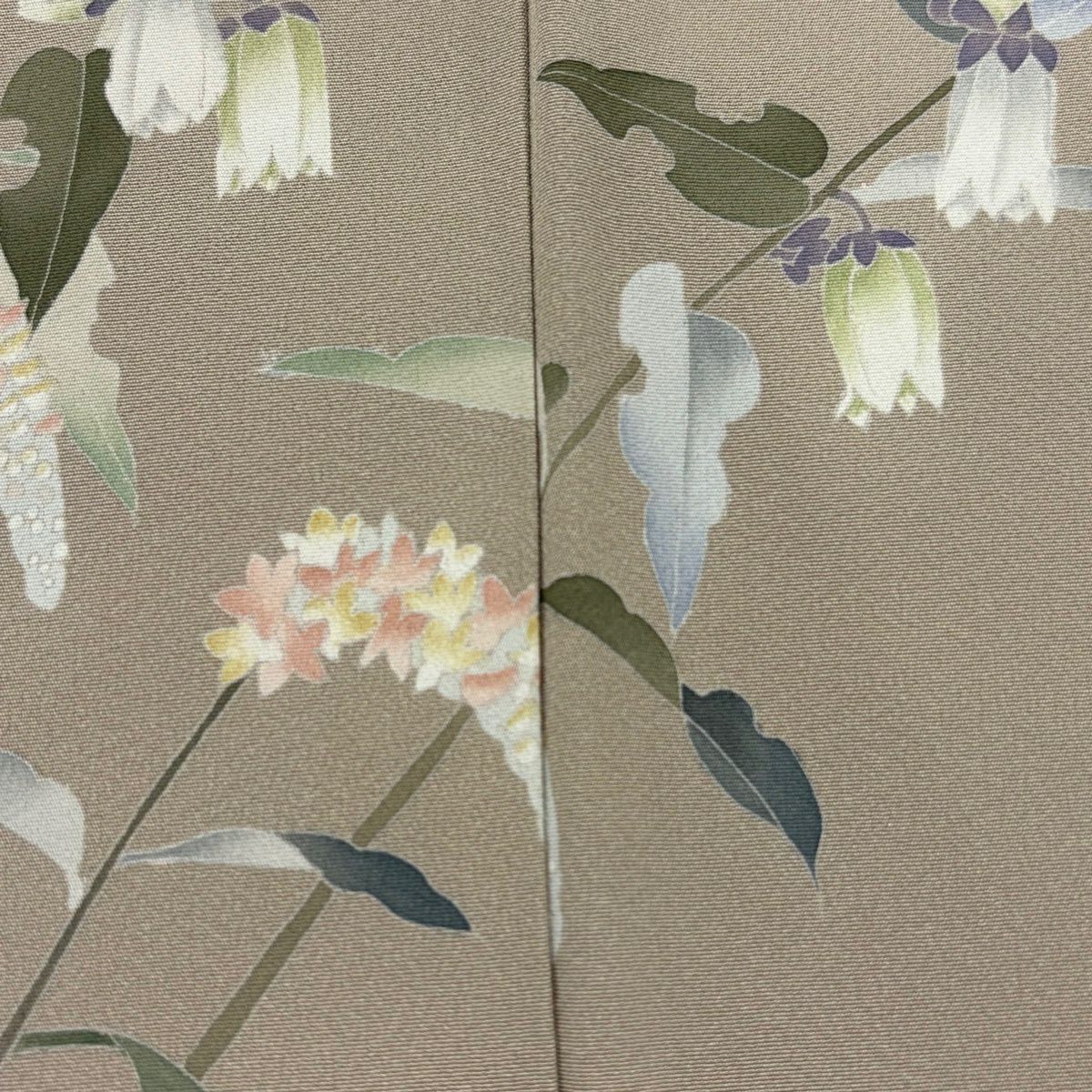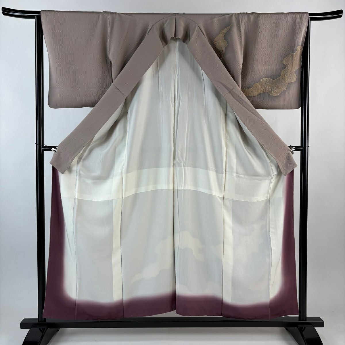【美品】 訪問着 身丈157cm 裄丈65.5cm M 袷 落款あり 枝花 葡萄 ぼかし 灰茶 正絹 秀品