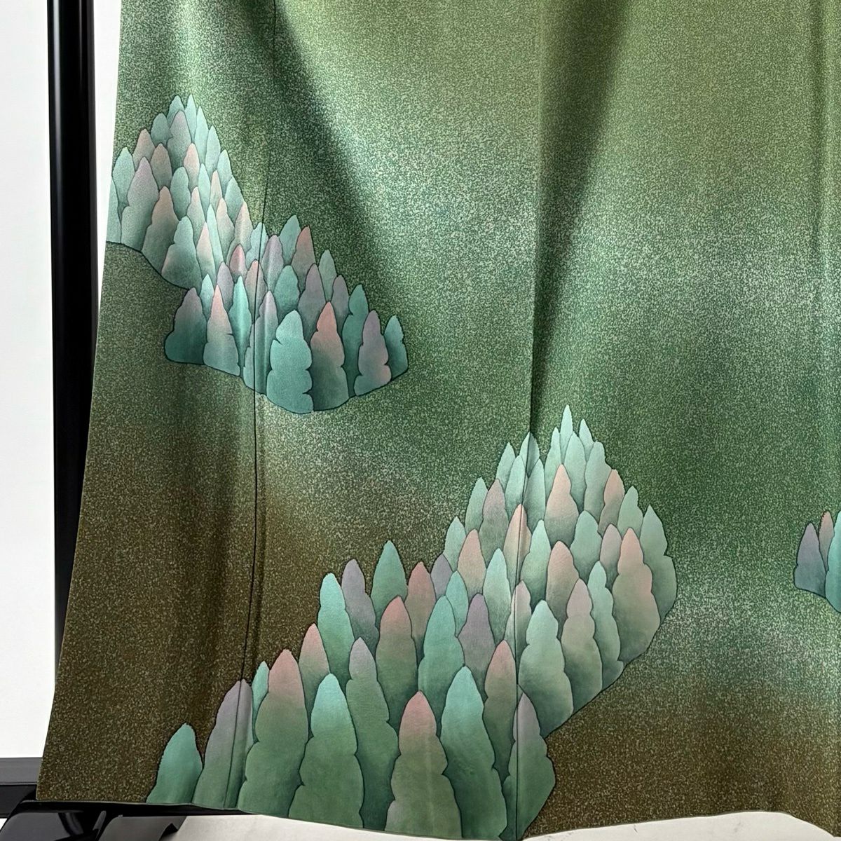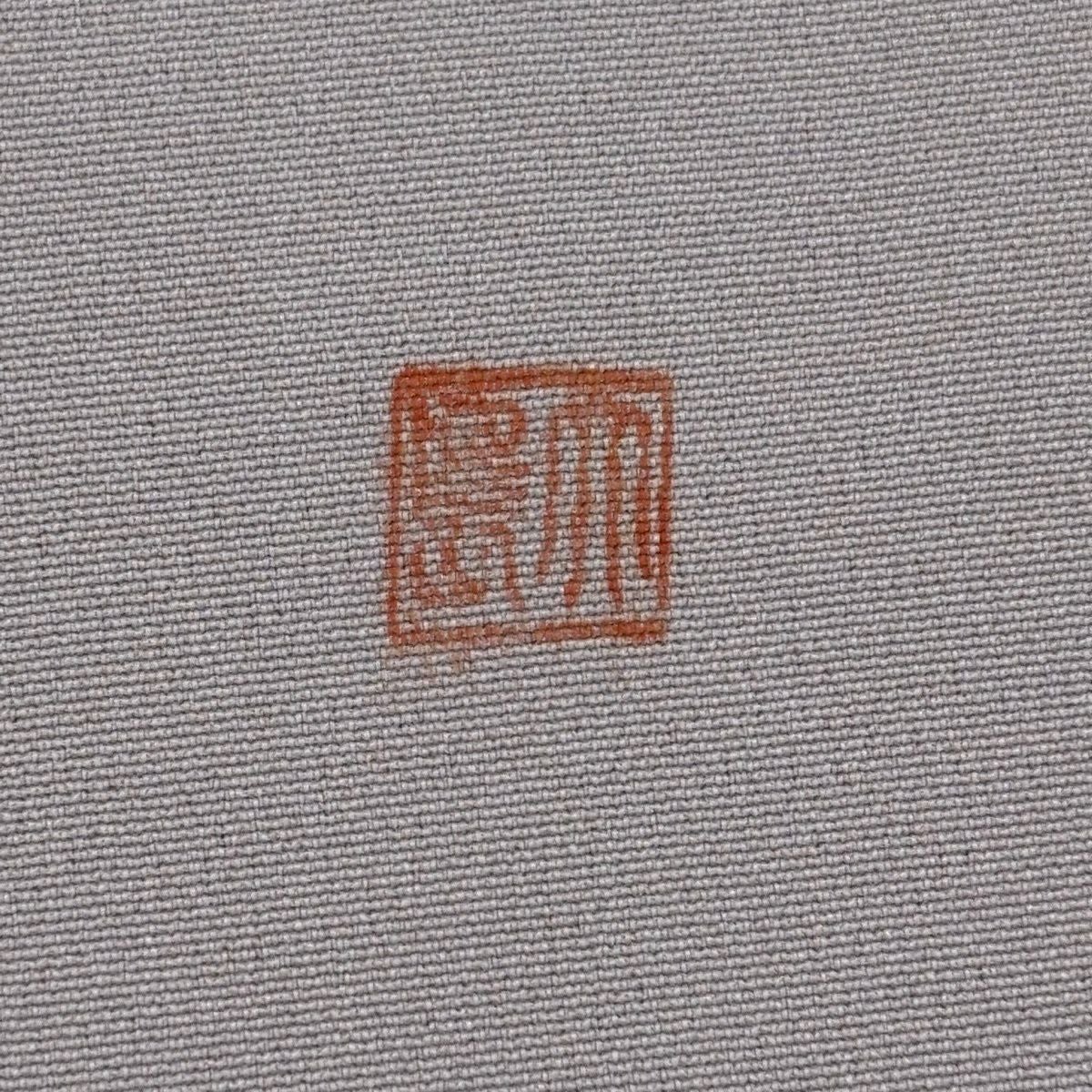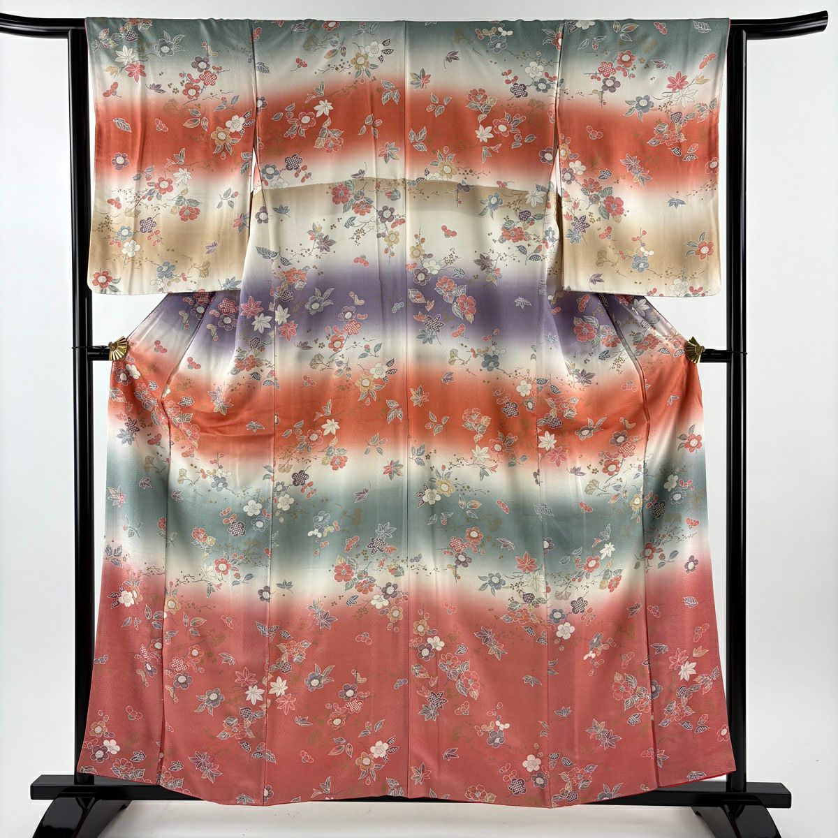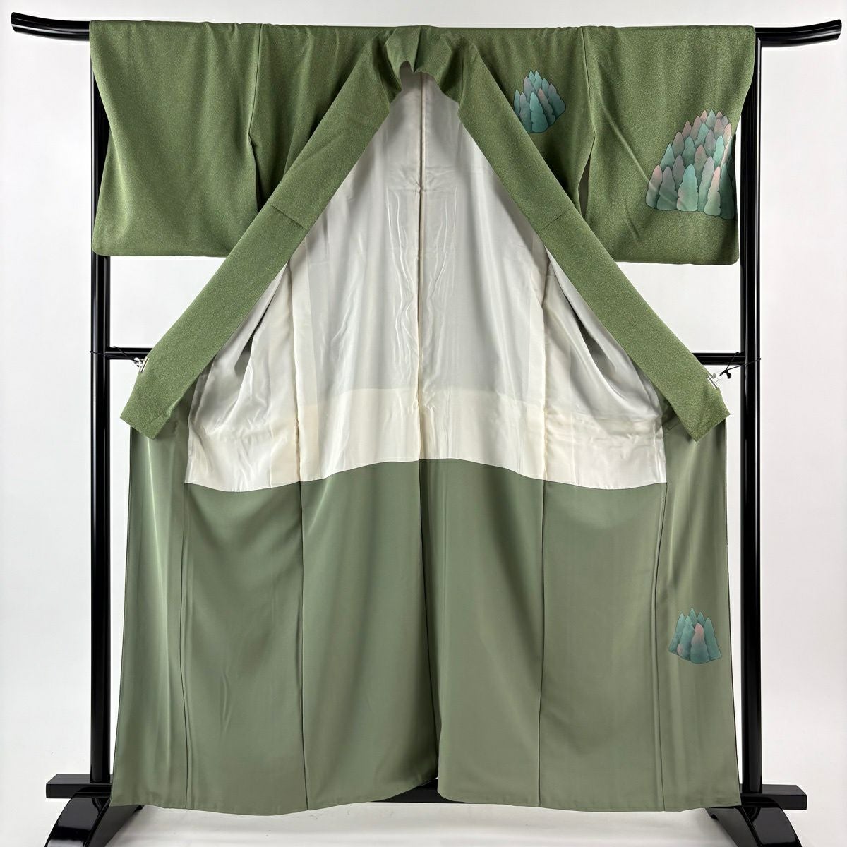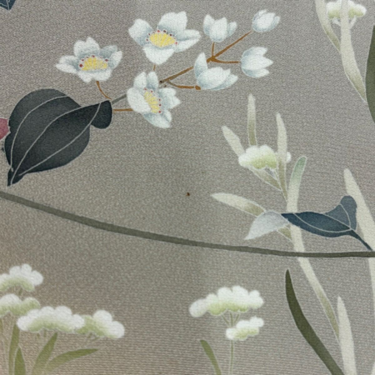 訪問着 身丈158cm 裄丈63.5cm S 袷 落款あり 枝花 若松 染め分け ぼかし 灰色 正絹 秀品