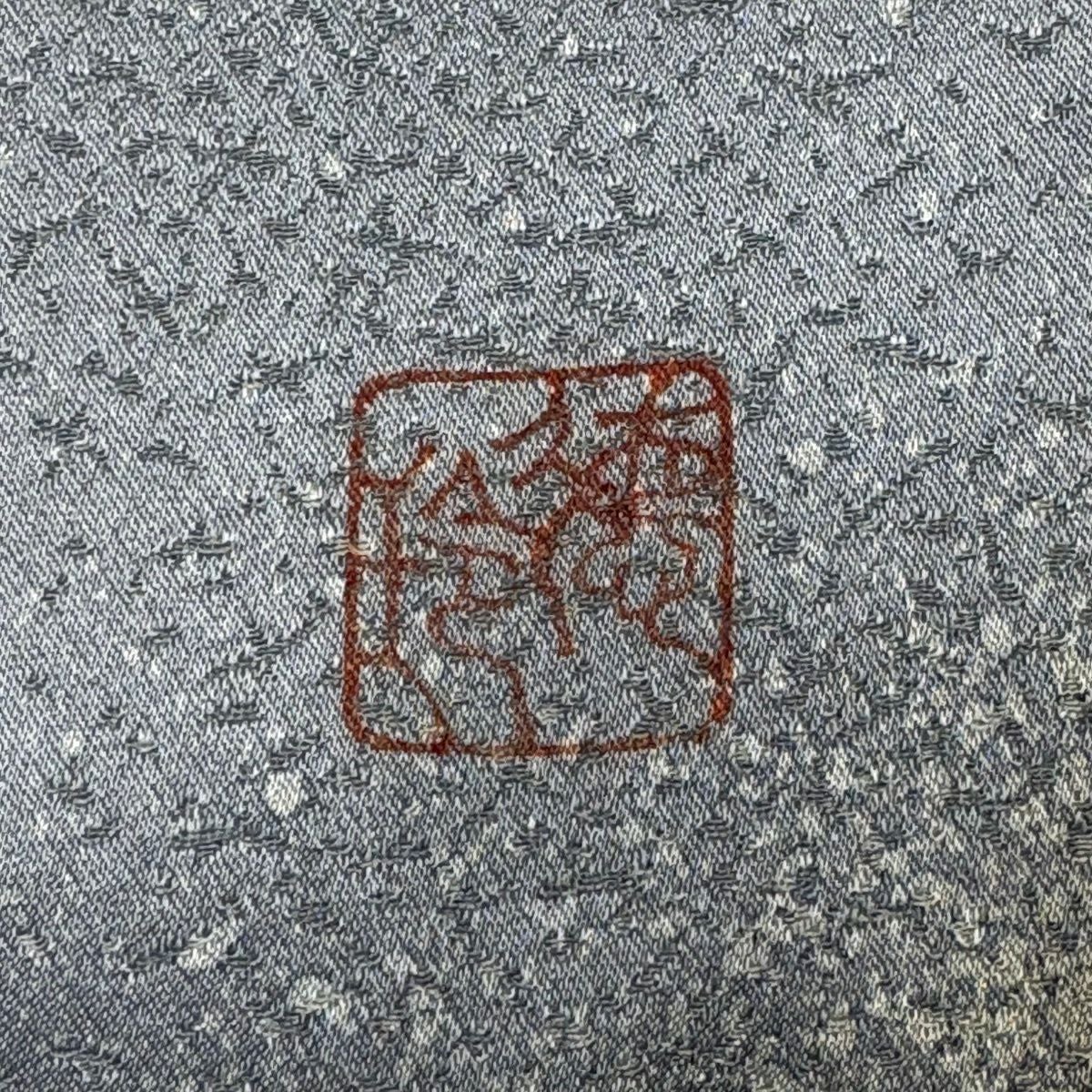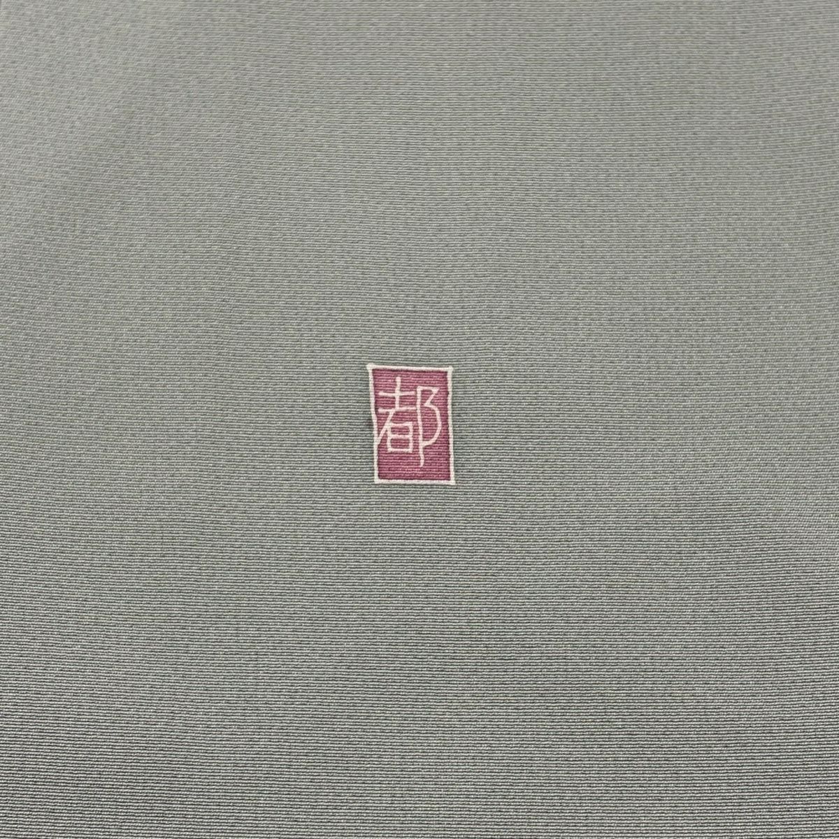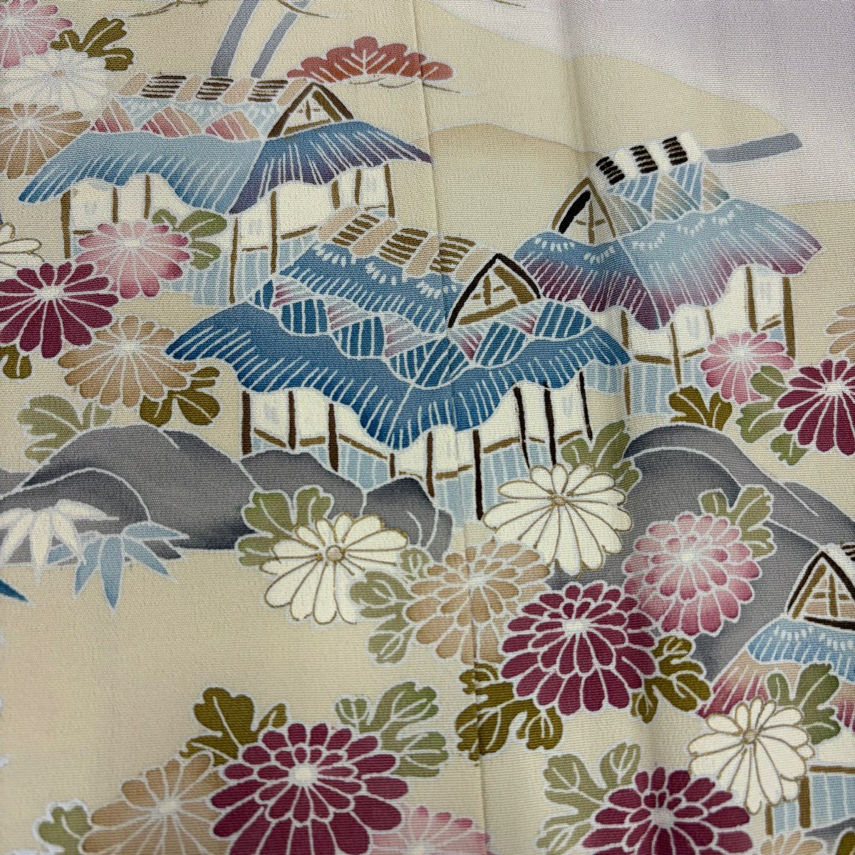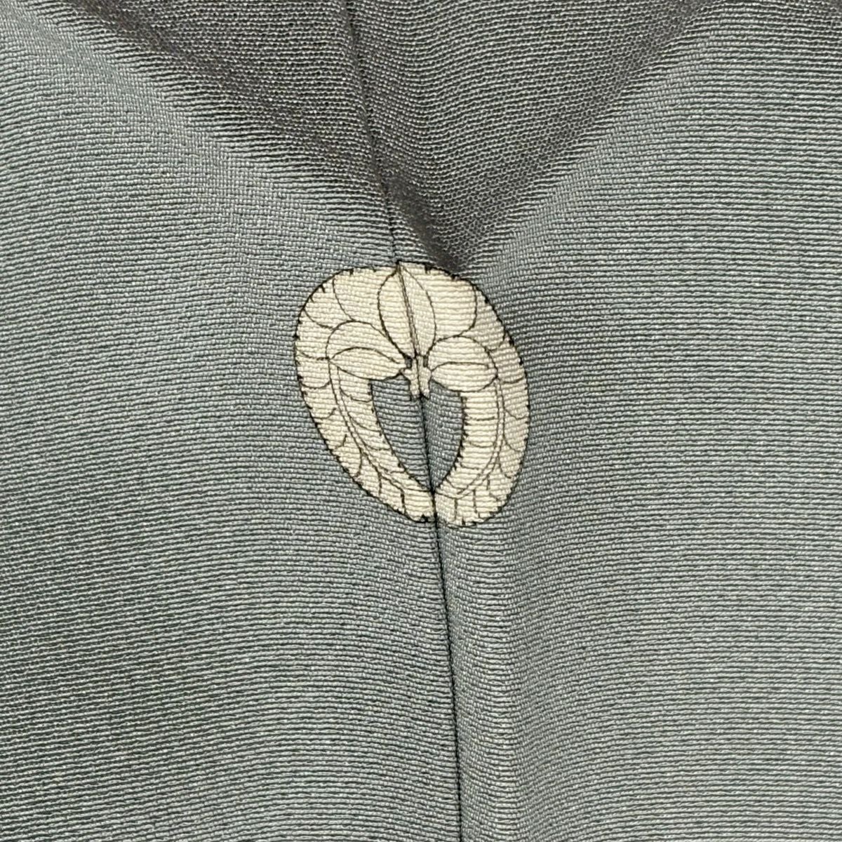 訪問着 身丈153.5cm 裄丈64cm M 袷 落款あり 枝花 家屋 ぼかし 青灰色 正絹 秀品 一つ紋