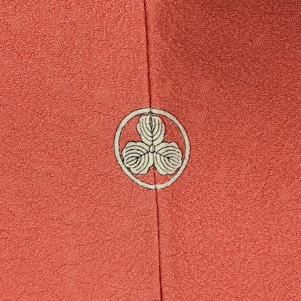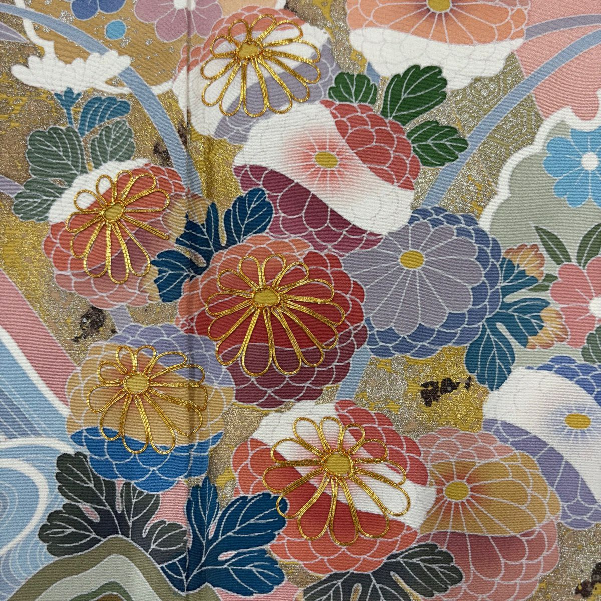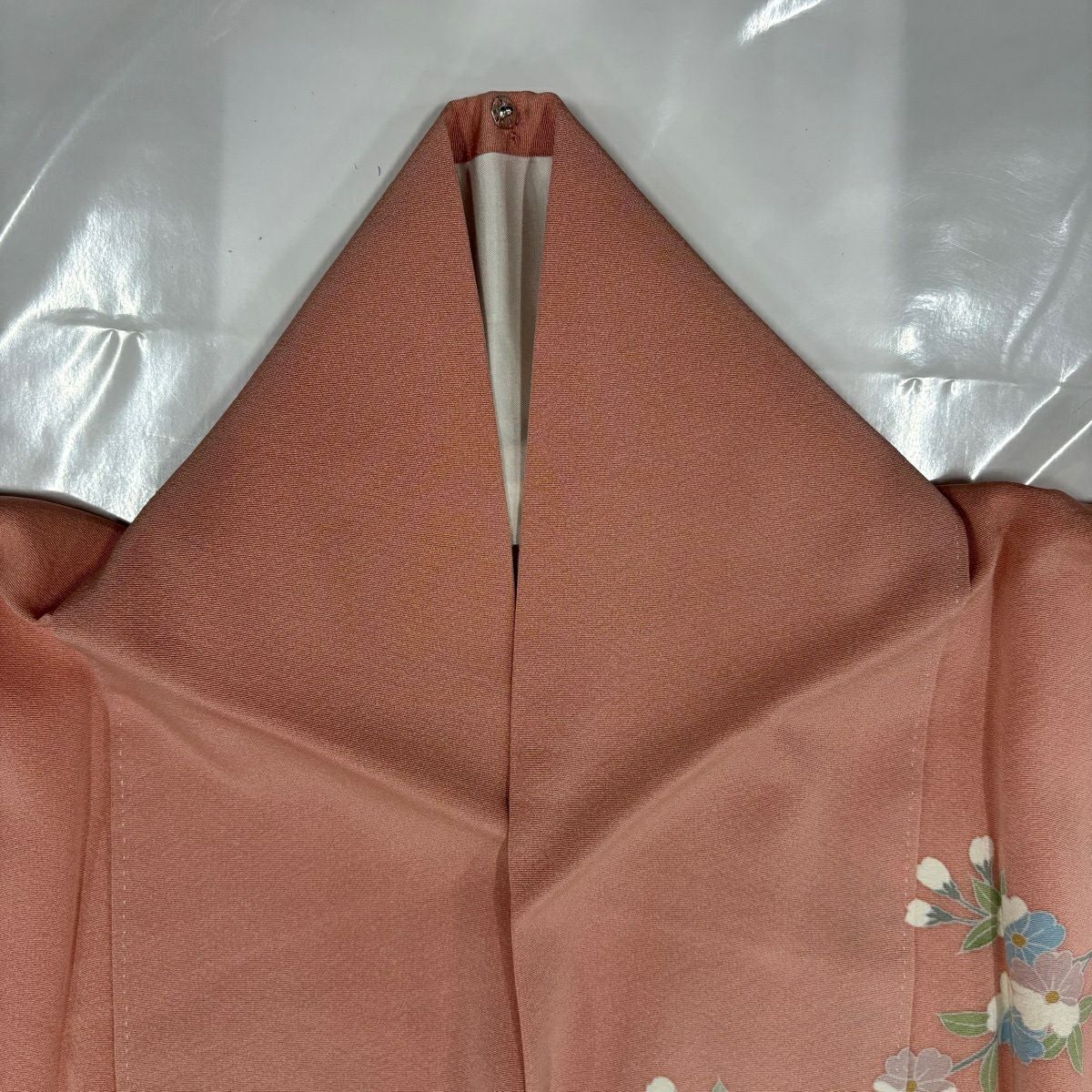 訪問着 身丈164cm 裄丈67cm M 袷 落款あり 雪輪 菊 金糸 金銀彩 サーモンピンク 正絹 秀品