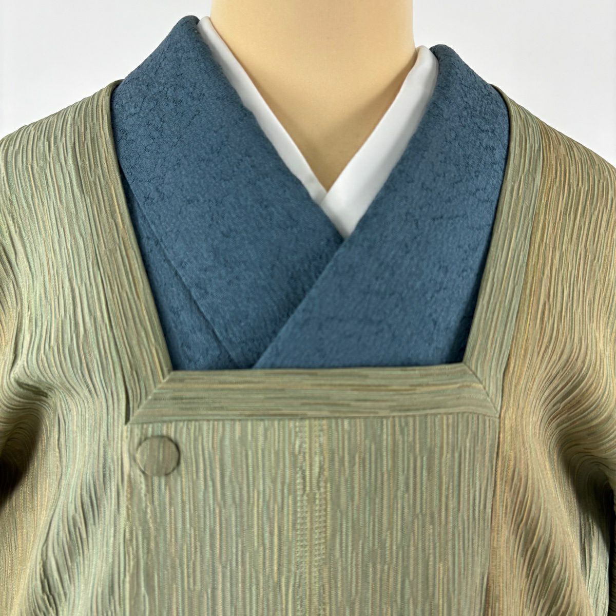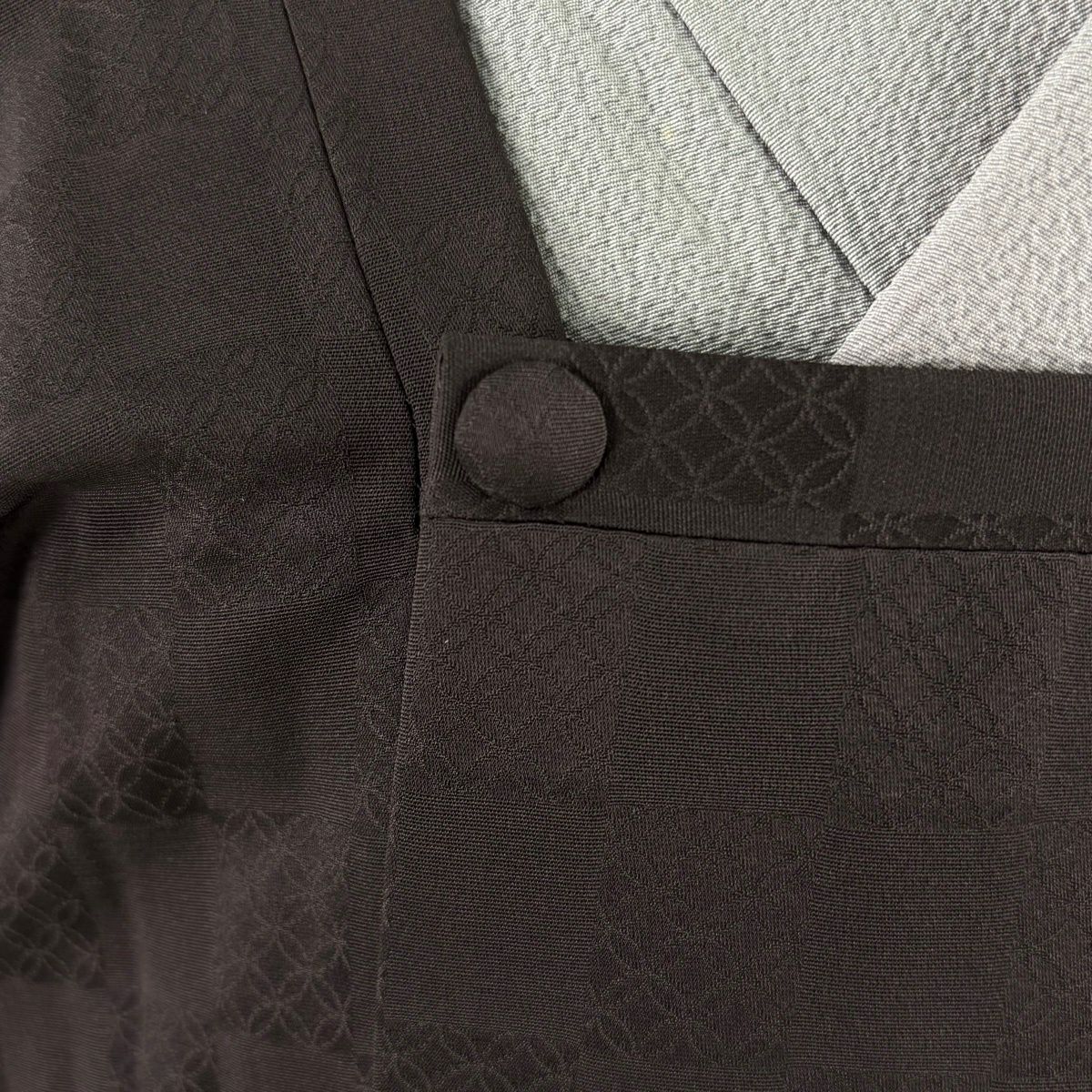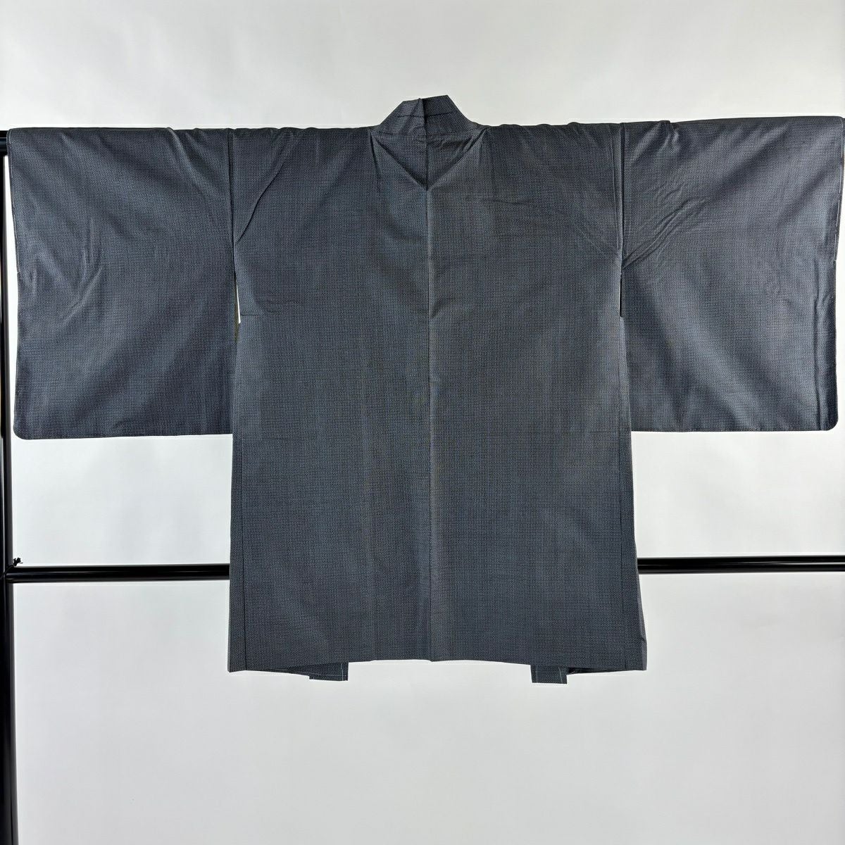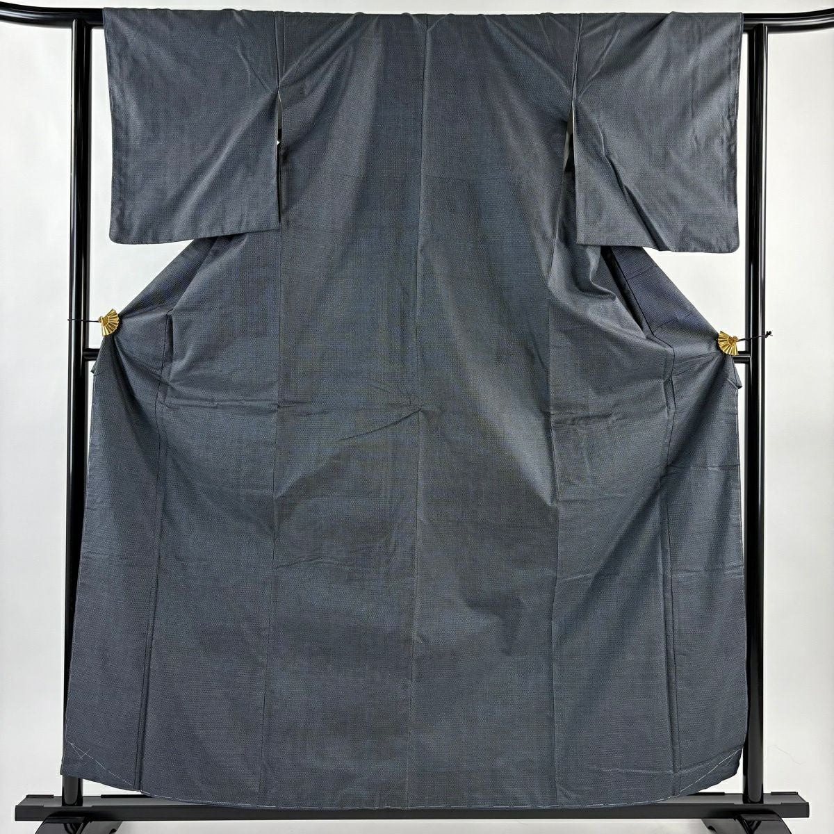 【美品】 男着物 身丈140.5cm 裄丈69cm S 袷 アンサンブル 紬地 幾何学 紺色 正絹 秀品