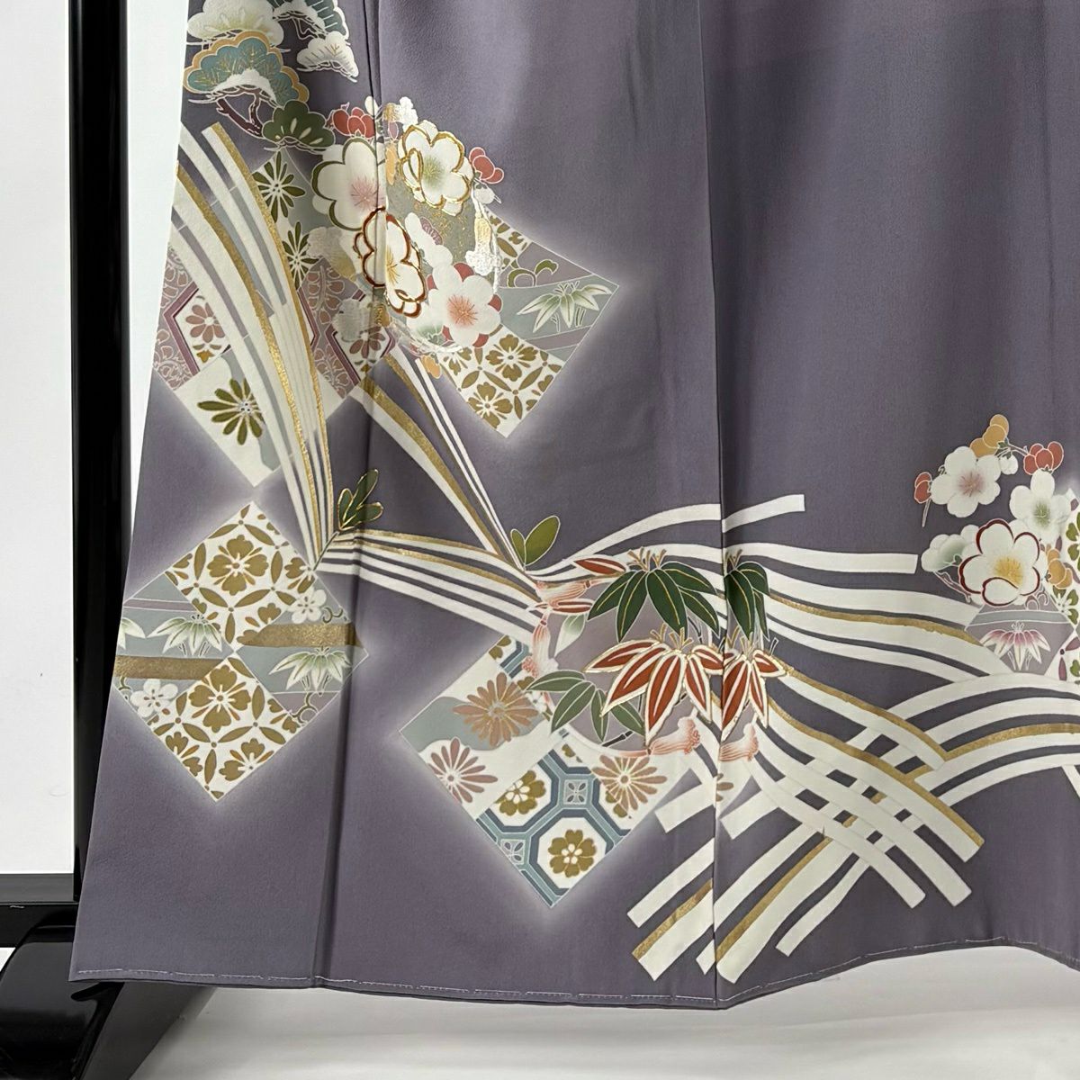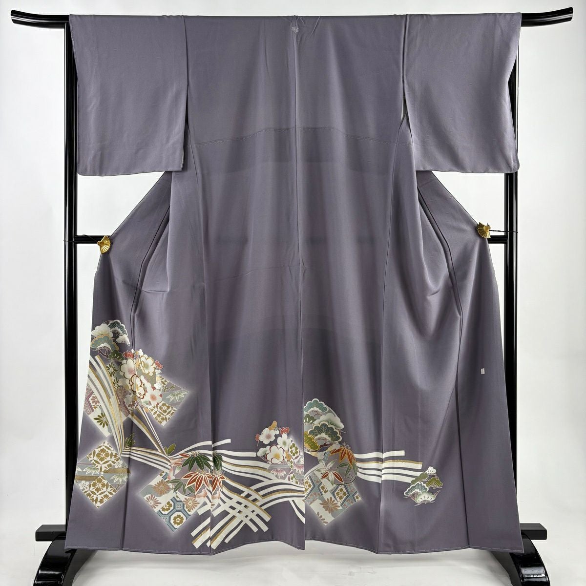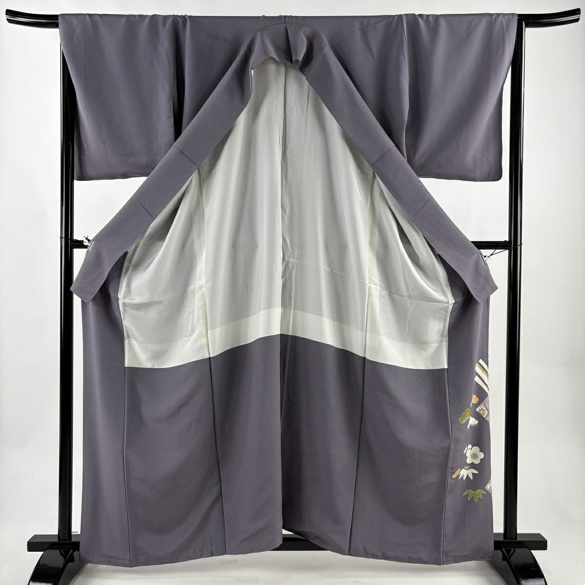 色留袖 身丈159.5cm 裄丈64.5cm M 袷 落款あり 風景 松竹梅 ぼかし 灰紫 正絹 秀品 一つ紋