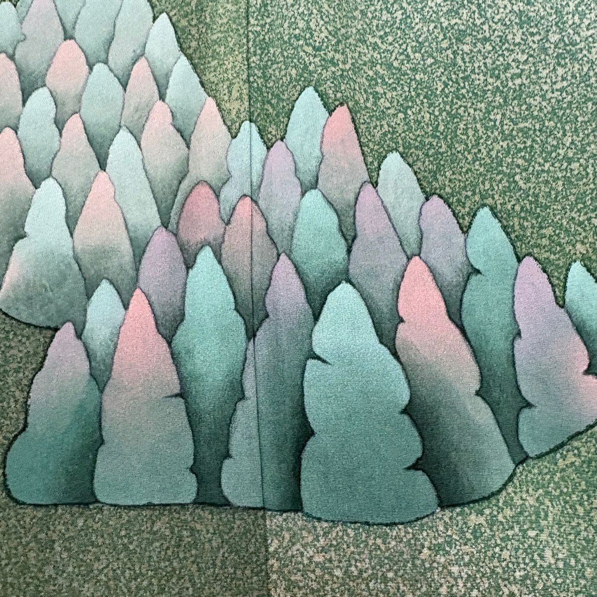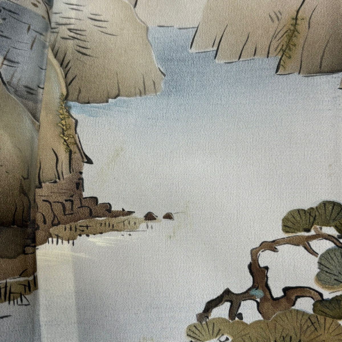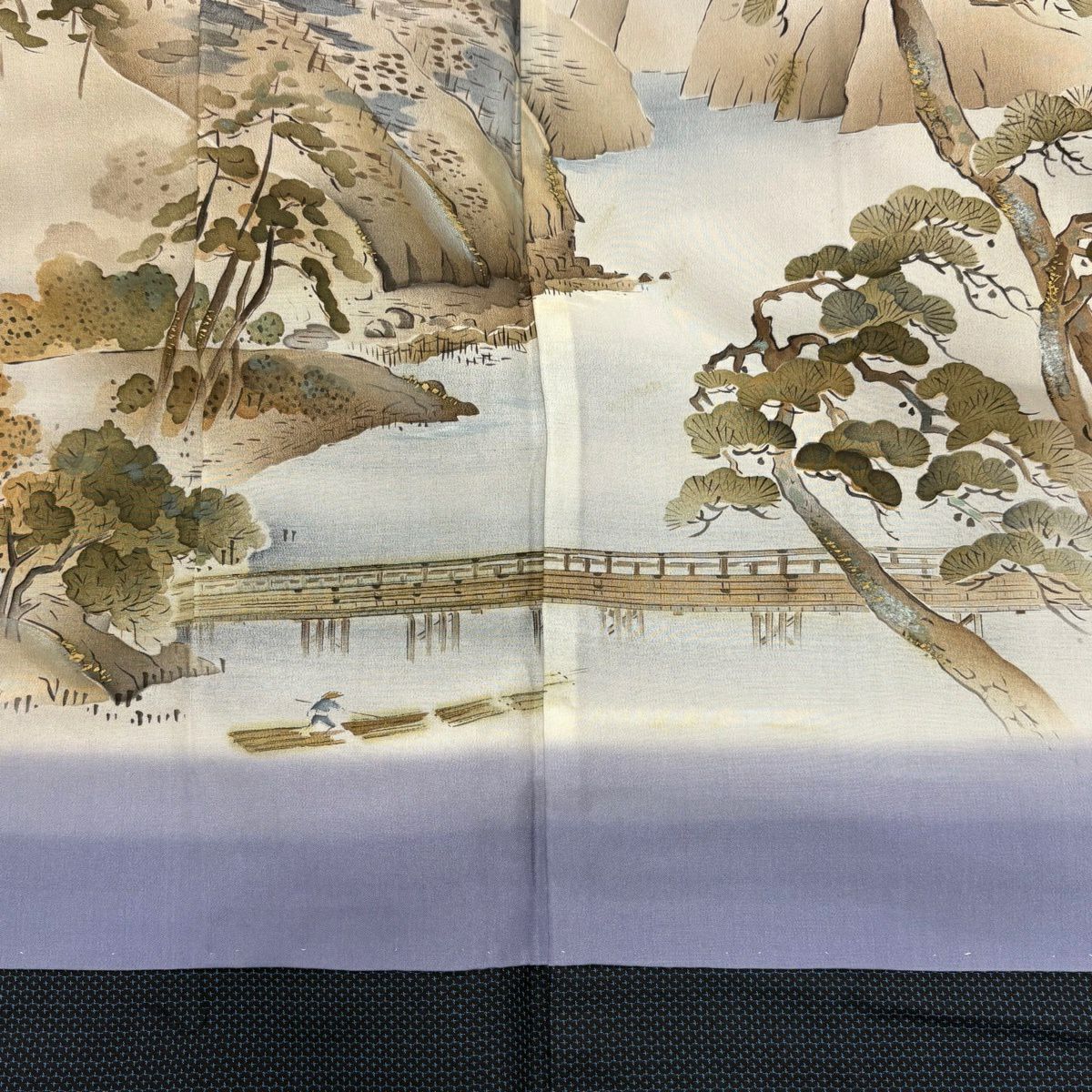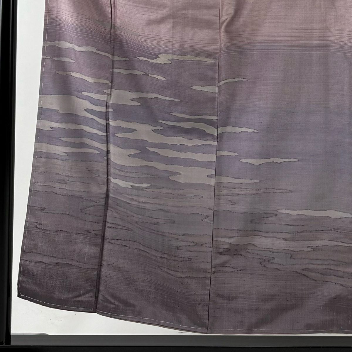色留袖 身丈159.5cm 裄丈64.5cm M 袷 落款あり 風景 松竹梅 ぼかし 灰紫 正絹 秀品 一つ紋