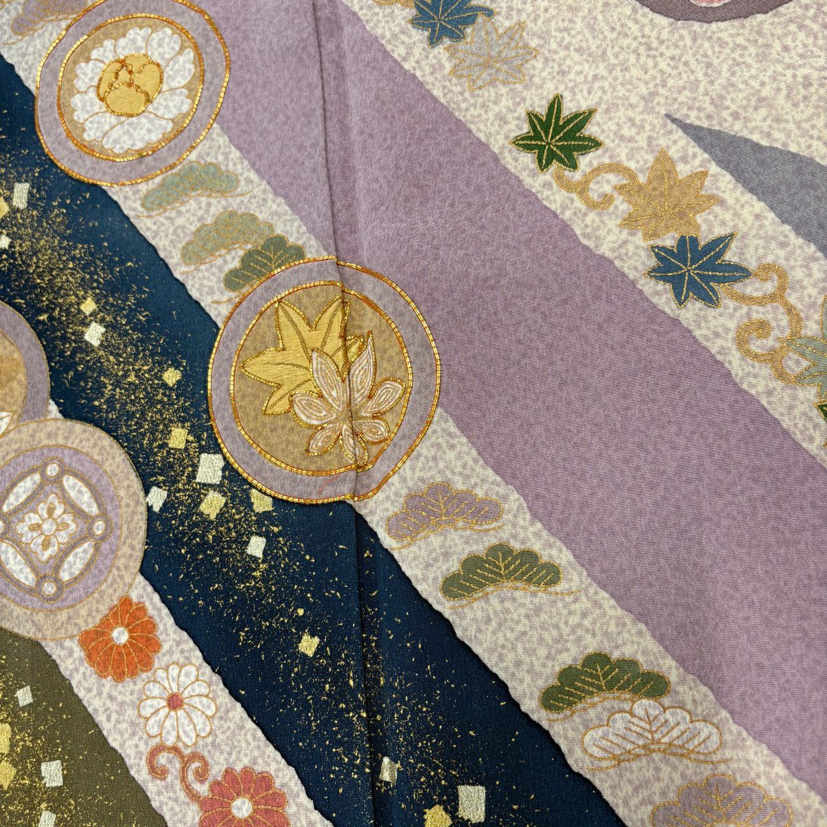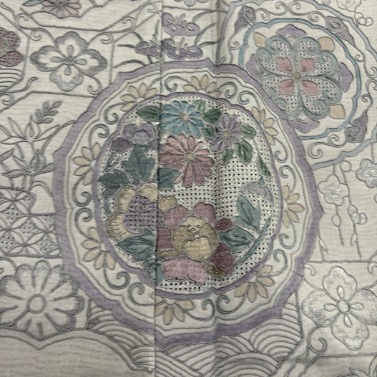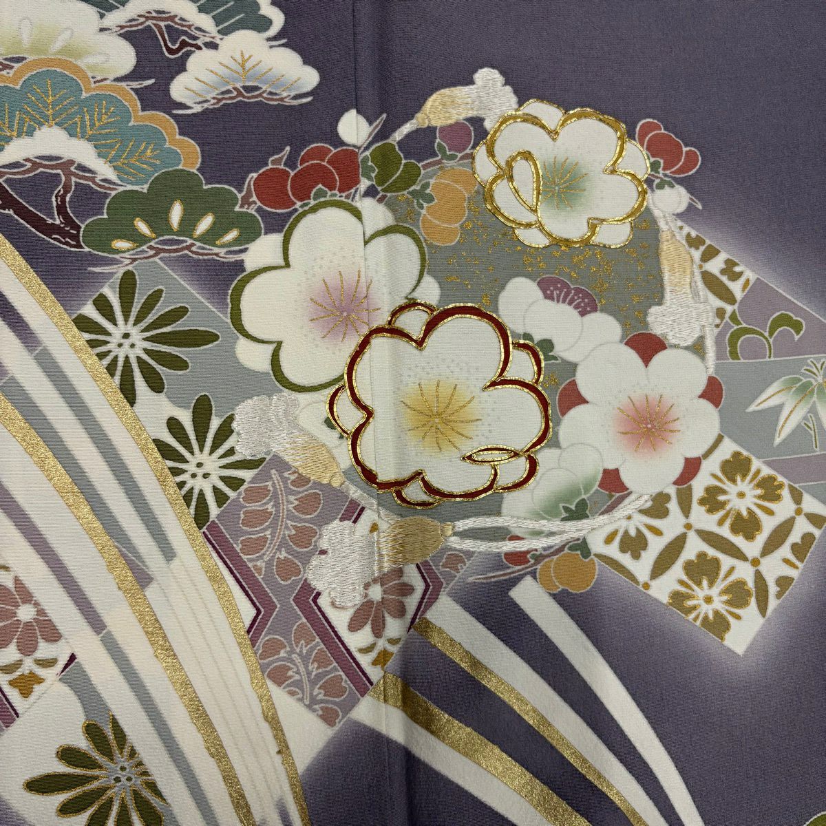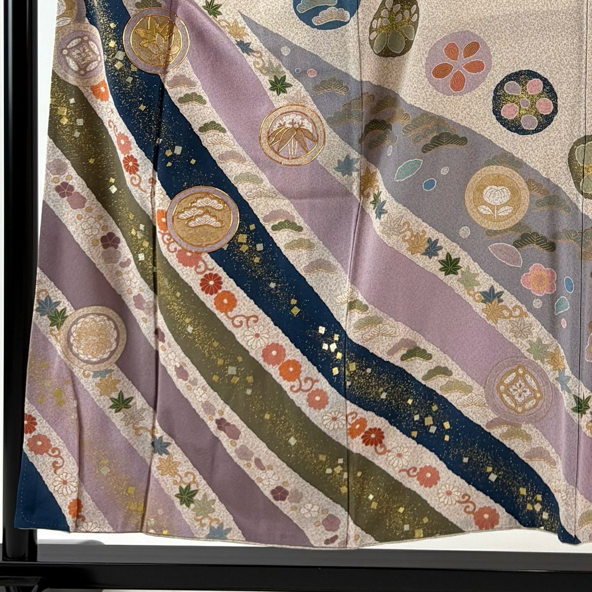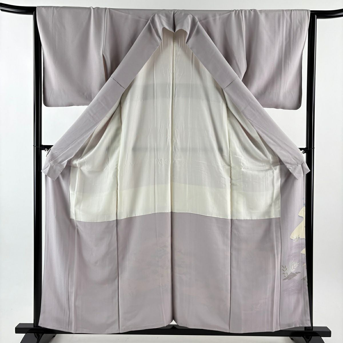 【在庫一掃】 付下げ 身丈155.5cm 裄丈62.5cm S 袷 家屋 松竹梅 刺繍 金糸 薄紫 正絹 秀品