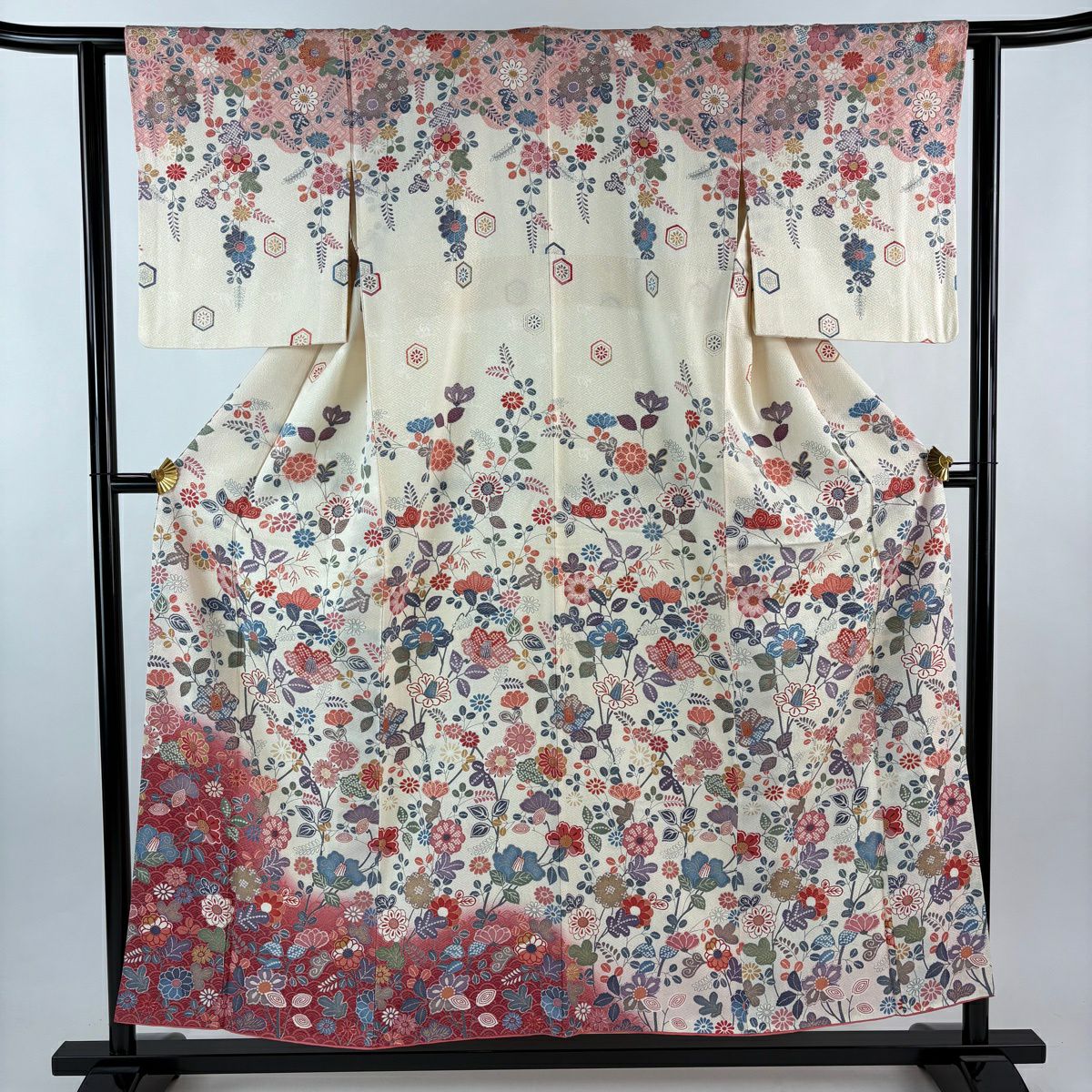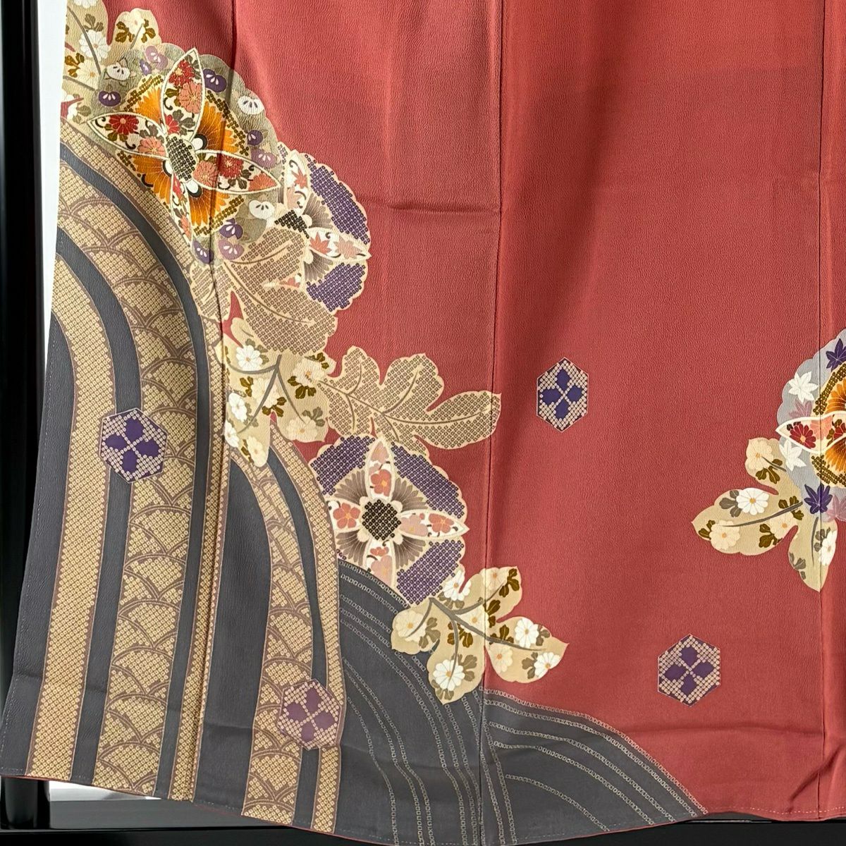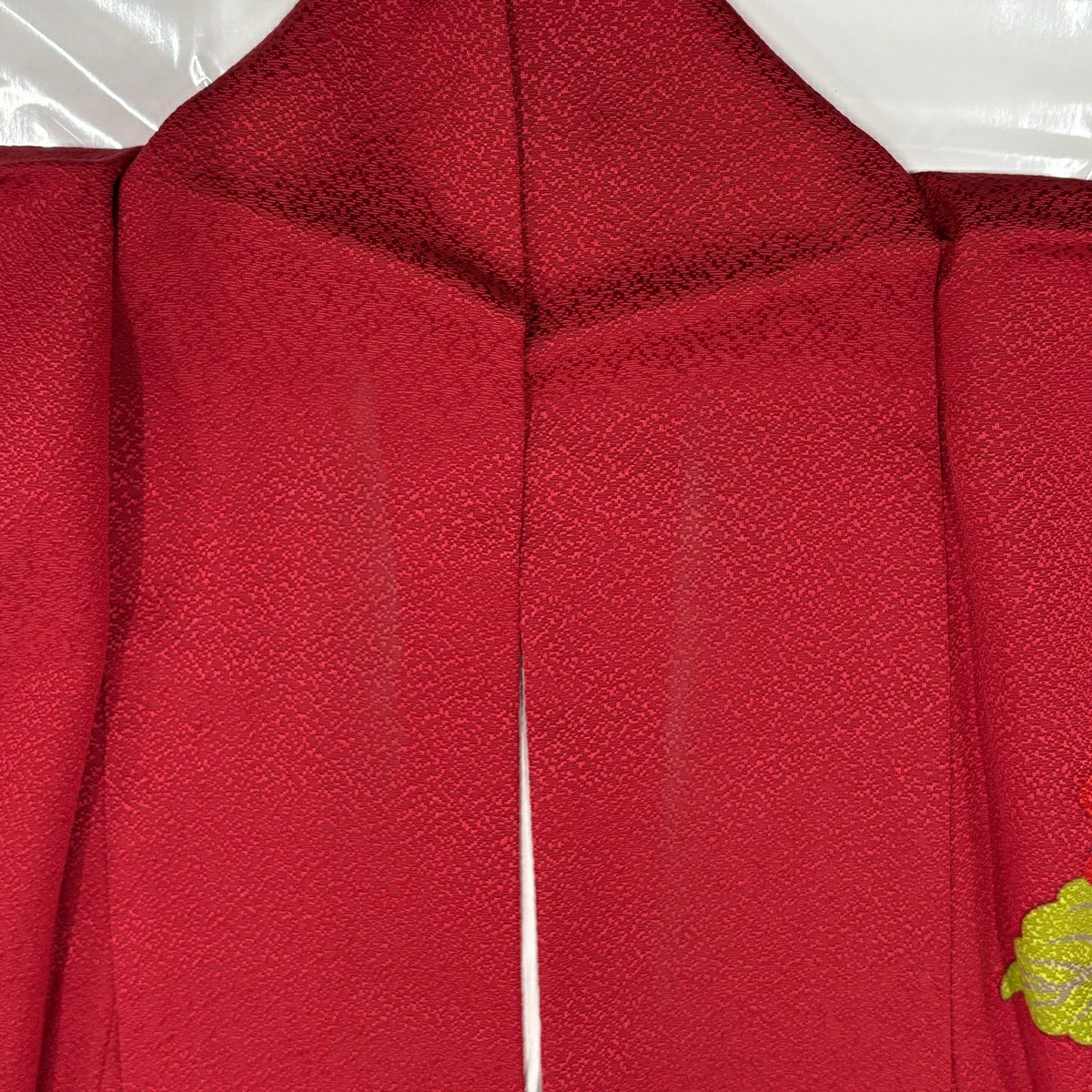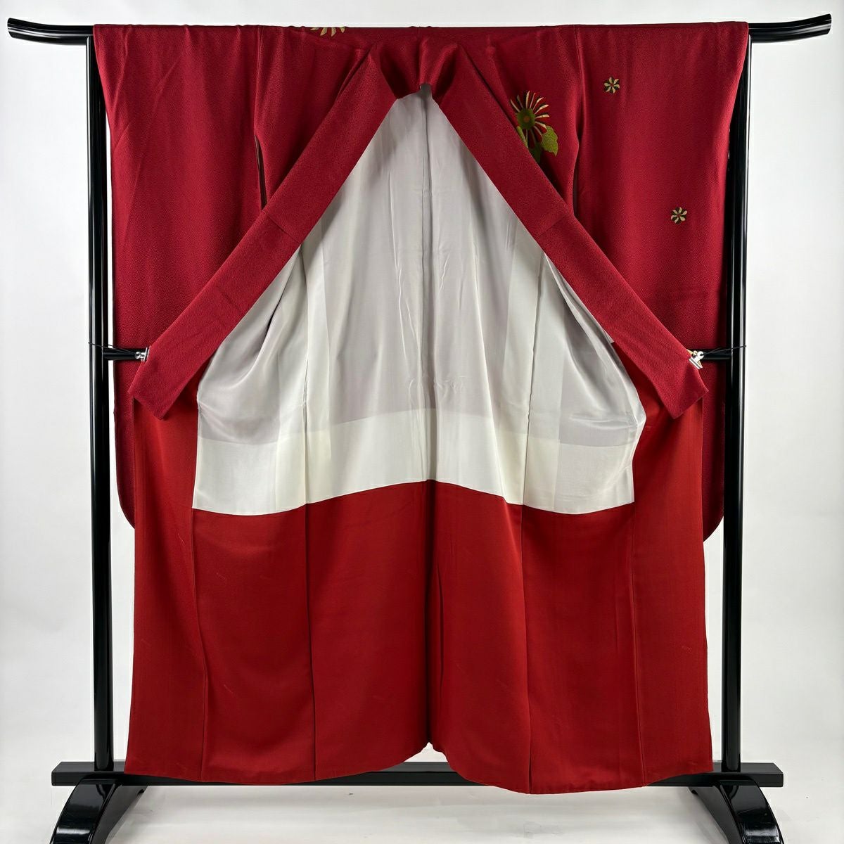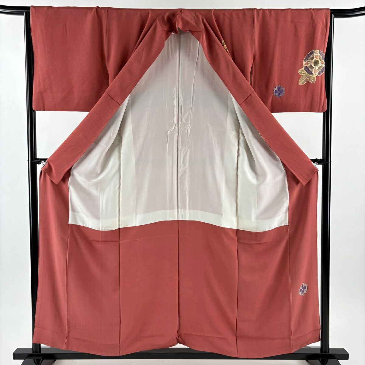 【在庫一掃】 訪問着 身丈164.5cm 裄丈62.5cm S 袷 草花 金彩 絞り 茜色 正絹 秀品 一つ紋