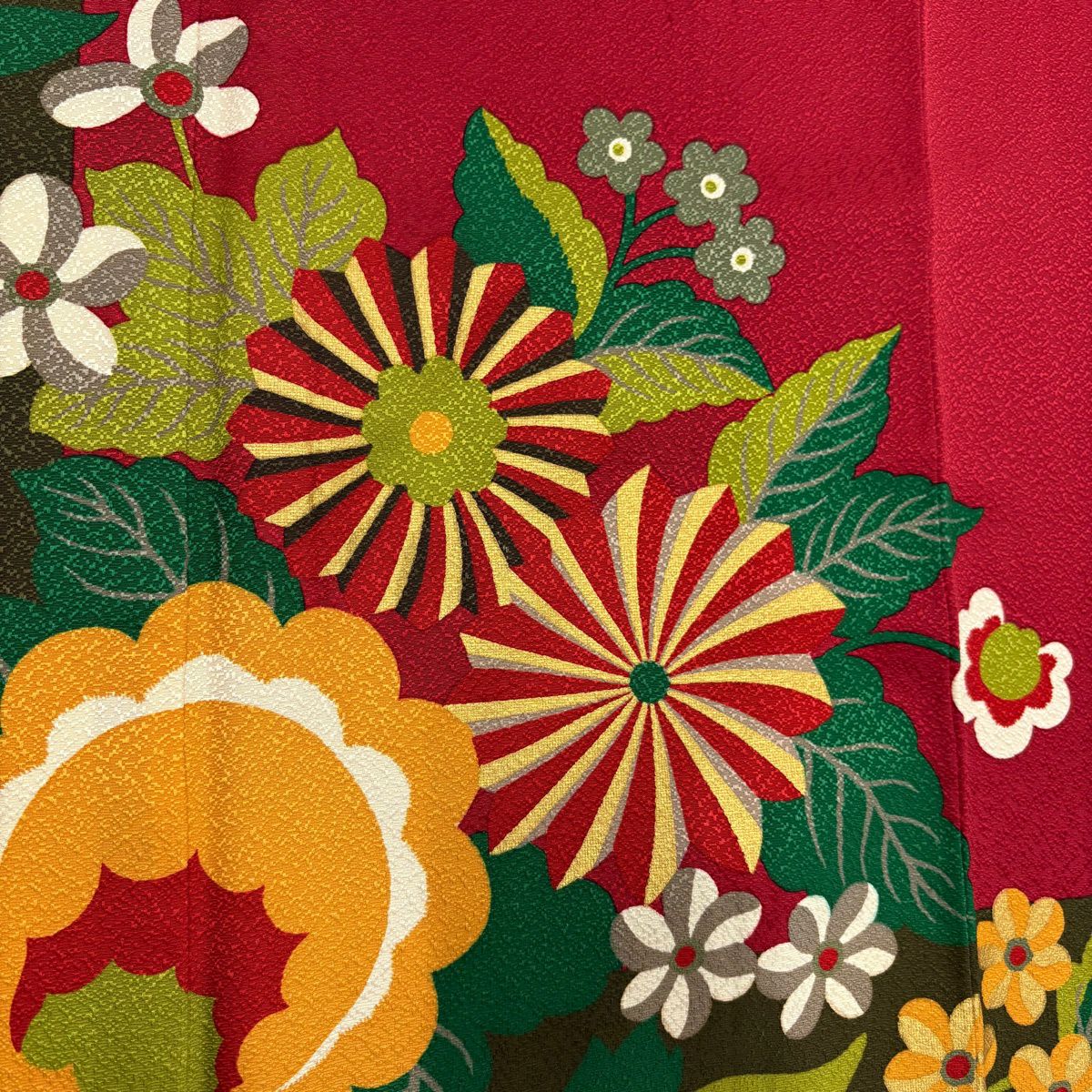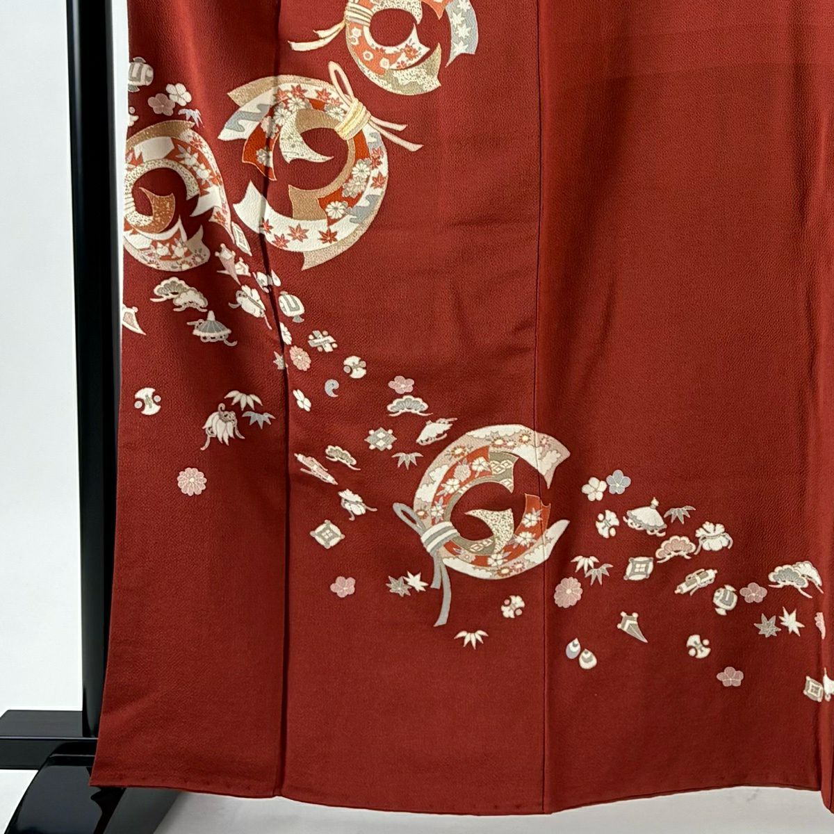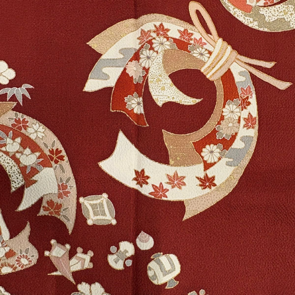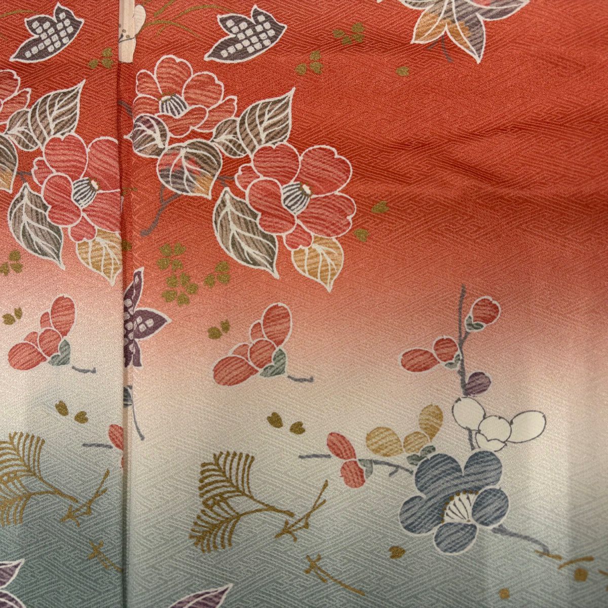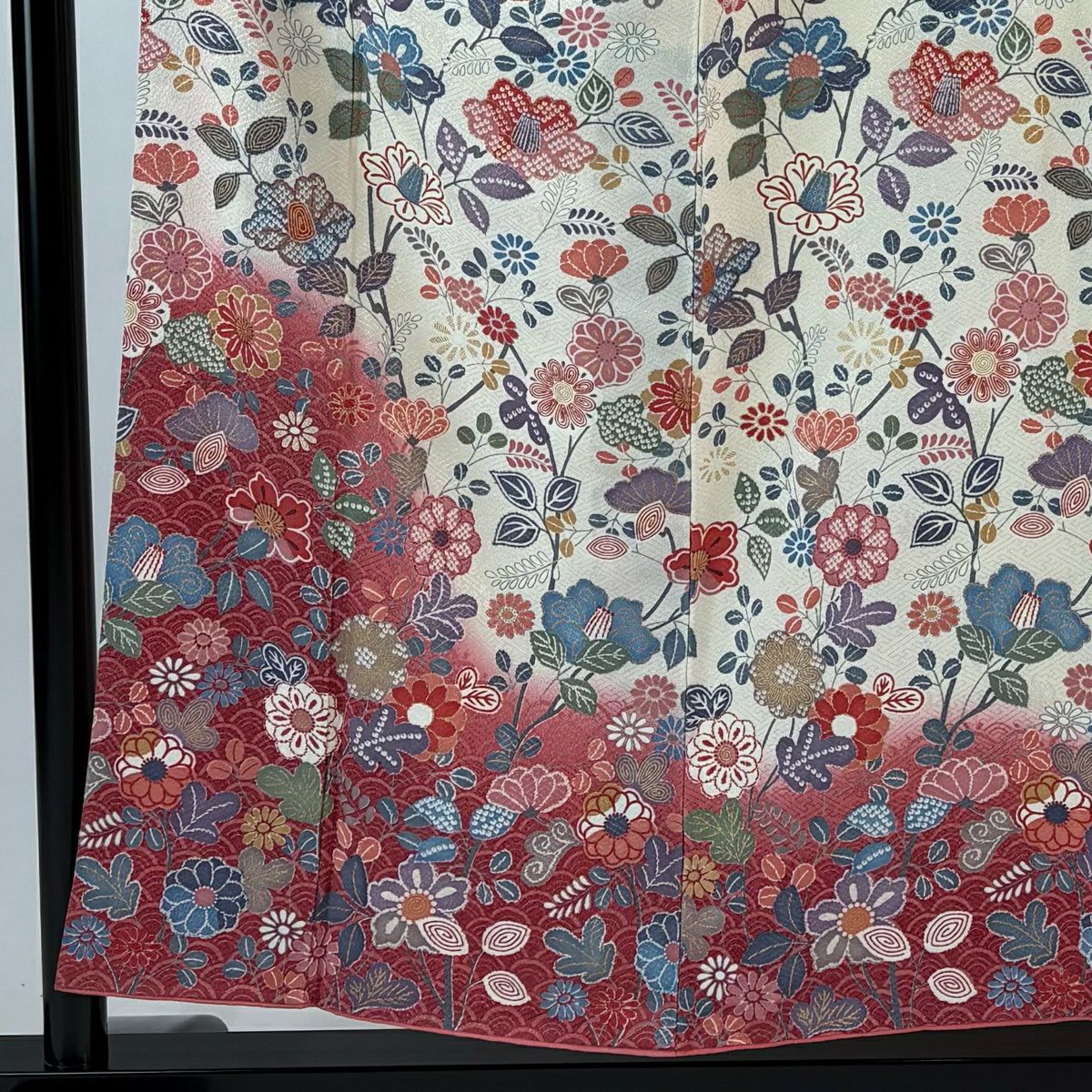 【在庫一掃】 訪問着 身丈164.5cm 裄丈62.5cm S 袷 草花 金彩 絞り 茜色 正絹 秀品 一つ紋