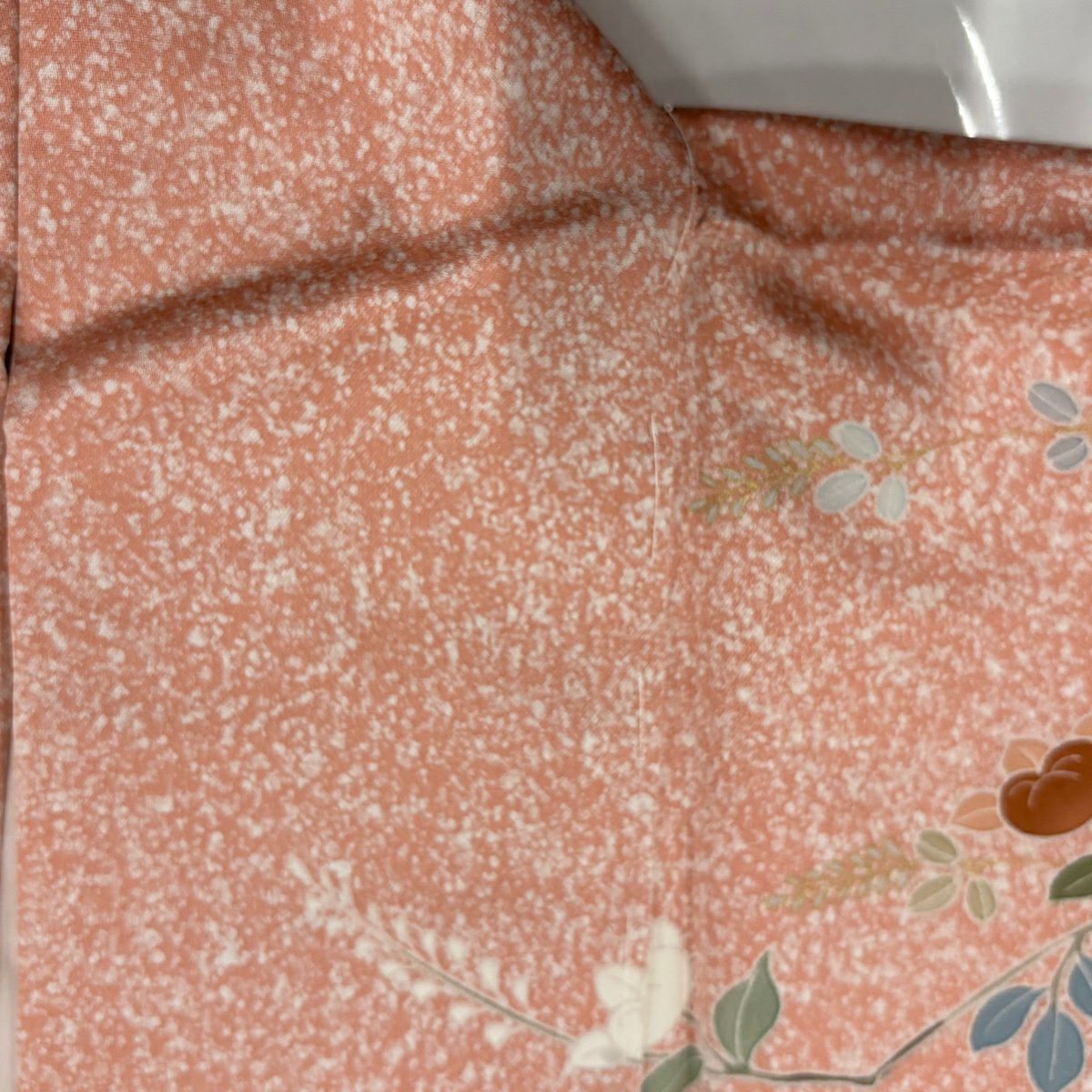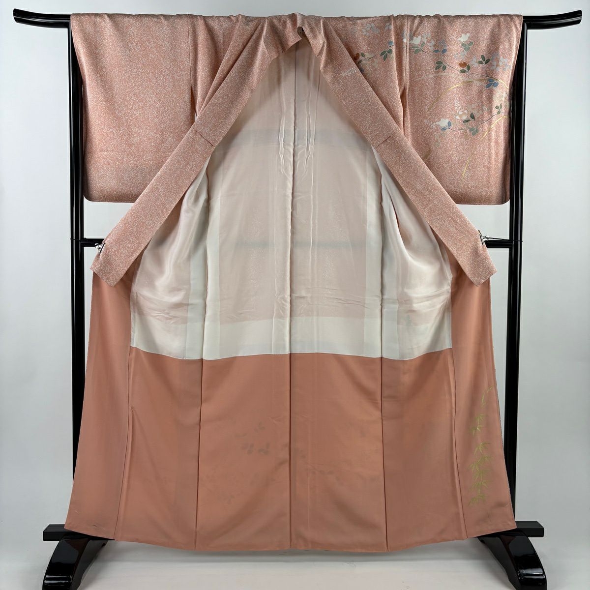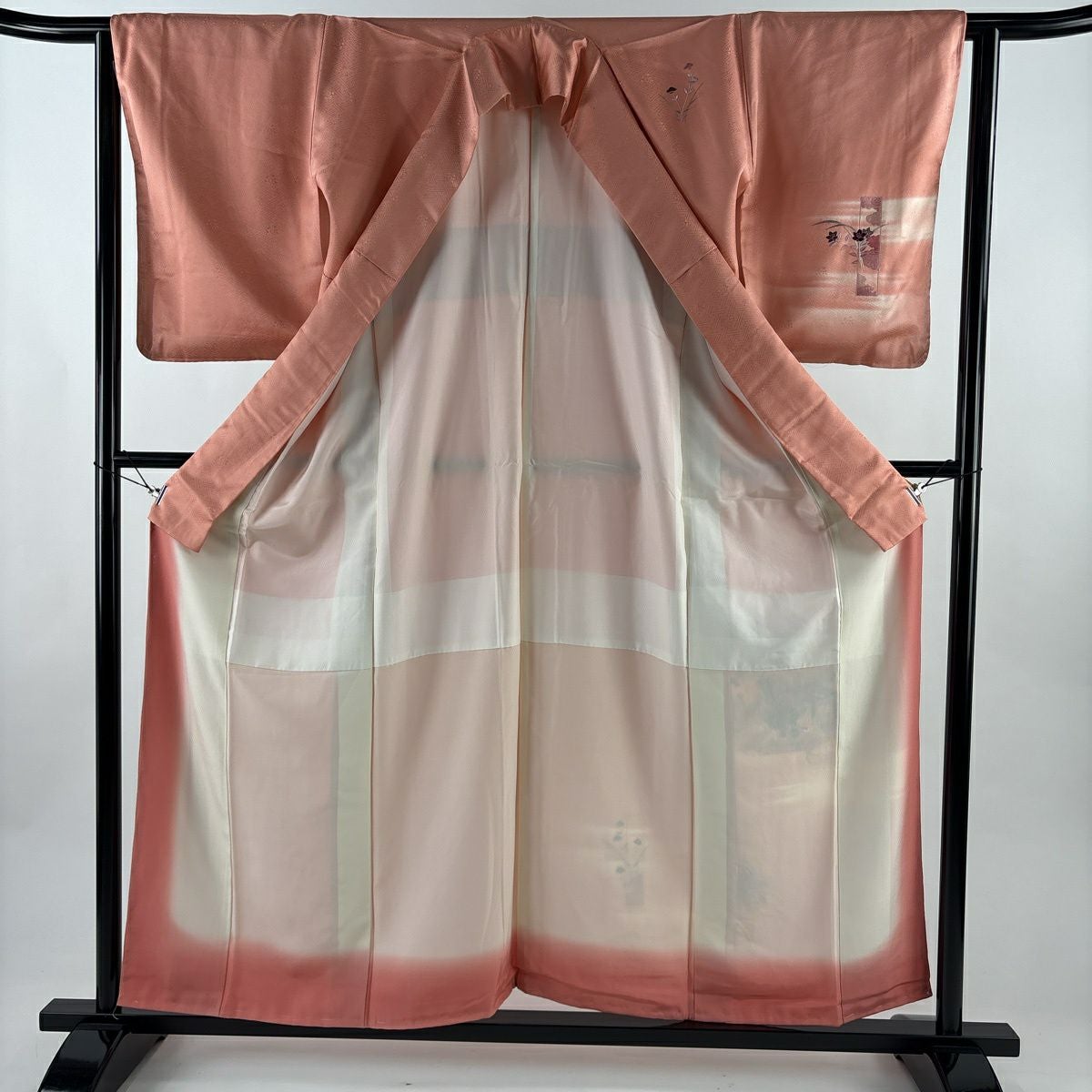 付下げ 身丈160.5cm 裄丈62.5cm S 袷 落款あり 几帳 草花 金糸 金彩 薄オレンジ 正絹 秀品