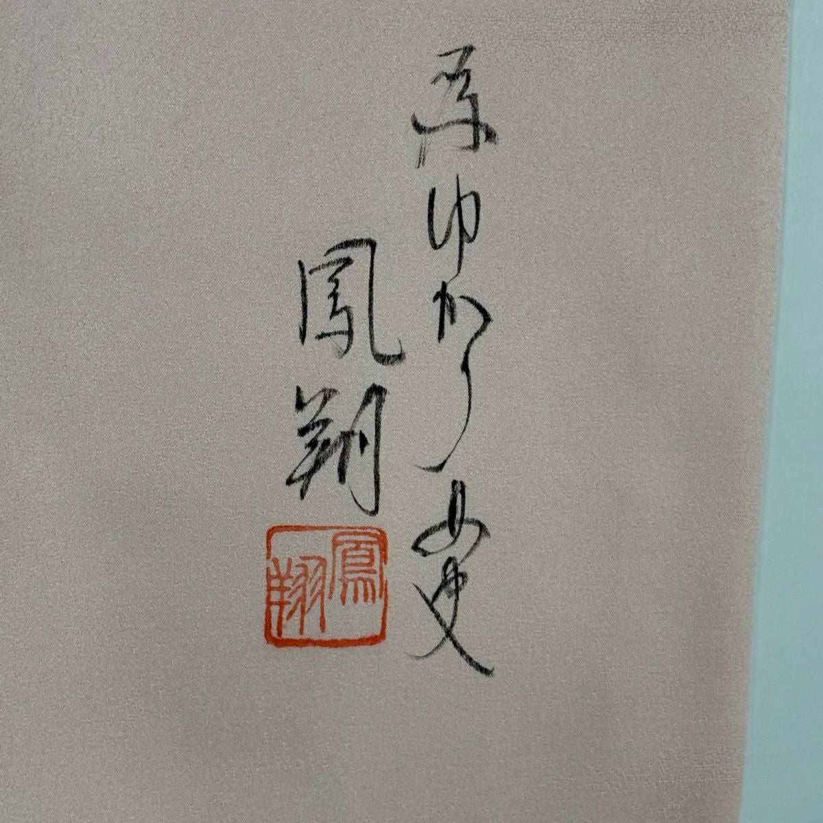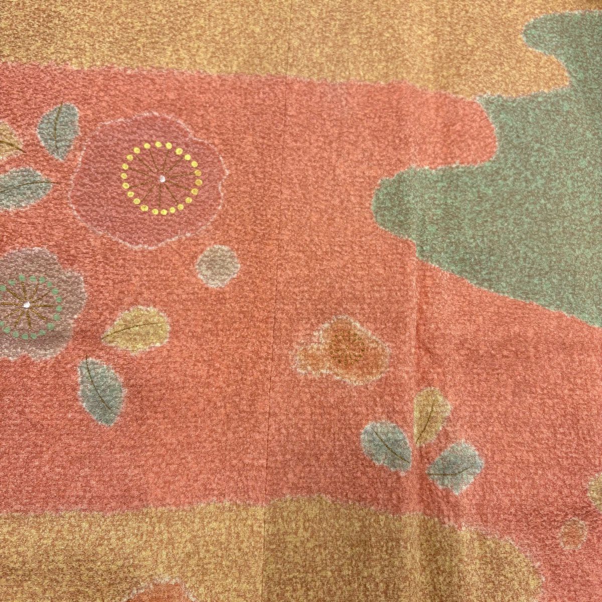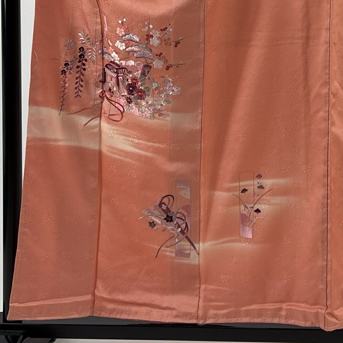 付下げ 身丈160.5cm 裄丈62.5cm S 袷 落款あり 几帳 草花 金糸 金彩 薄オレンジ 正絹 秀品