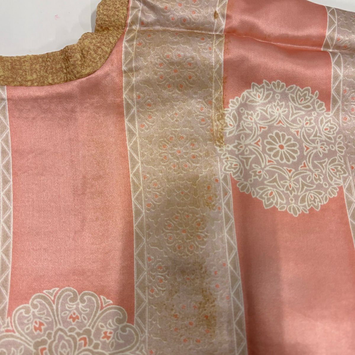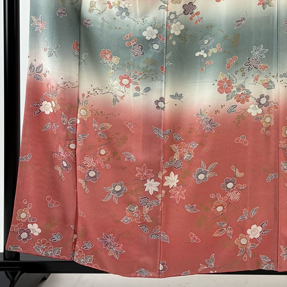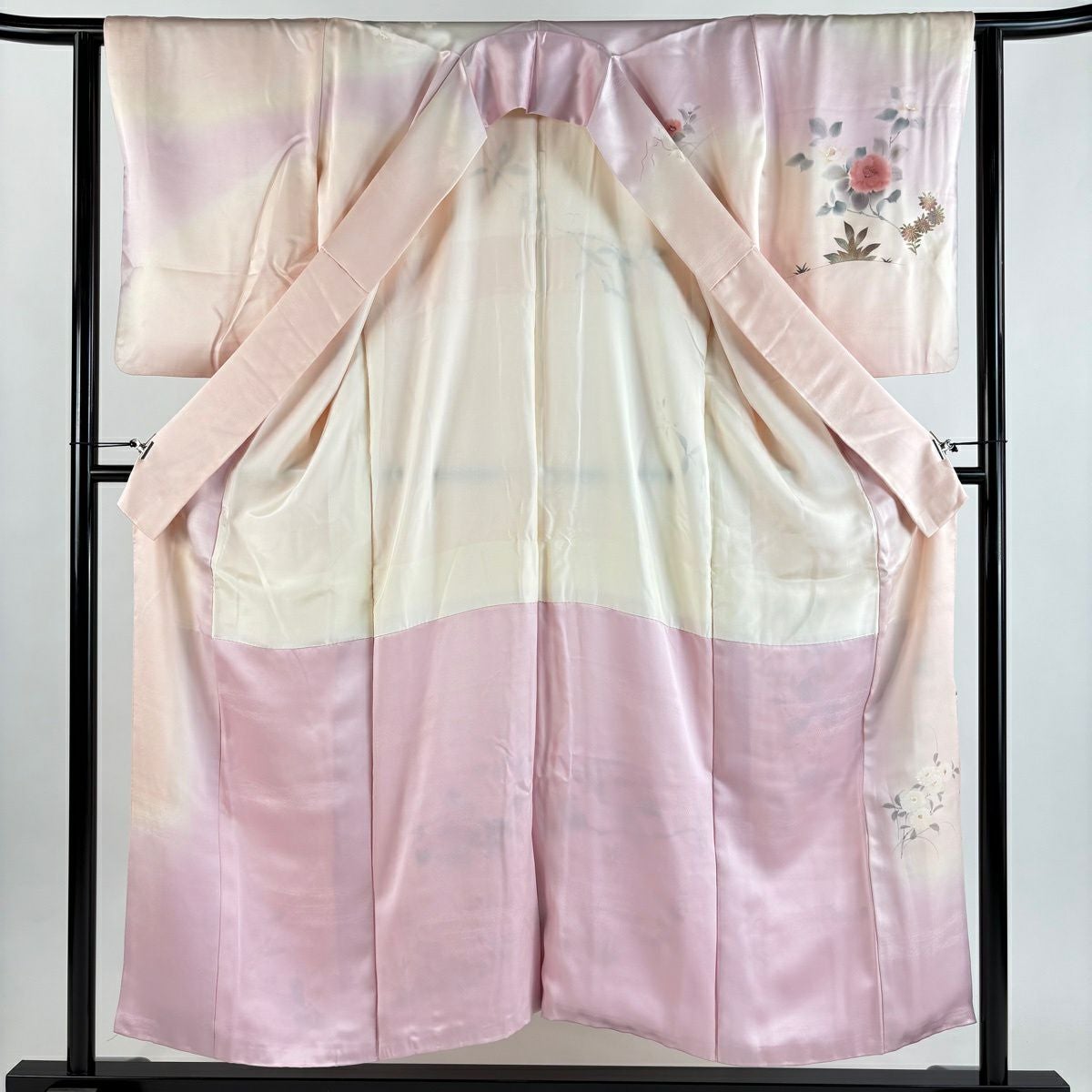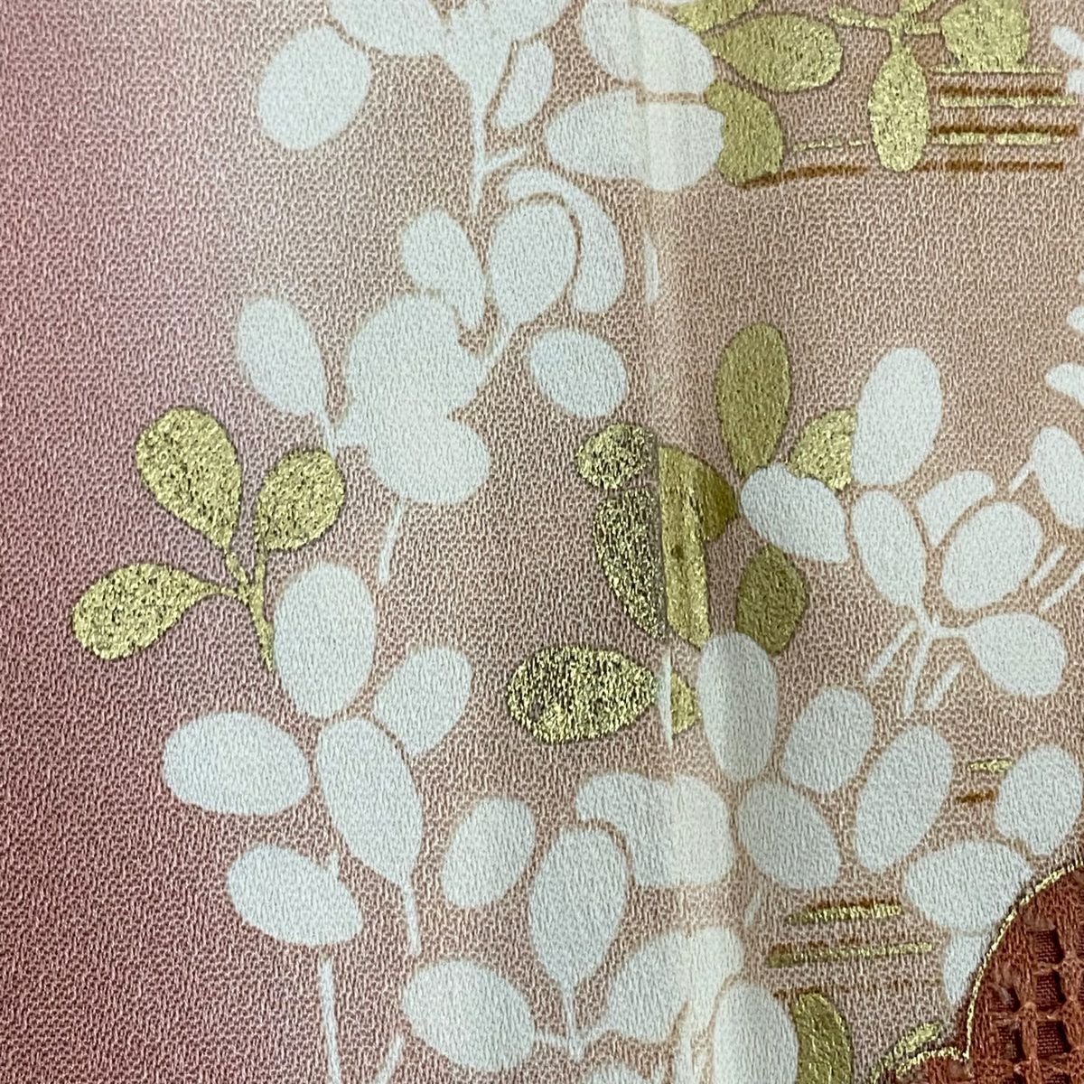 【在庫一掃】 付下げ 身丈156cm 裄丈64.5cm M 袷 花丸文 金彩 ぼかし ピンク 正絹 秀品