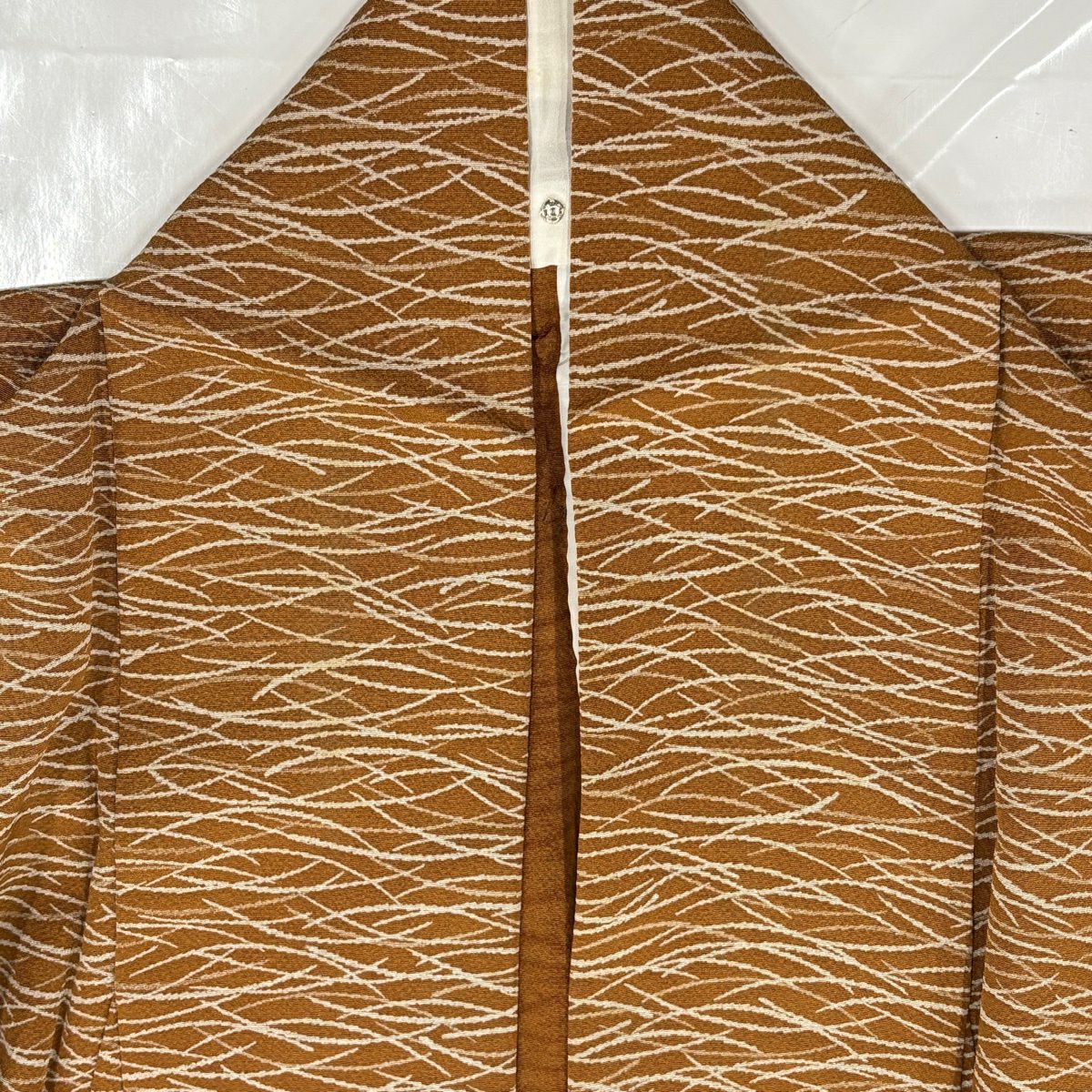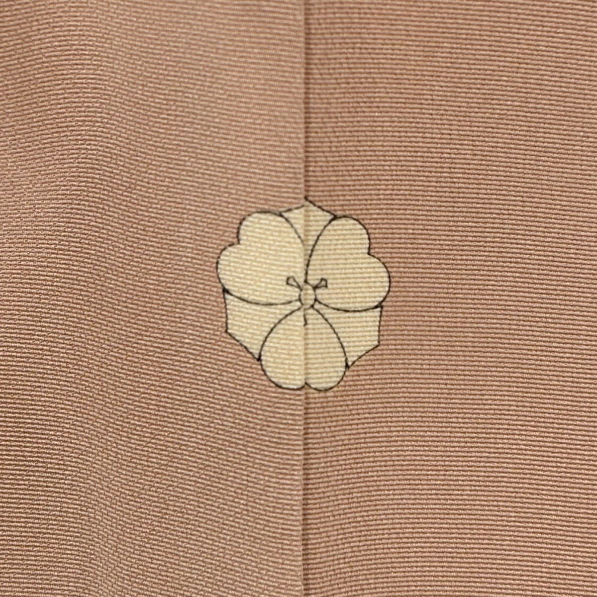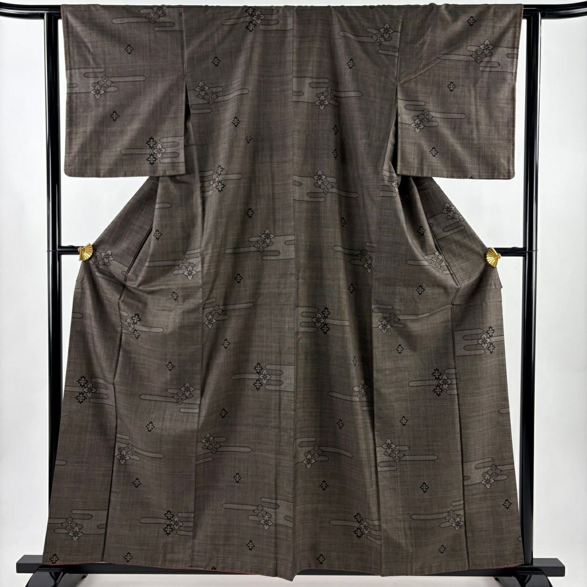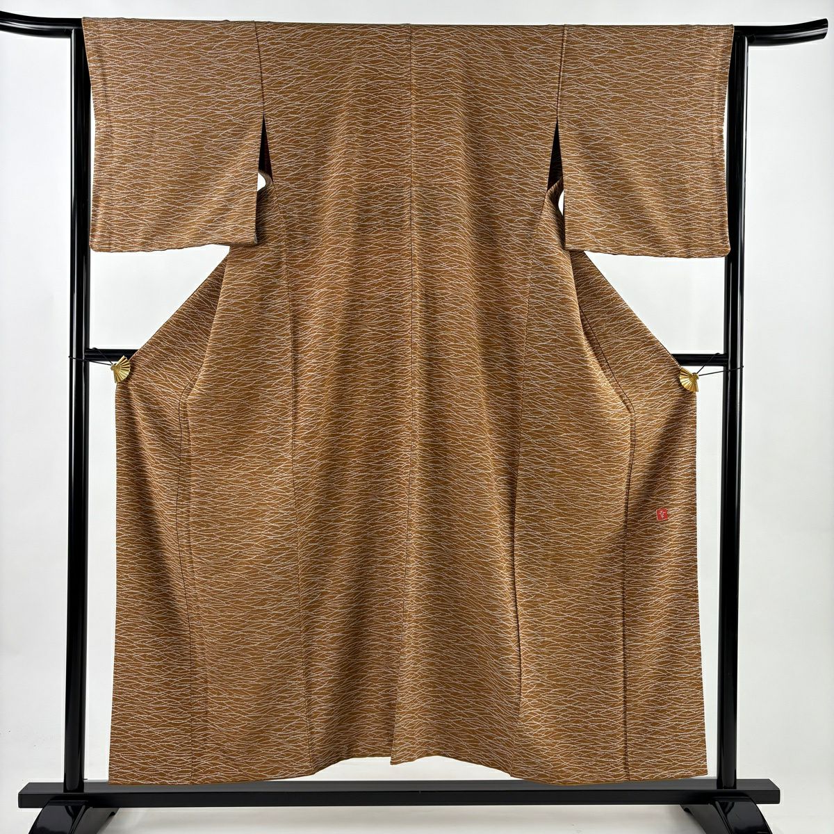 小紋 身丈153cm 裄丈65cm M 袷 花井幸子 背抜き 落款あり 芝 縮緬 茶色 正絹 秀品 一つ紋