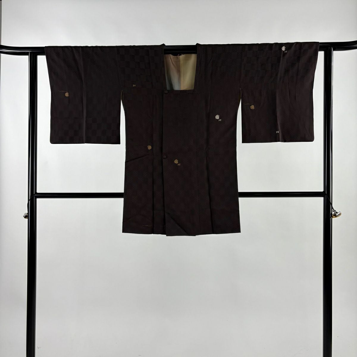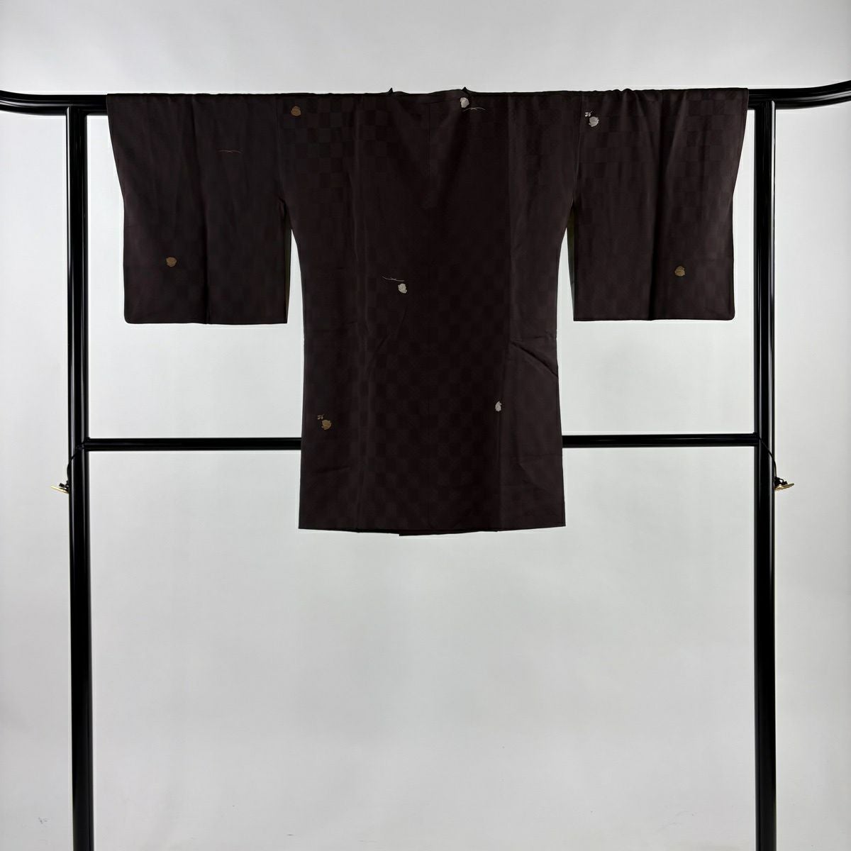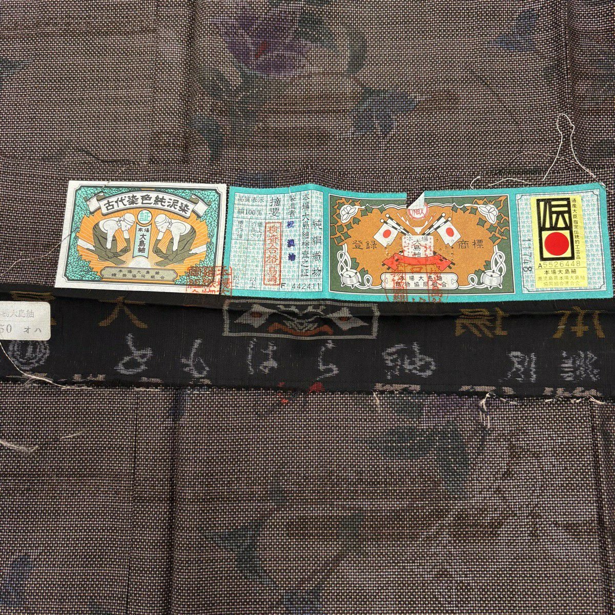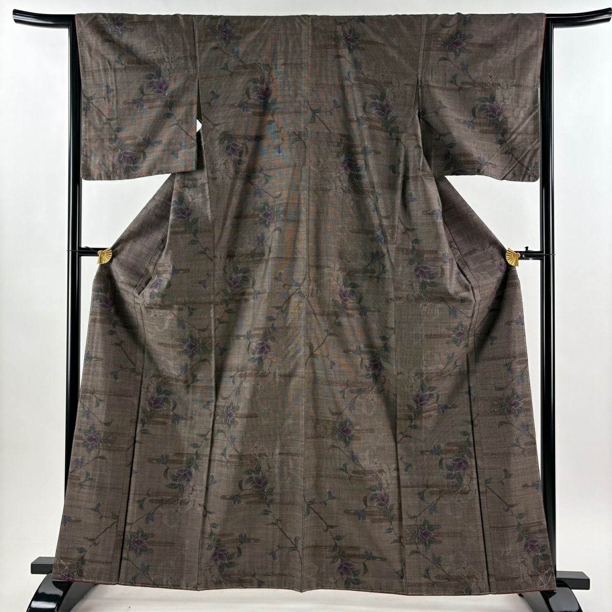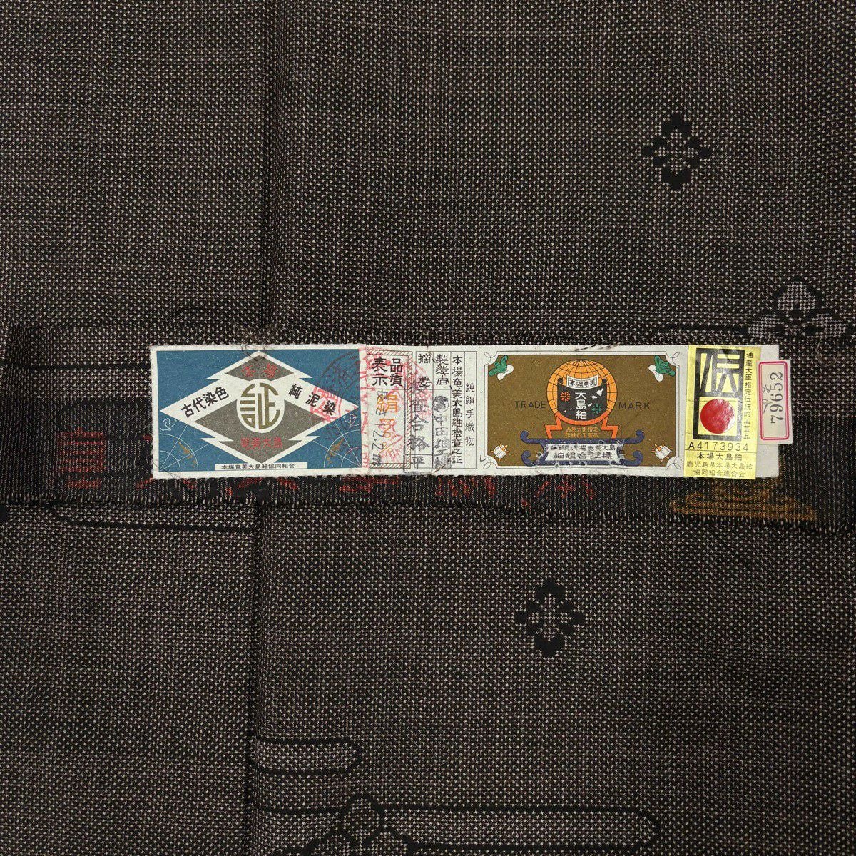 【美品】 大島紬 身丈158.5cm 裄丈63cm S 袷 純泥染 証紙あり ヱ霞 花 焦茶色 正絹 秀品