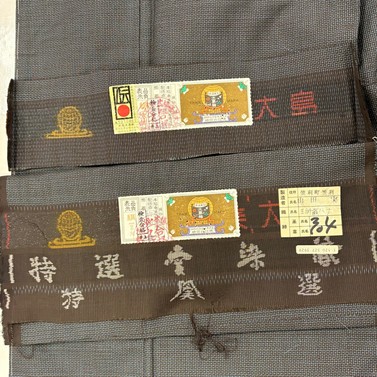 【美品】 大島紬 身丈159cm 裄丈62cm S 袷 アンサンブル 証紙あり 亀甲絣 紺色 正絹 秀品