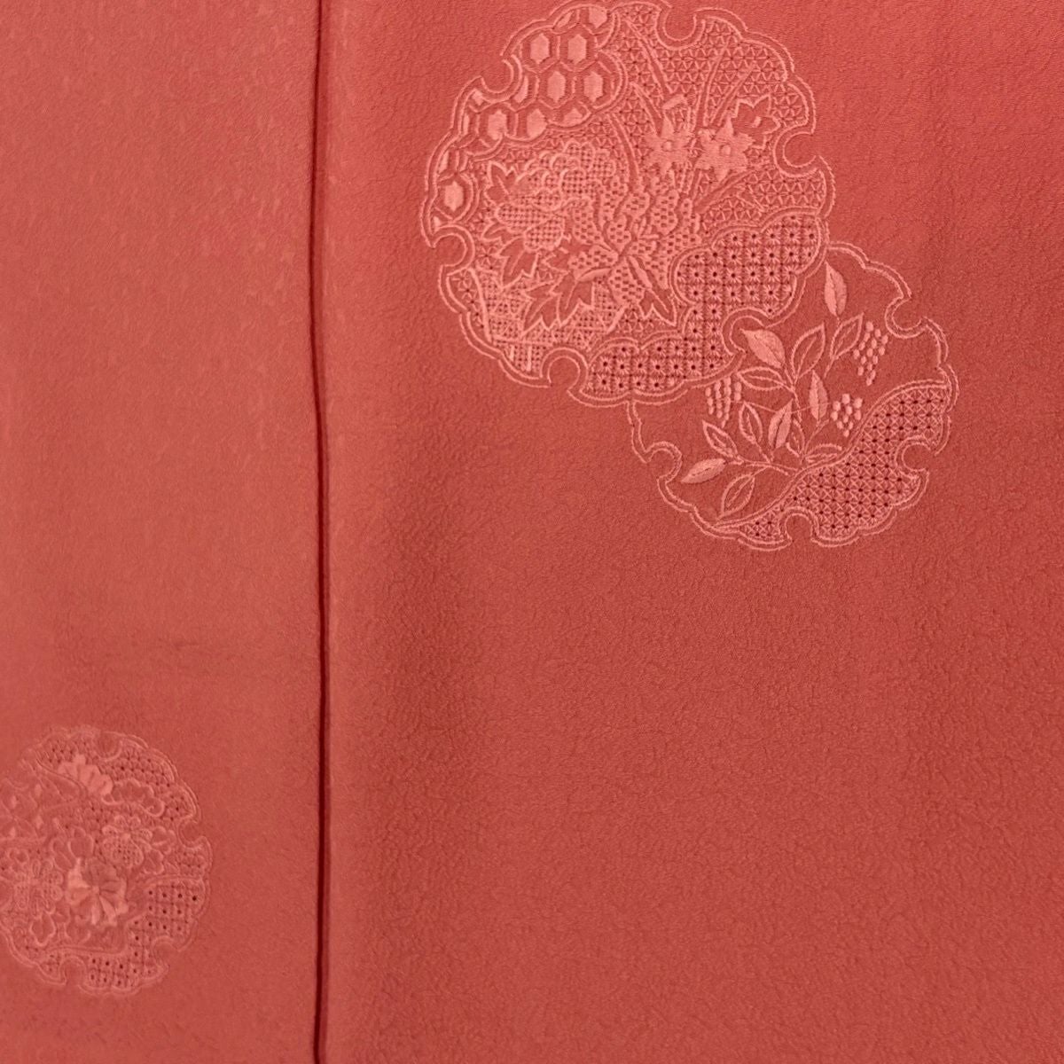 【美品】 付下げ 身丈162.5cm 裄丈67cm M 袷 雪輪 草花 刺繍 ピンク 正絹 秀品 一つ紋