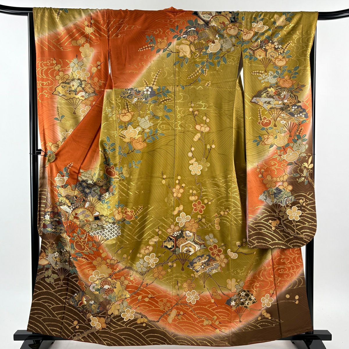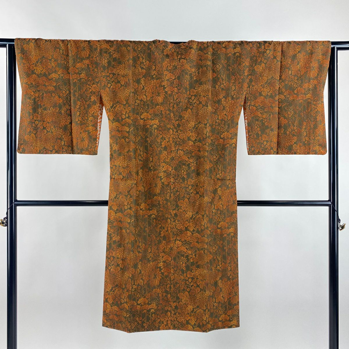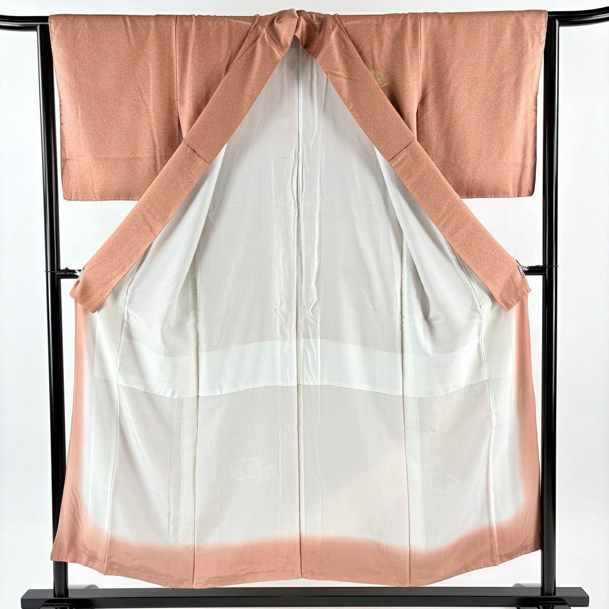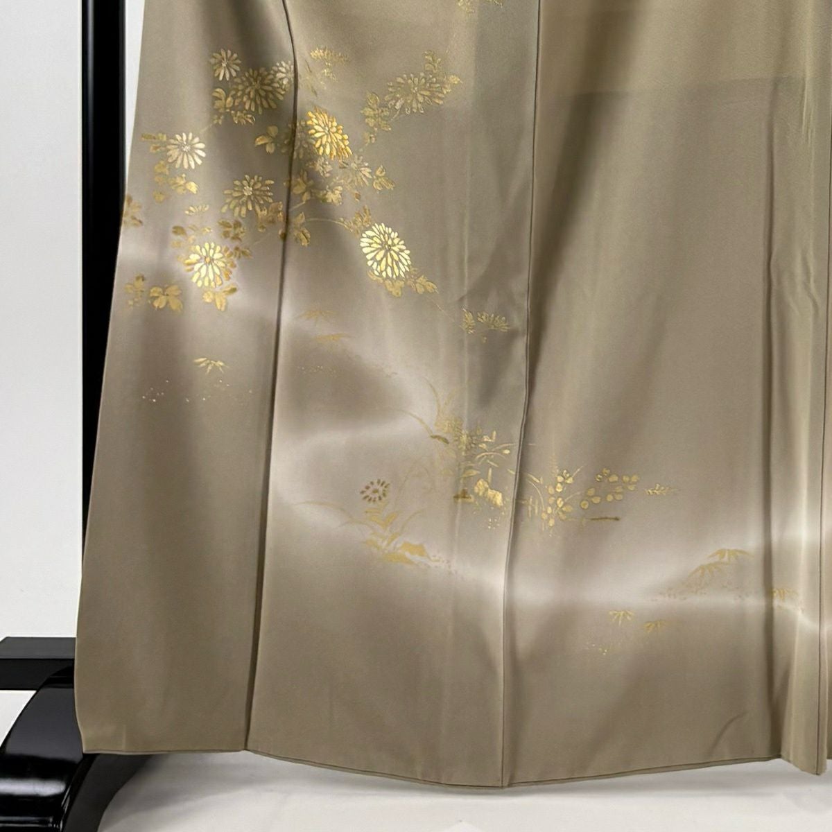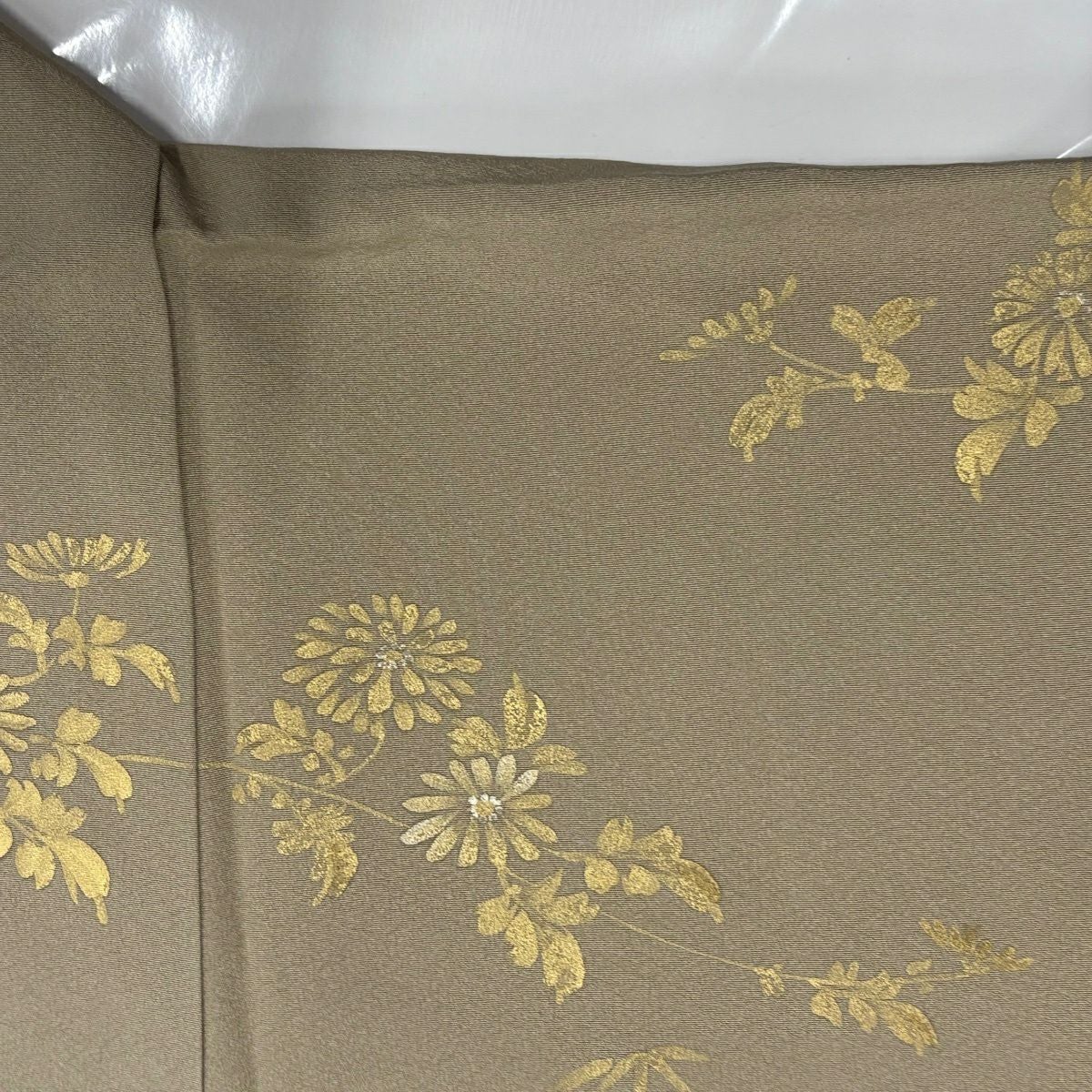 【在庫一掃】 【美品】 訪問着 身丈154cm 裄丈62cm S 袷 菊 扇 金彩 ぼかし 茶色 正絹 秀品