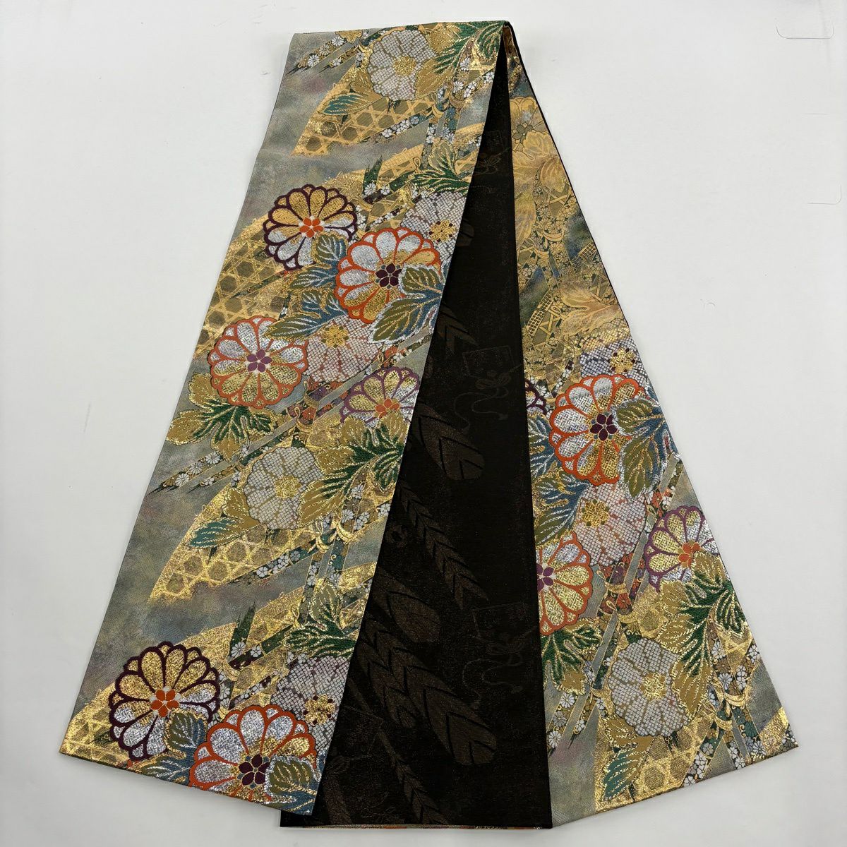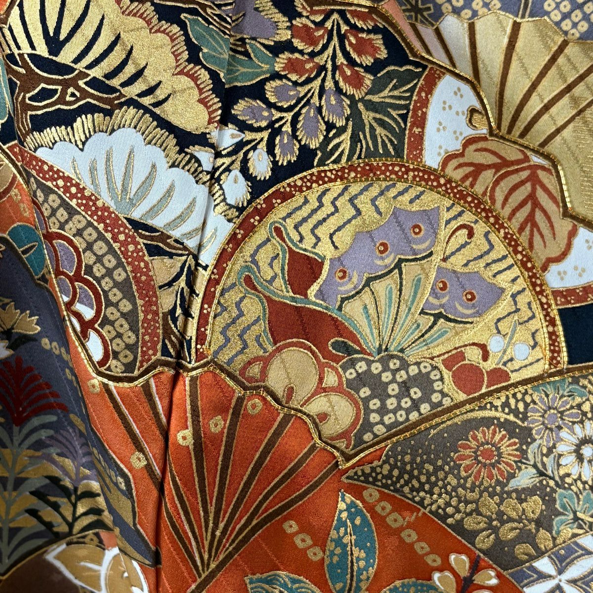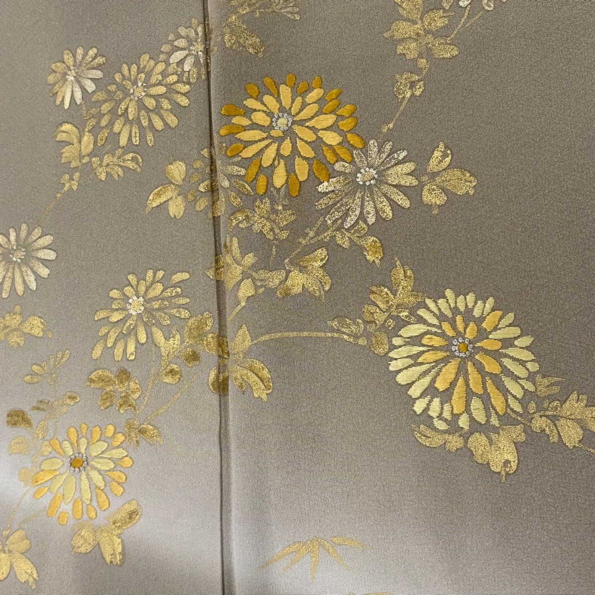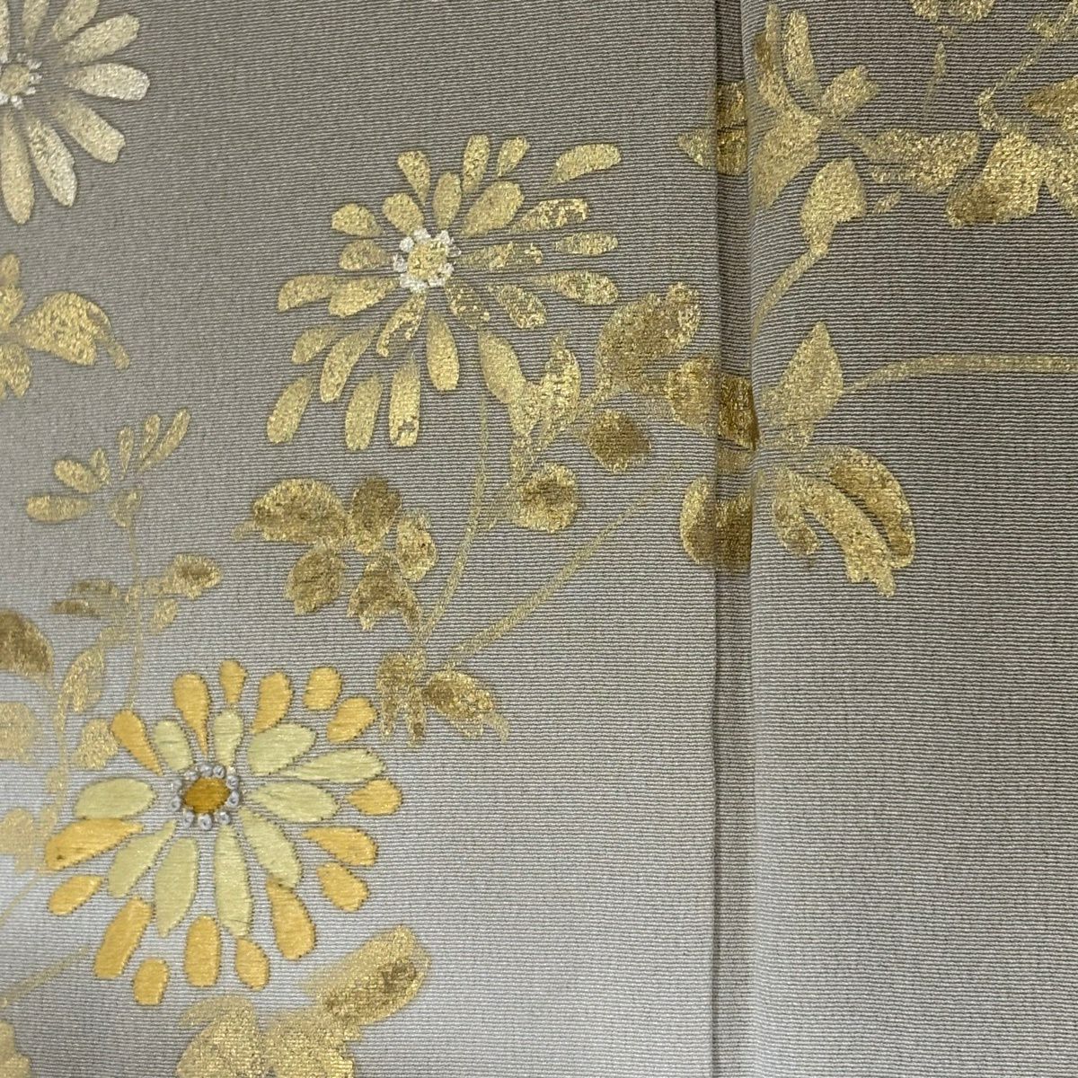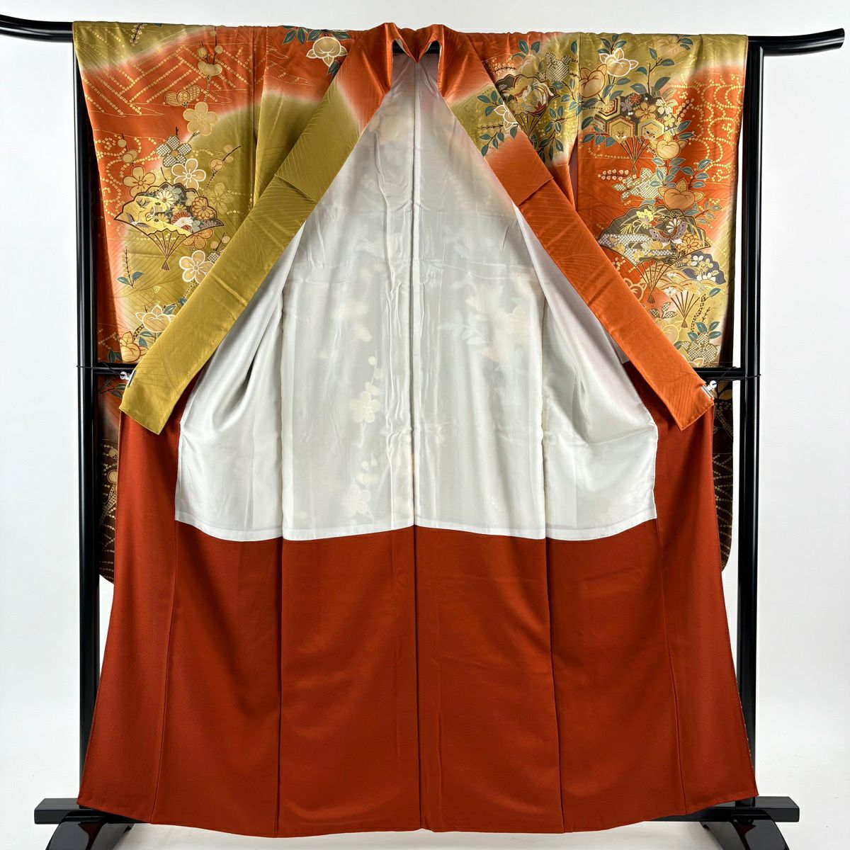 【在庫一掃】 【美品】 訪問着 身丈154cm 裄丈62cm S 袷 菊 扇 金彩 ぼかし 茶色 正絹 秀品
