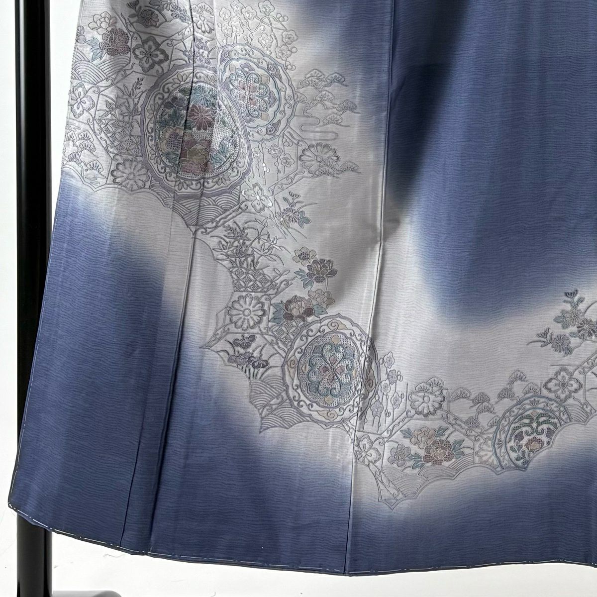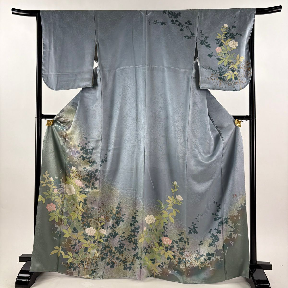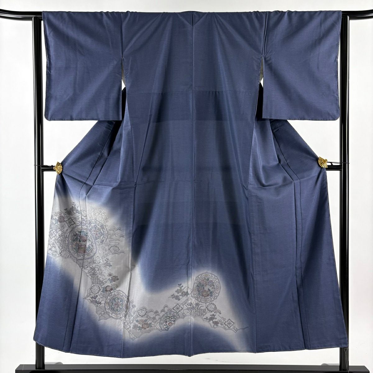 【在庫一掃】 付下げ 身丈154cm 裄丈64.5cm M 袷 霞 シルエット ぼかし 青灰色 正絹 秀品