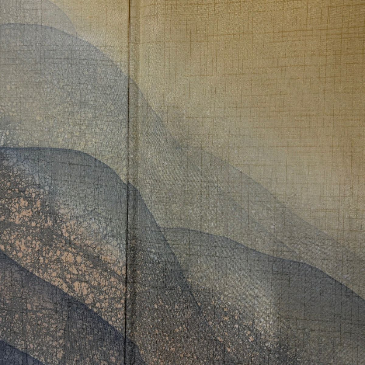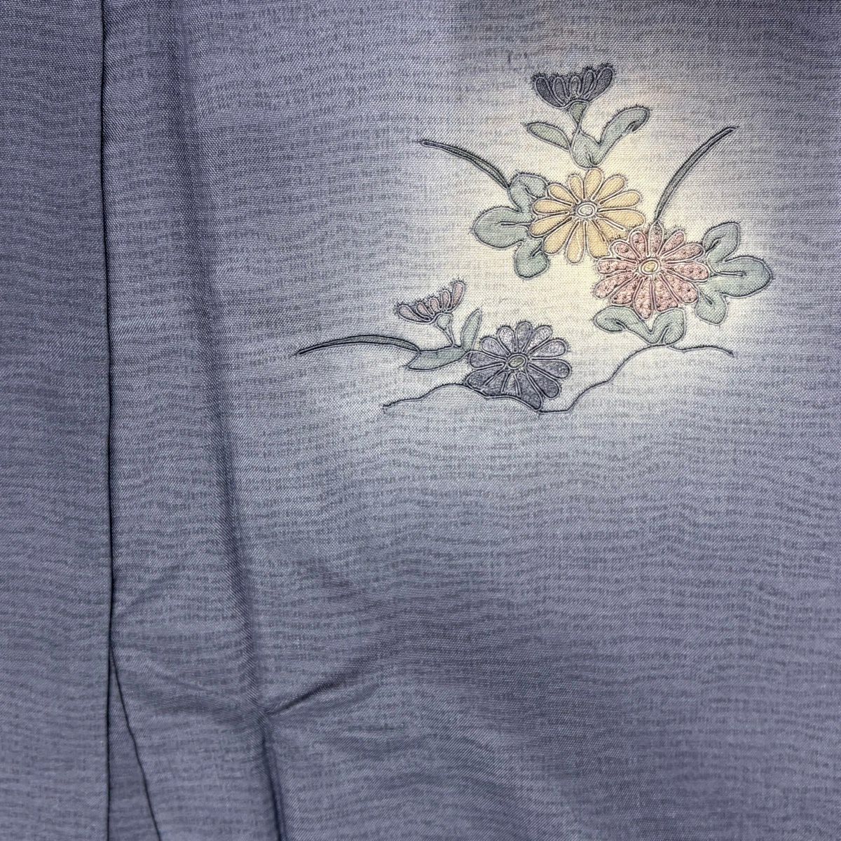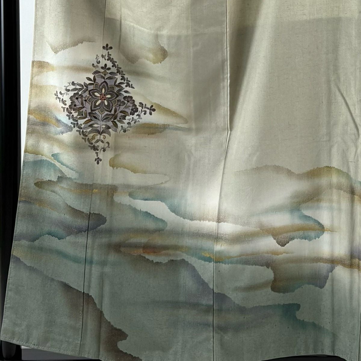 【在庫一掃】 付下げ 身丈154cm 裄丈64.5cm M 袷 霞 シルエット ぼかし 青灰色 正絹 秀品