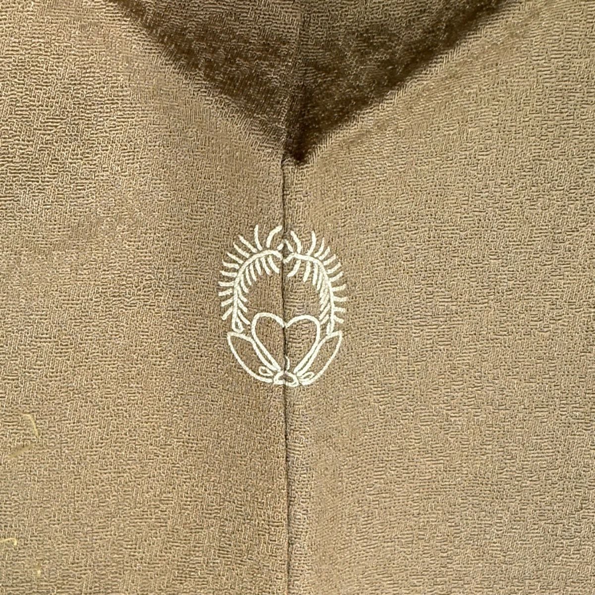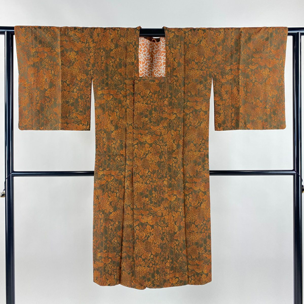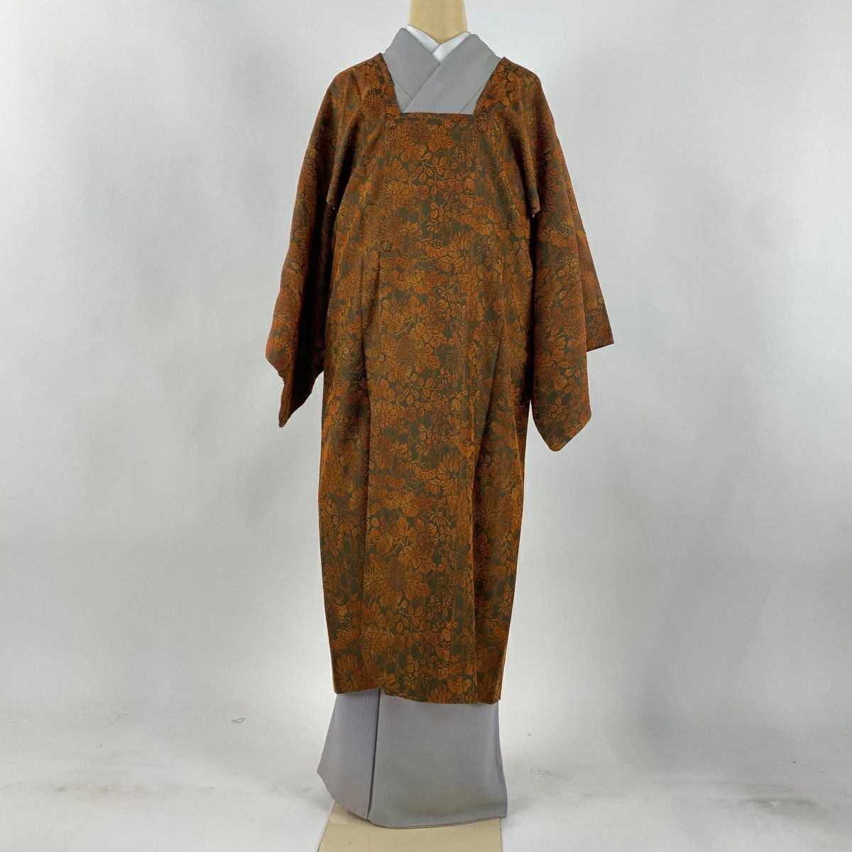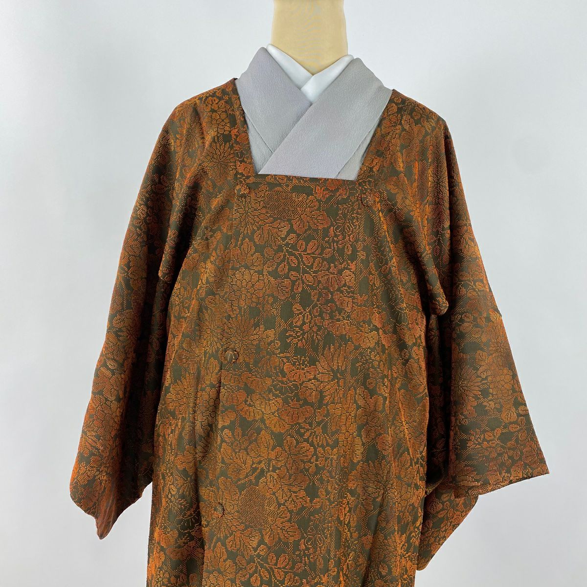 【在庫一掃】 【美品】 道行 身丈117cm 裄丈65cm M 和装コート 角衿 草花 松 茶色 正絹 秀品