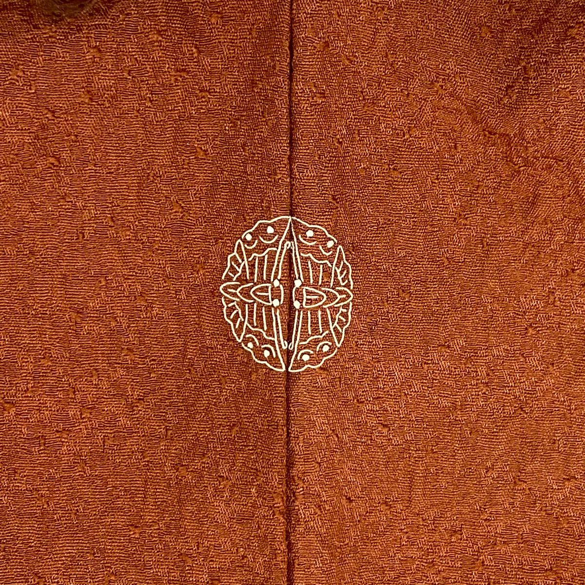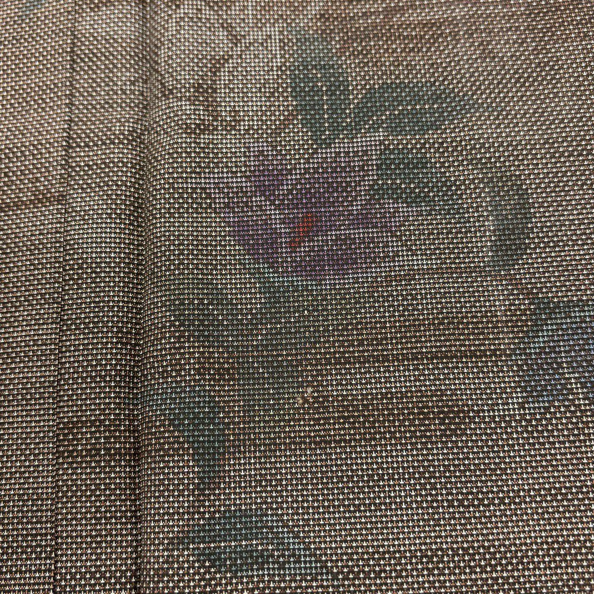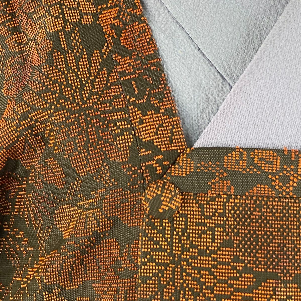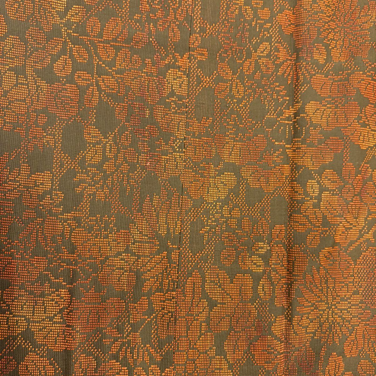 【在庫一掃】 【美品】 道行 身丈117cm 裄丈65cm M 和装コート 角衿 草花 松 茶色 正絹 秀品