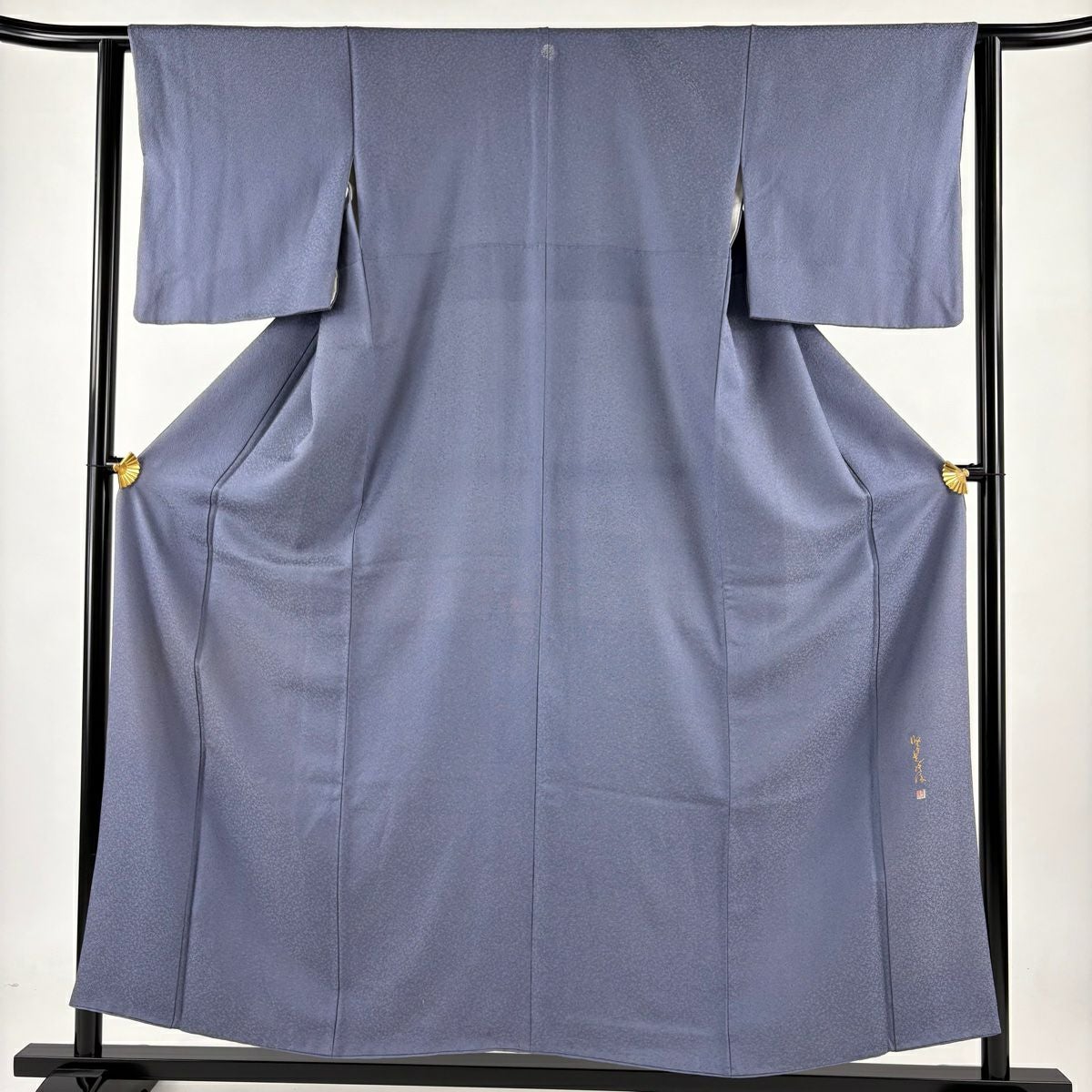 【在庫一掃】 江戸小紋 身丈154.5cm 裄丈63cm S 袷 落款あり 鮫 青灰色 正絹 秀品 一つ紋