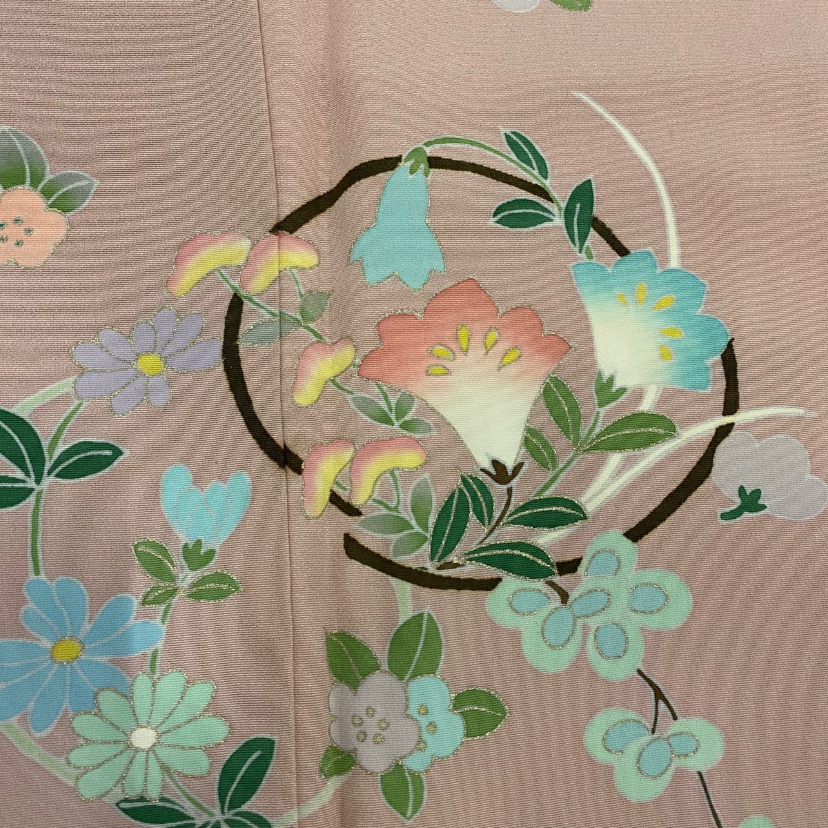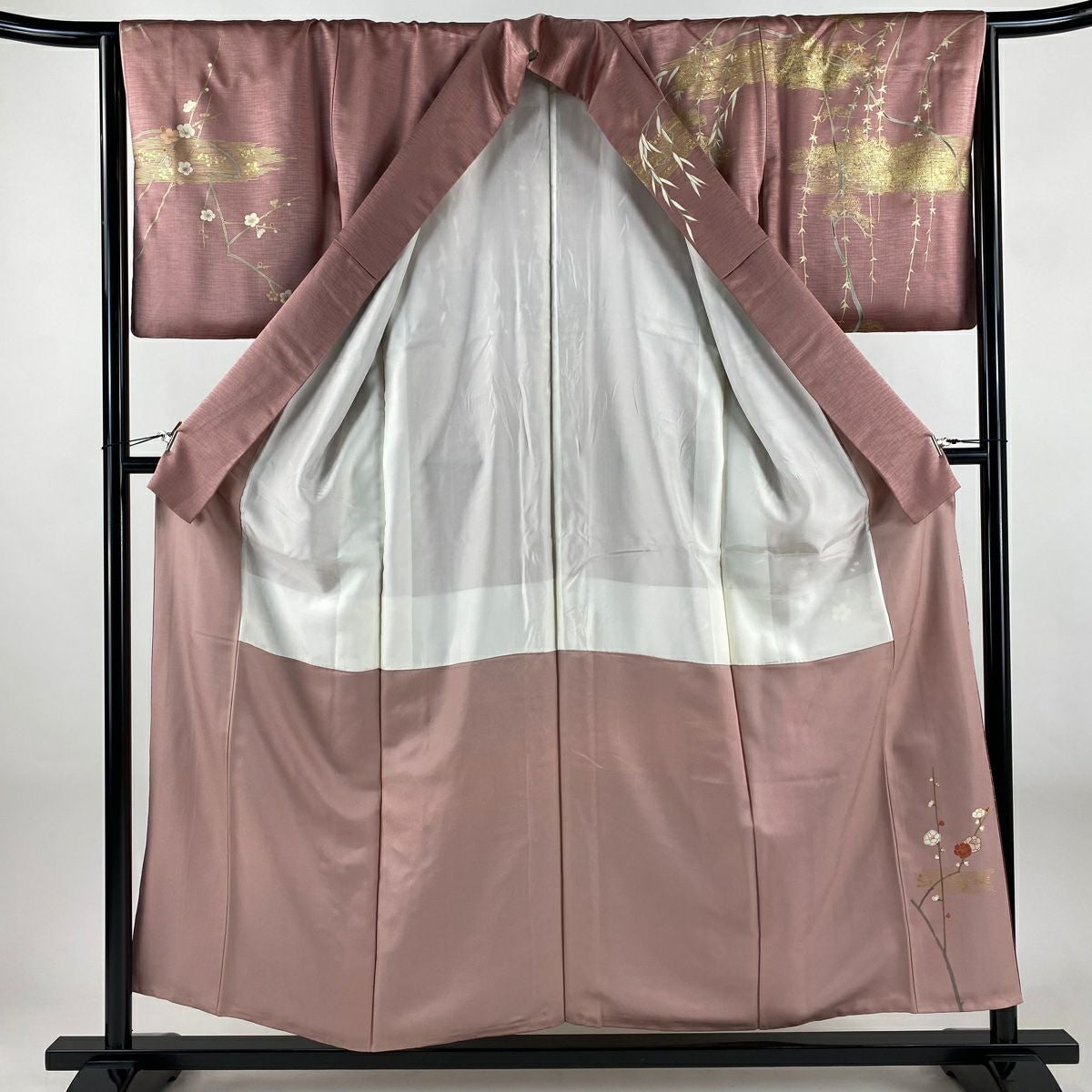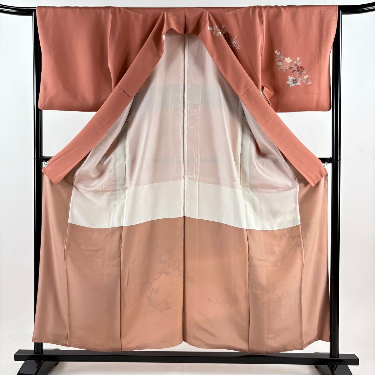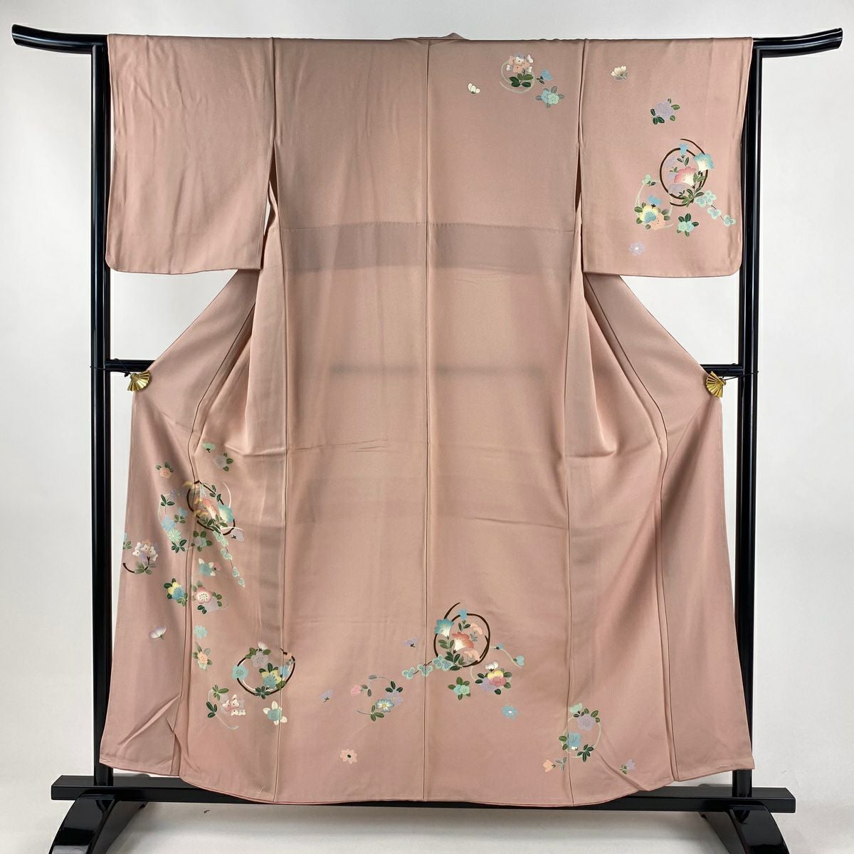 【在庫一掃】 訪問着 身丈156cm 裄丈64cm M 袷 草花 流水 金彩 ぼかし ピンク 正絹 秀品