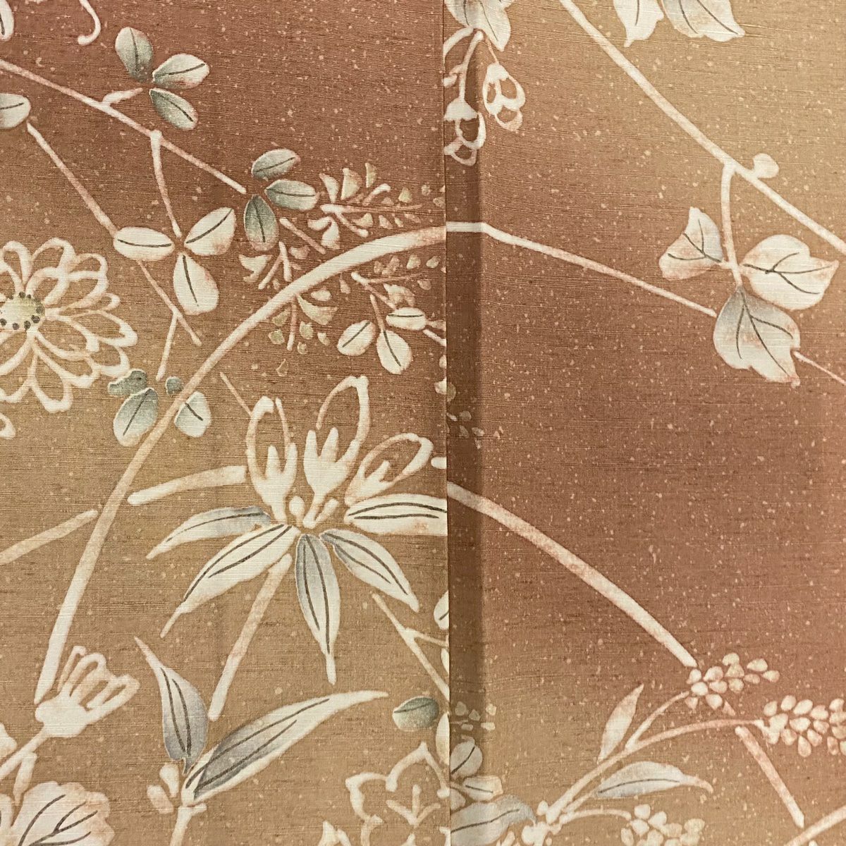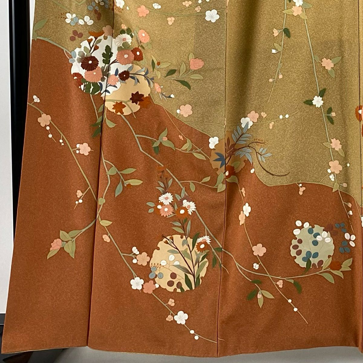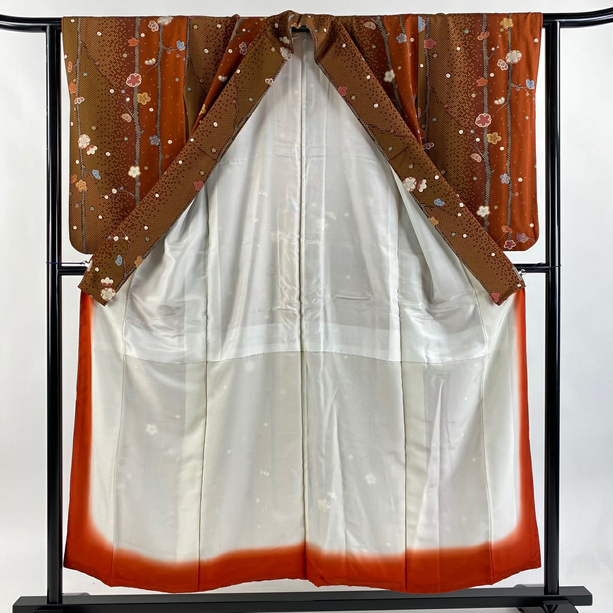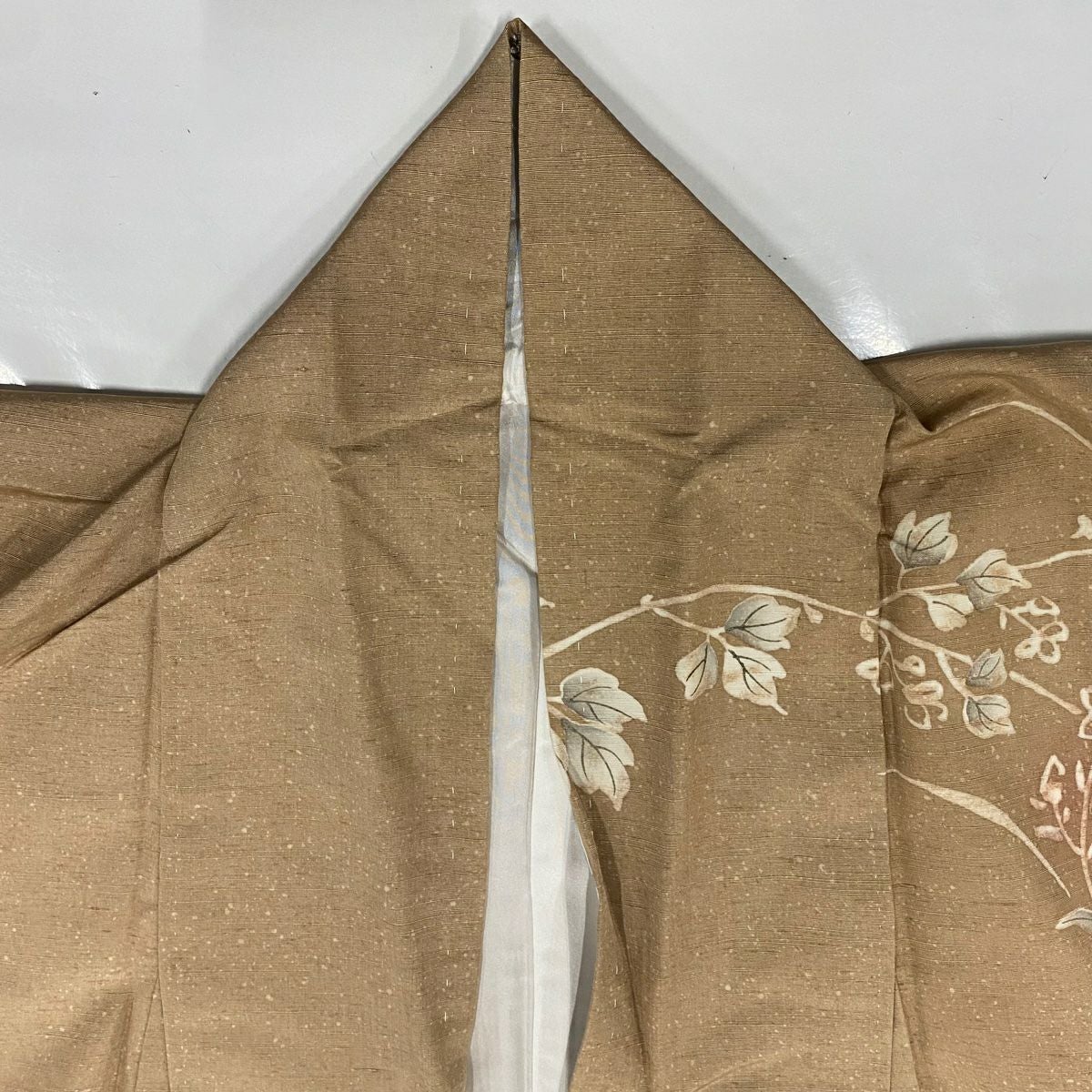 【在庫一掃】 訪問着 身丈156.5cm 裄丈61.5cm S 袷 草花 染め分け ぼかし 薄茶色 正絹 秀品