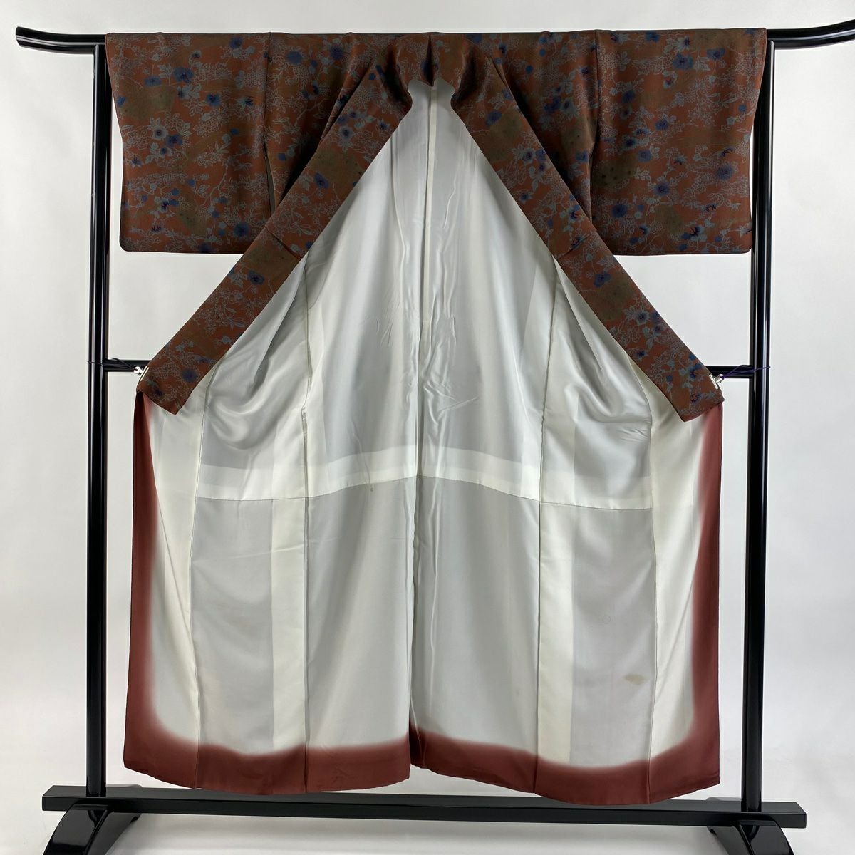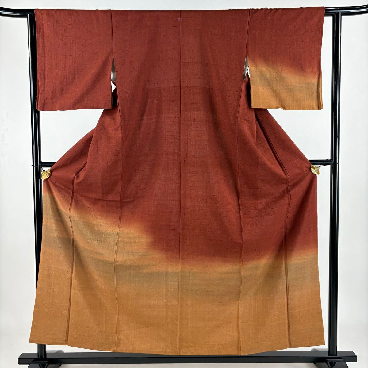 【在庫一掃】 付下げ 身丈156cm 裄丈60.5cm S 袷 紬地 霞 ぼかし 赤茶 正絹 秀品 一つ紋