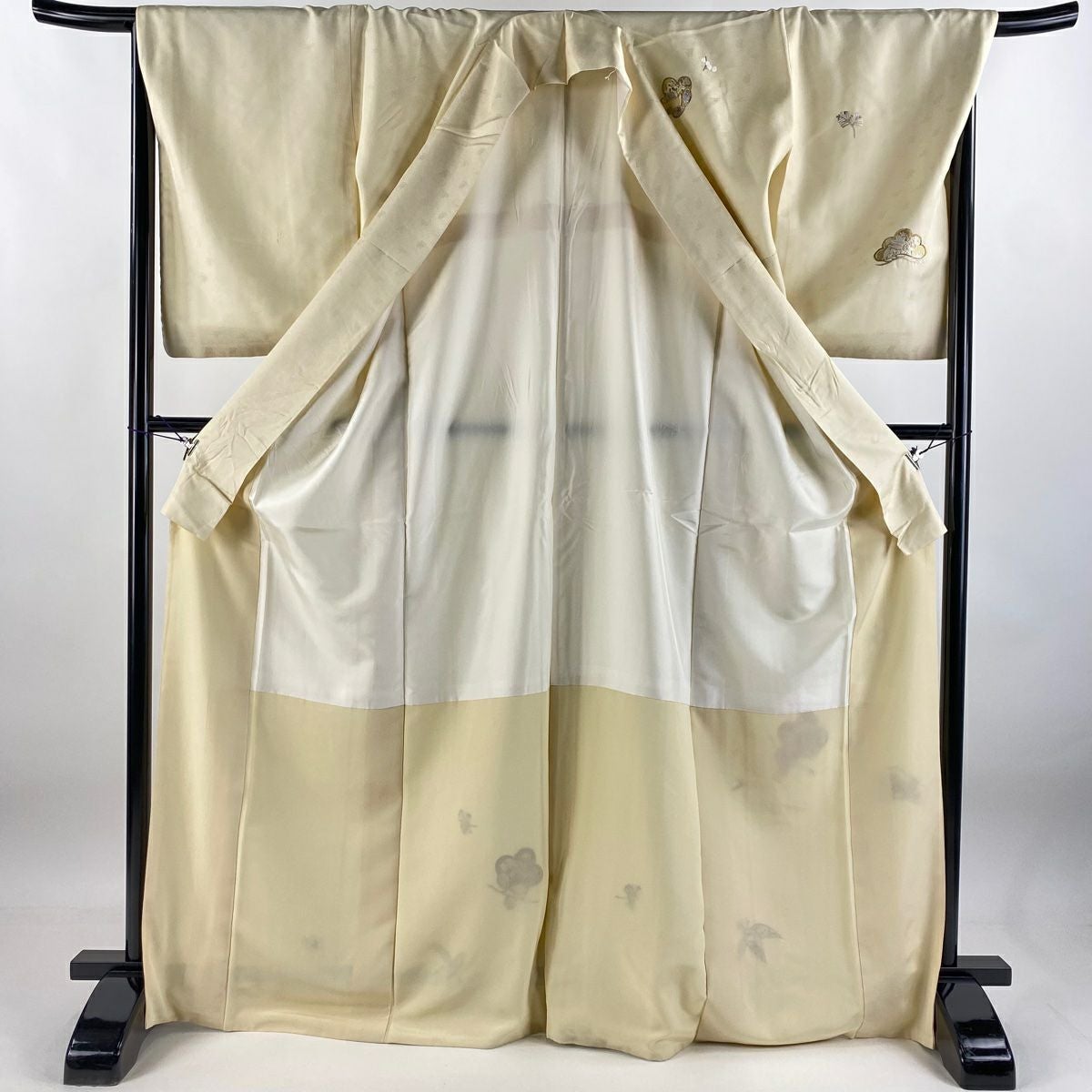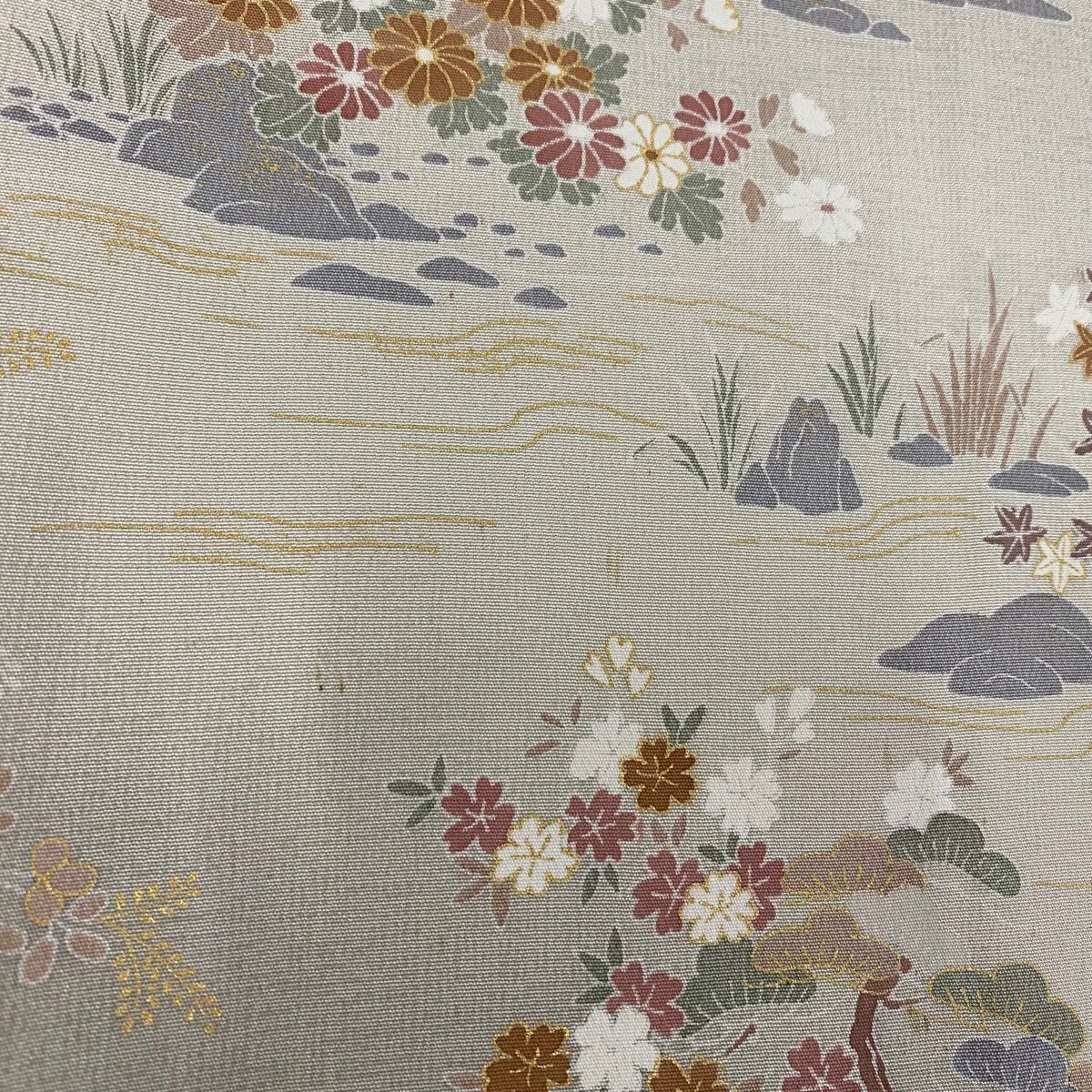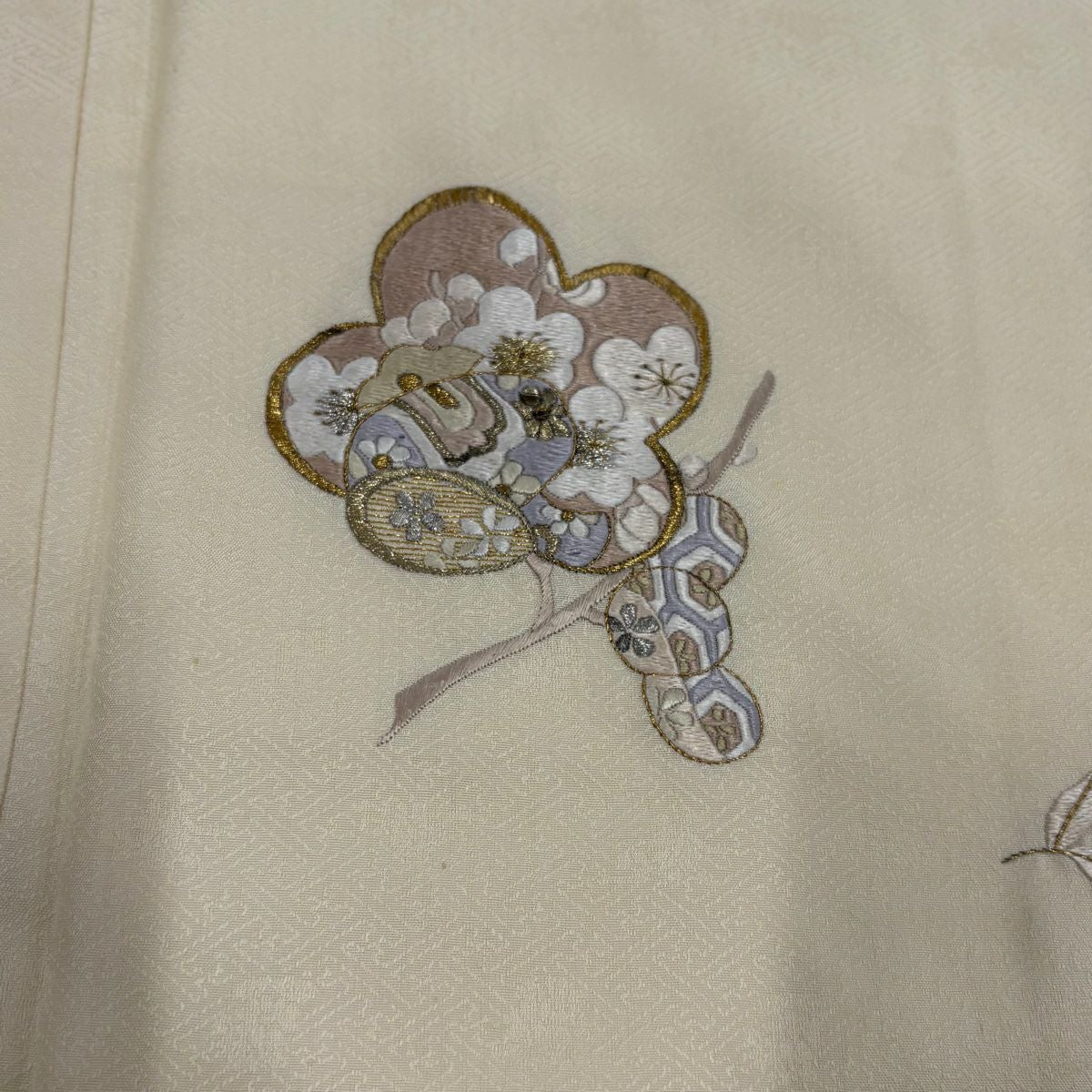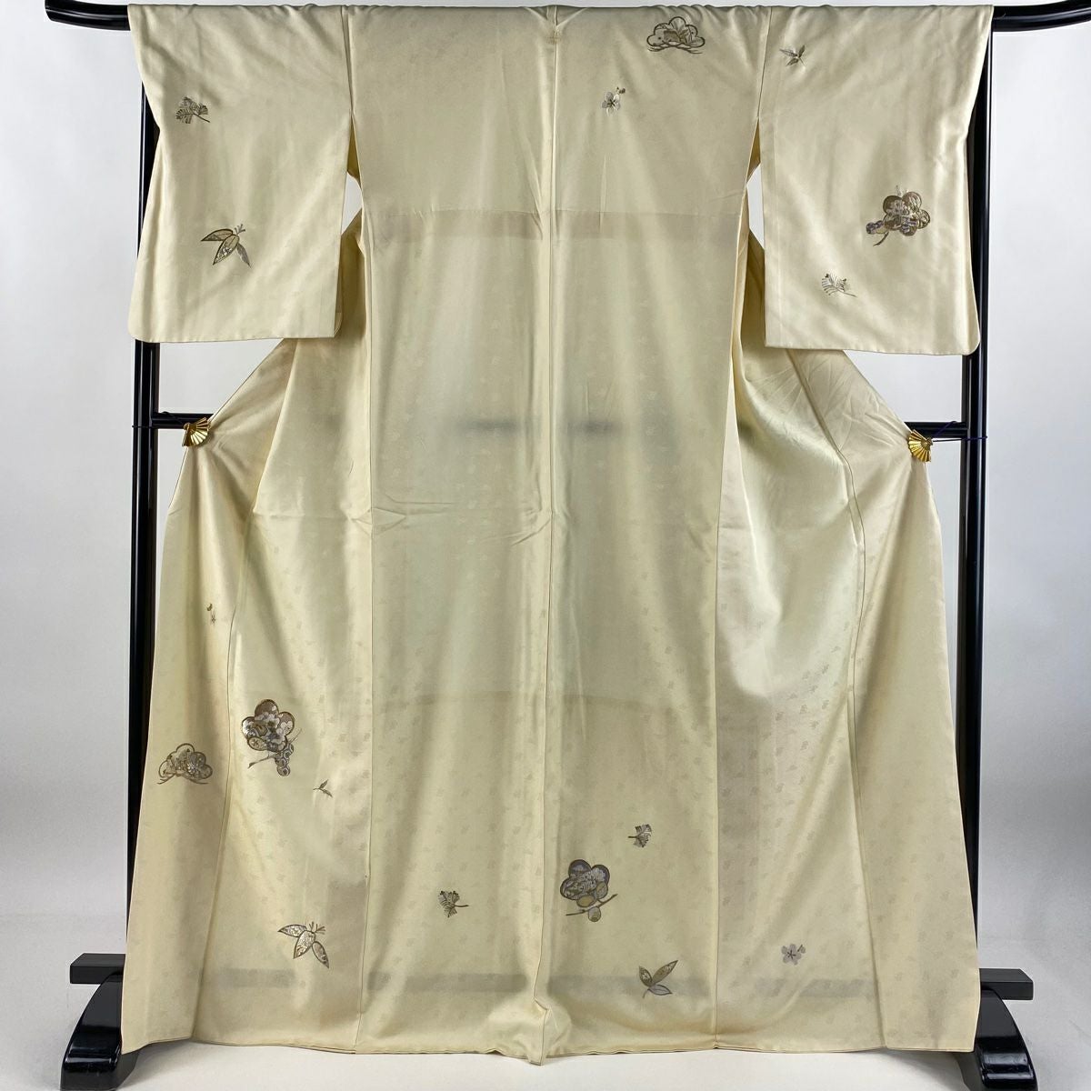 付下げ 身丈170cm 裄丈67cm M 袷 松竹梅 宝尽くし 刺繍 金銀糸 クリーム 正絹 秀品 一つ紋
