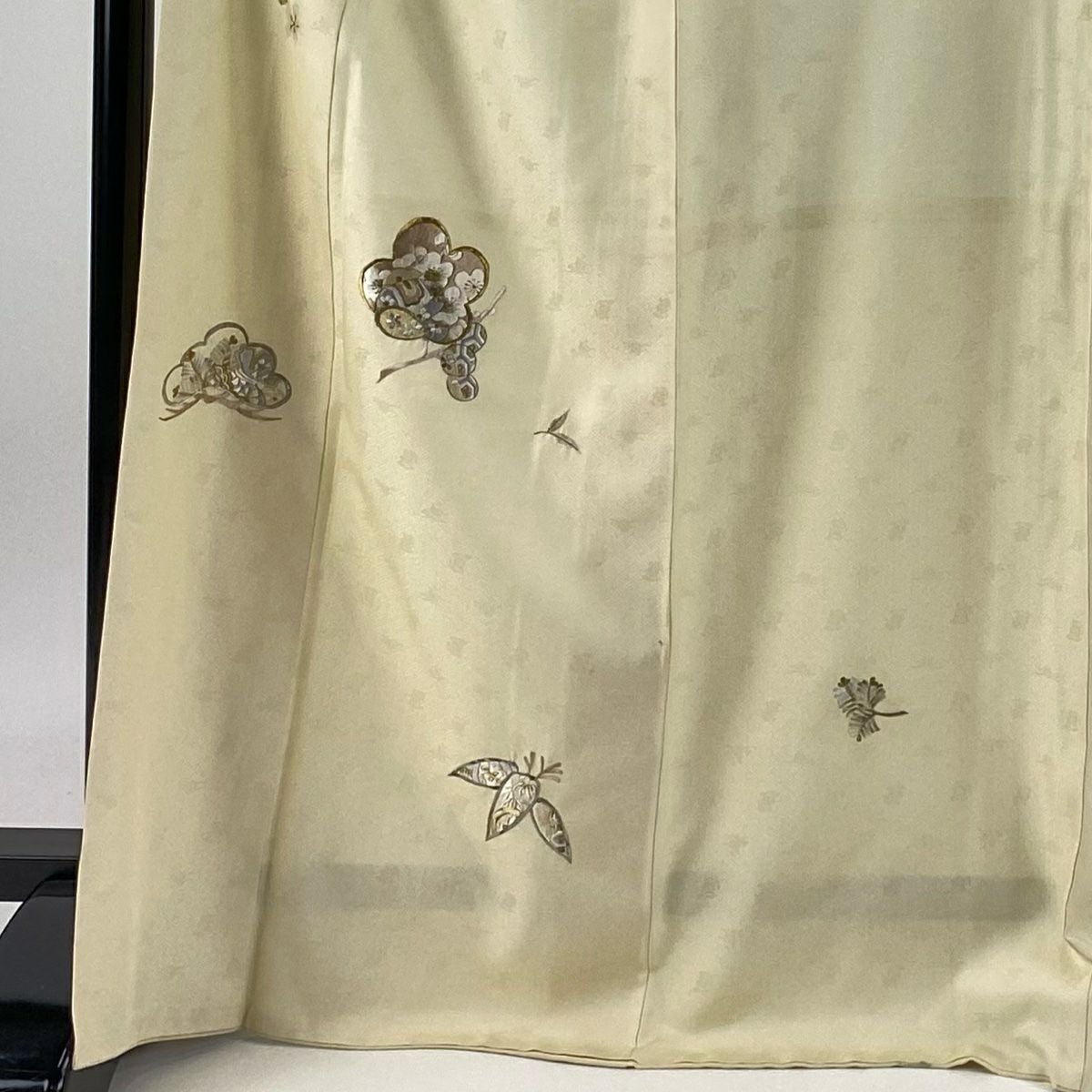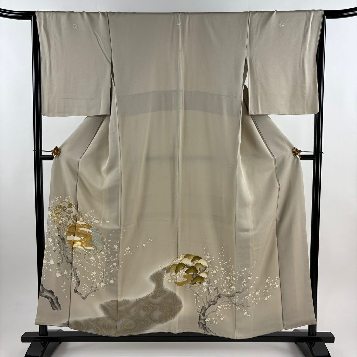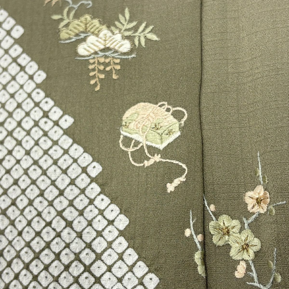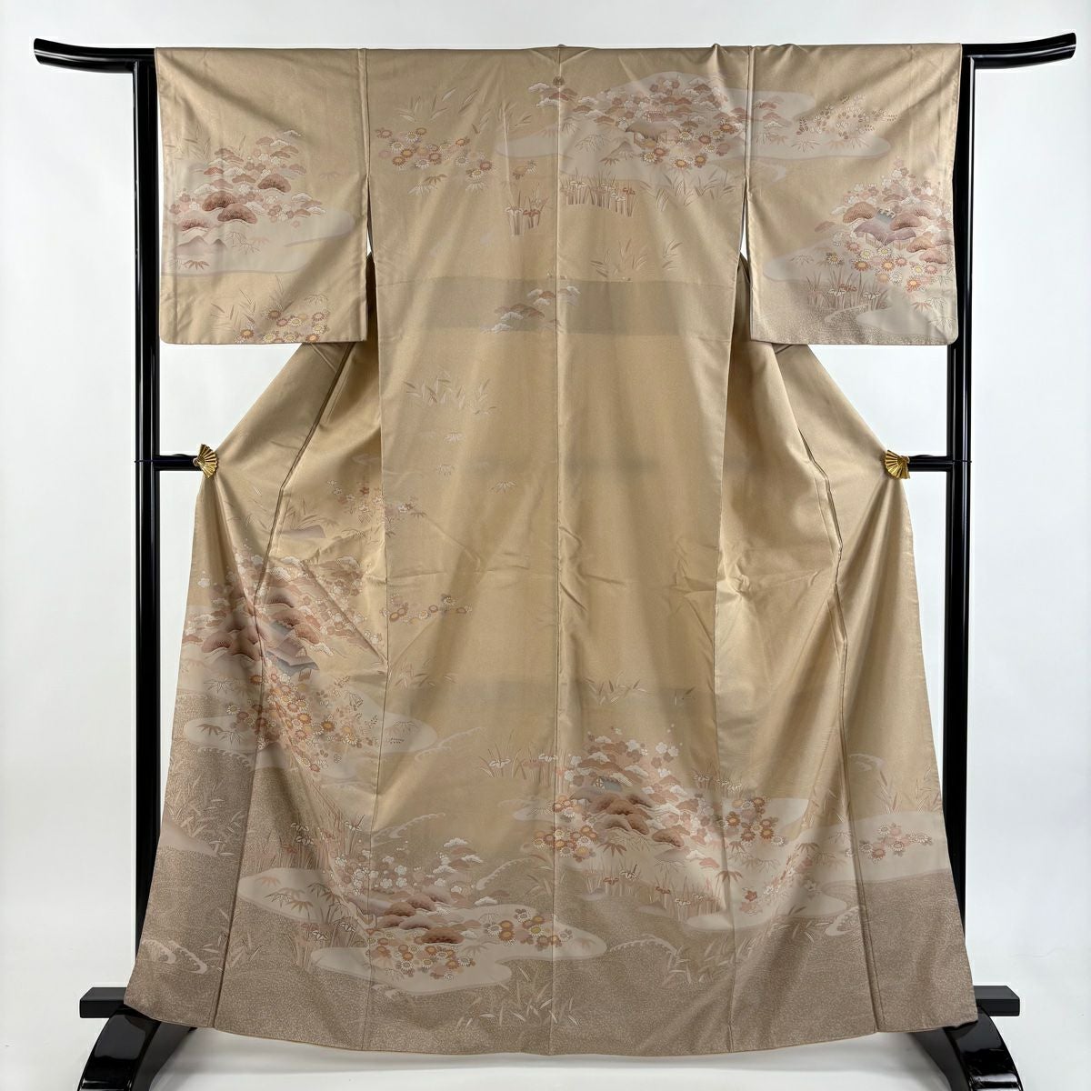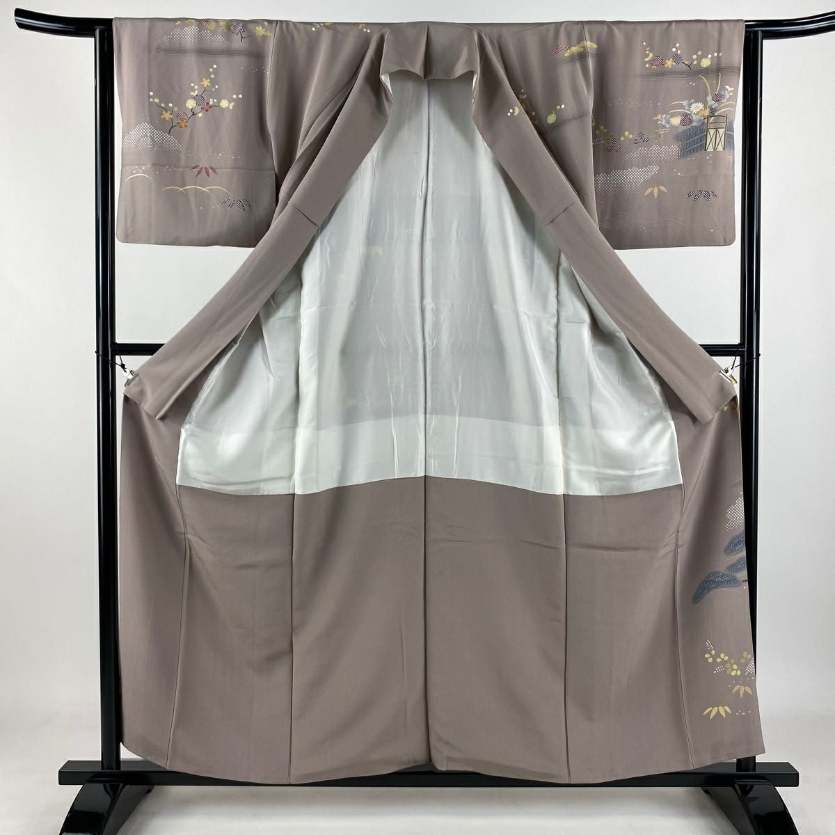 付下げ 身丈170cm 裄丈67cm M 袷 松竹梅 宝尽くし 刺繍 金銀糸 クリーム 正絹 秀品 一つ紋