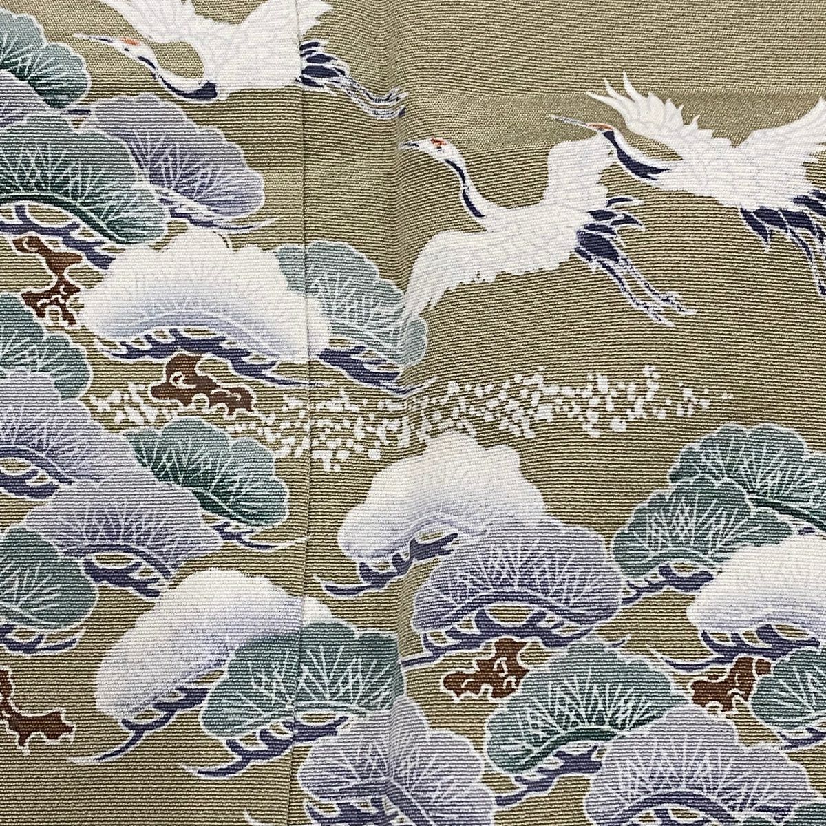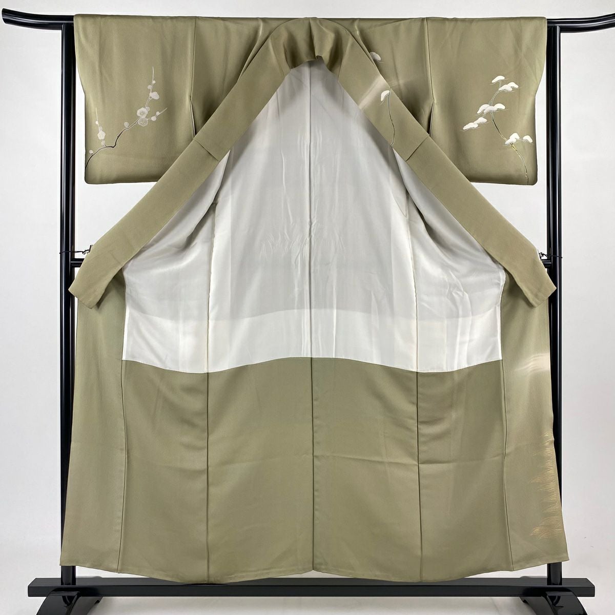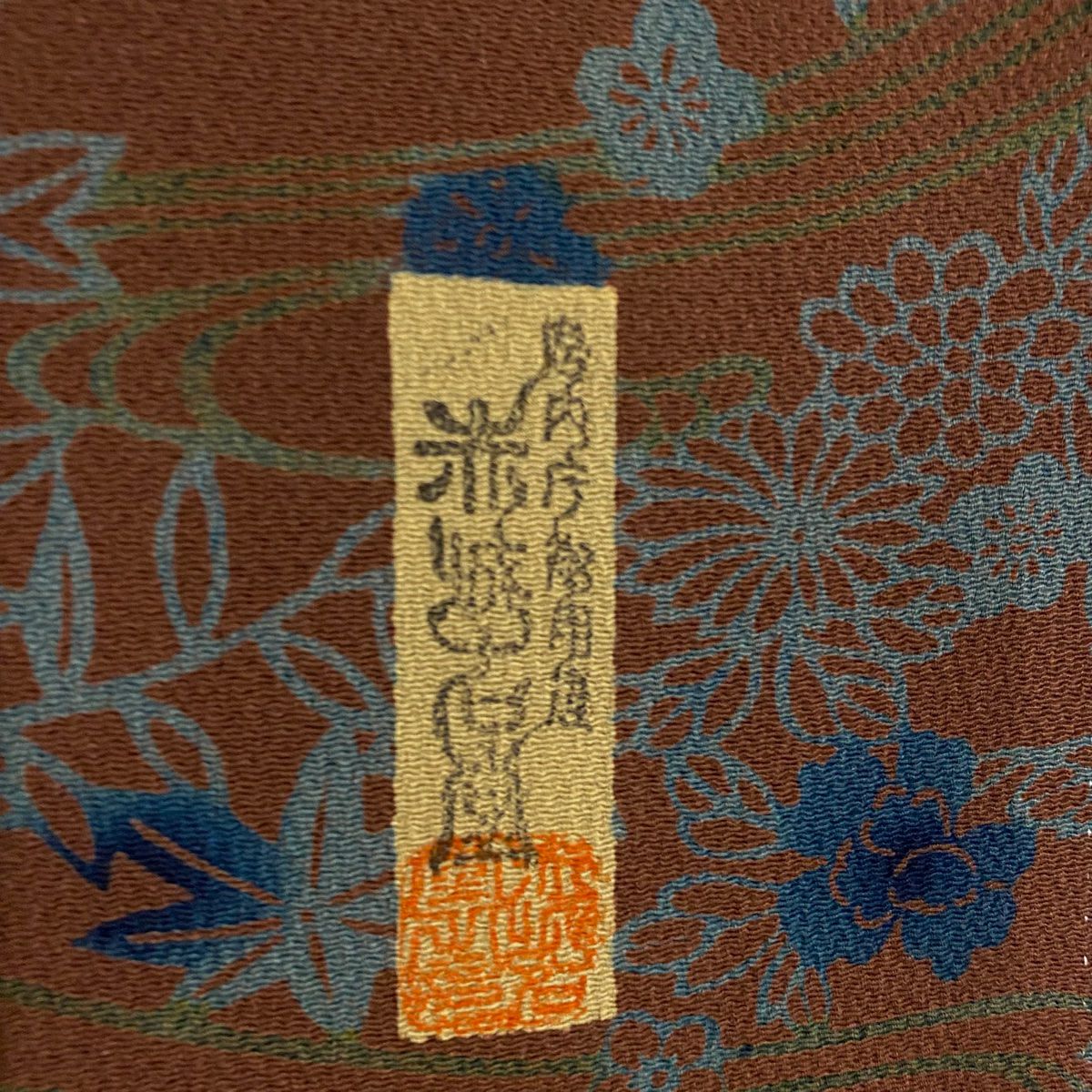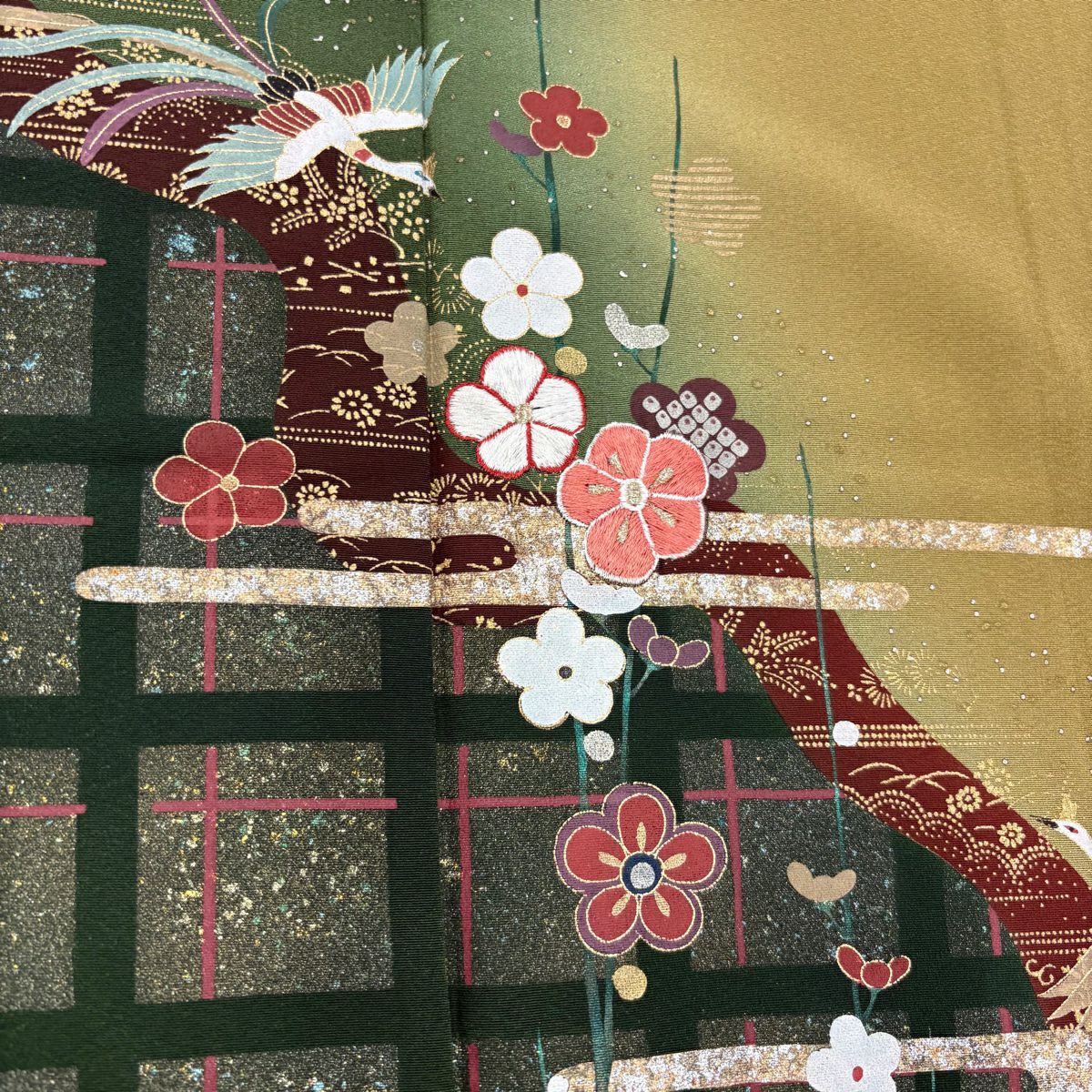 【在庫一掃】 訪問着 身丈163.5cm 裄丈65.5cm M 袷 梅 鳳凰 刺繍 金銀彩 茶緑色 正絹 秀品