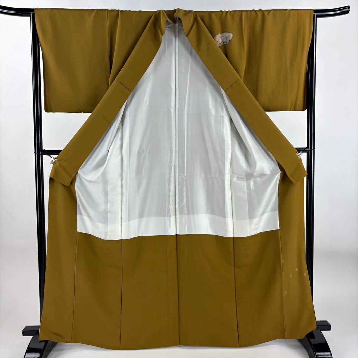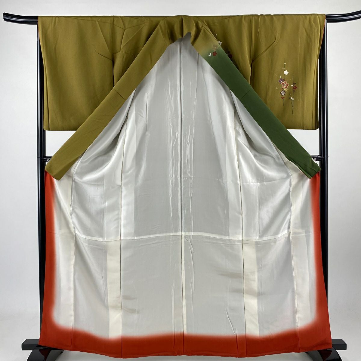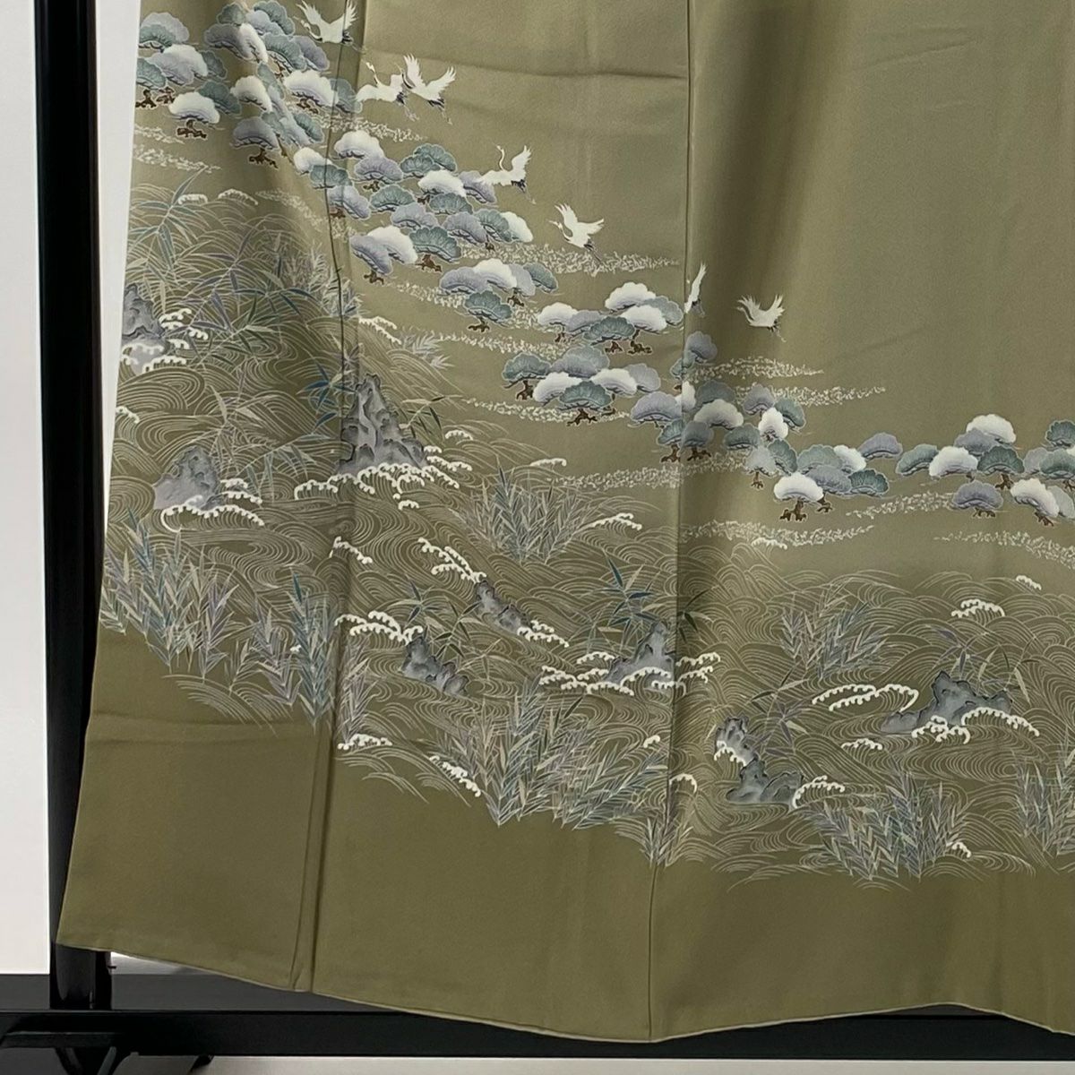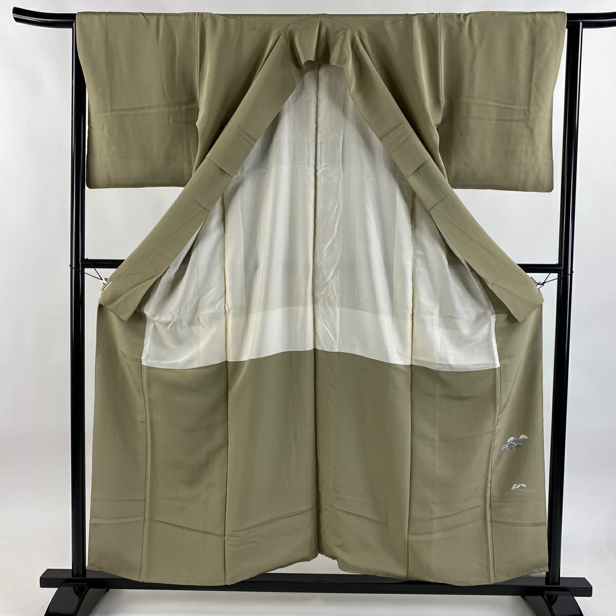 【在庫一掃】 訪問着 身丈163.5cm 裄丈65.5cm M 袷 梅 鳳凰 刺繍 金銀彩 茶緑色 正絹 秀品