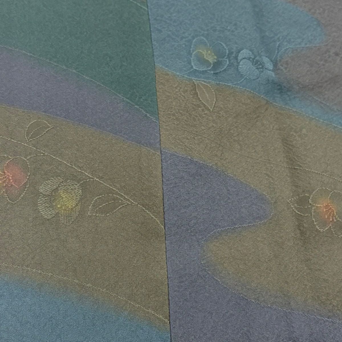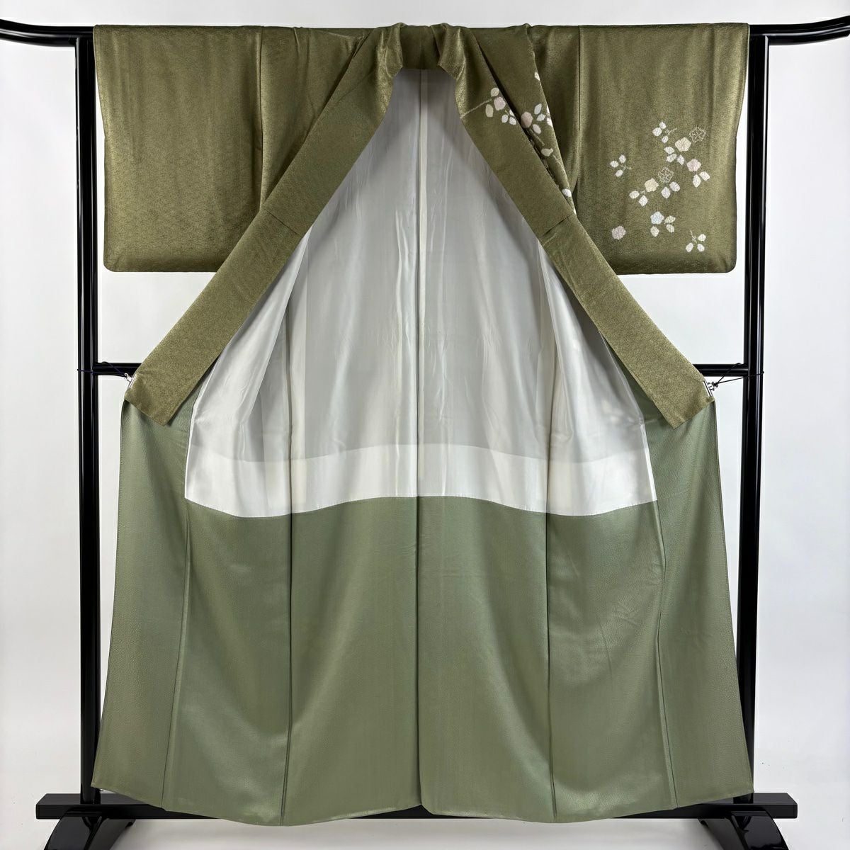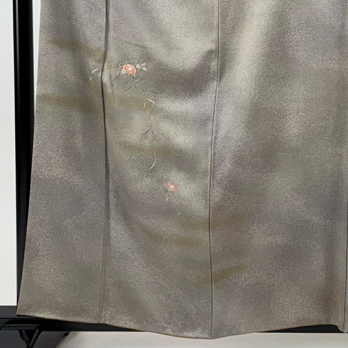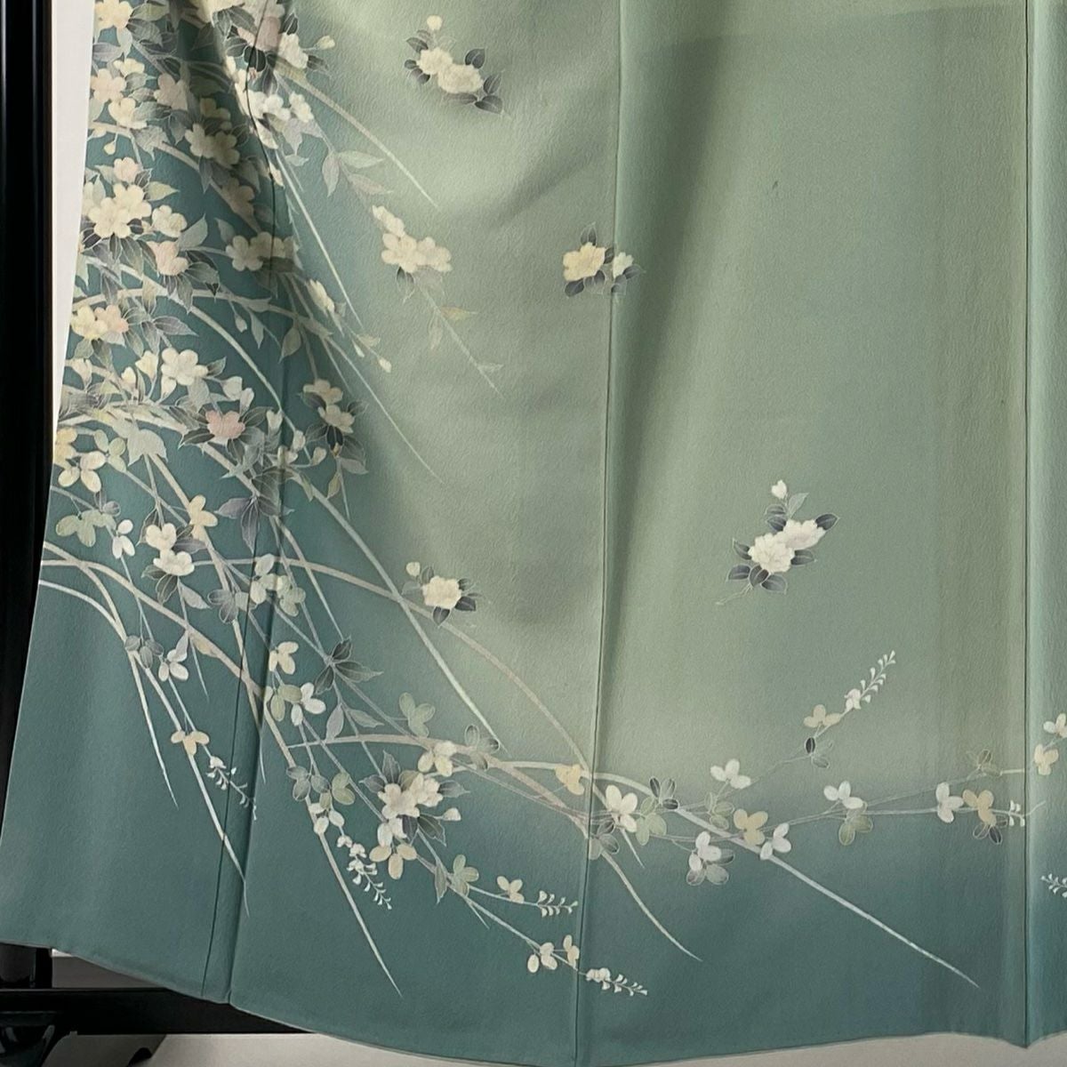 【在庫一掃】 訪問着 身丈160.5cm 裄丈63cm S 袷 草花 芝 ぼかし 灰緑 正絹 秀品 一つ紋