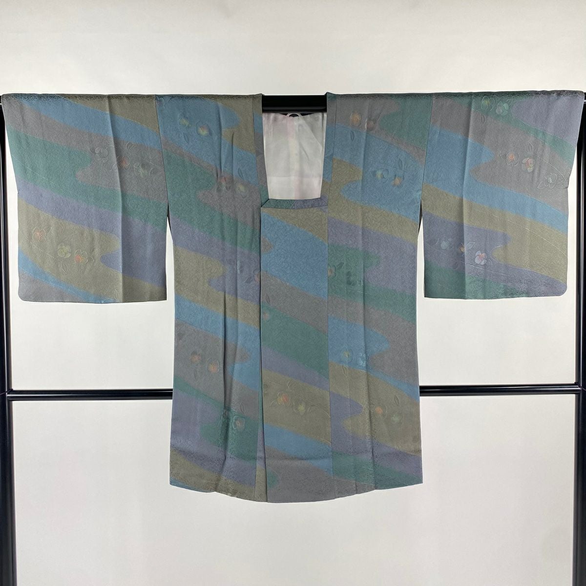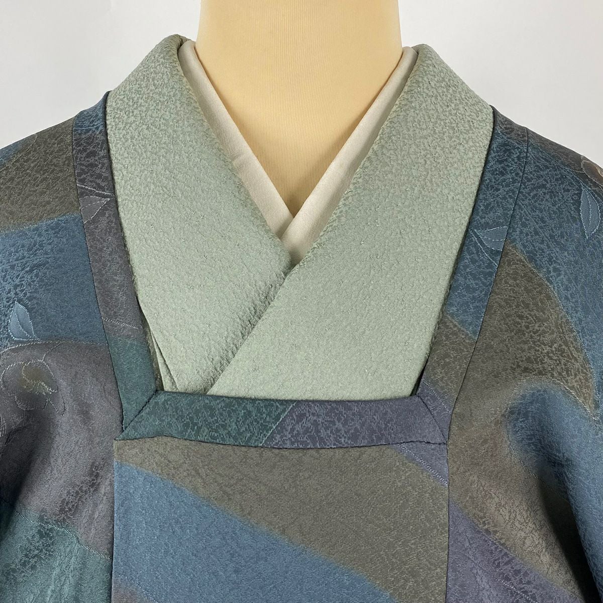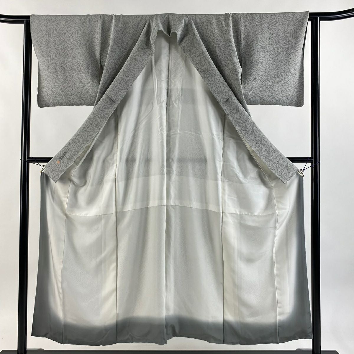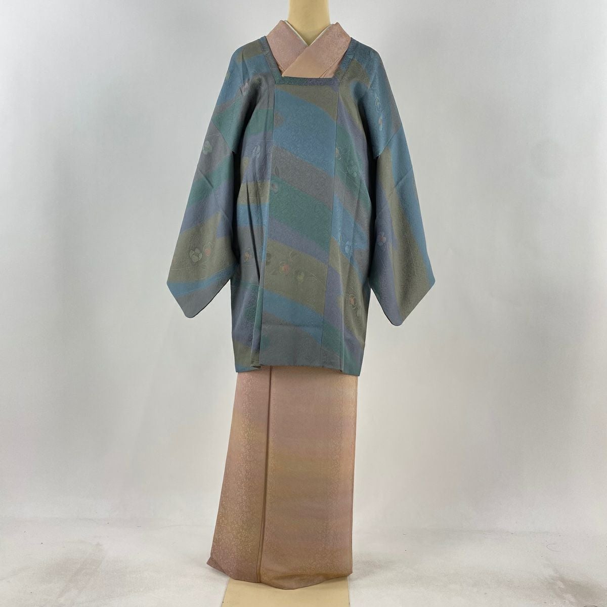 【在庫一掃】 訪問着 身丈160.5cm 裄丈63cm S 袷 草花 芝 ぼかし 灰緑 正絹 秀品 一つ紋