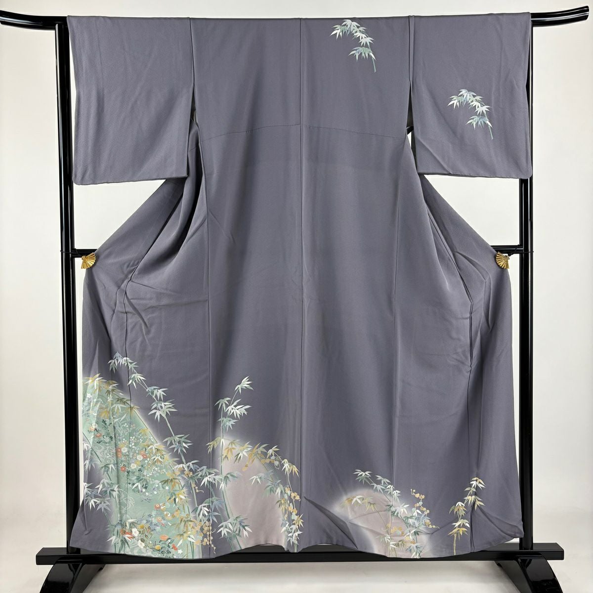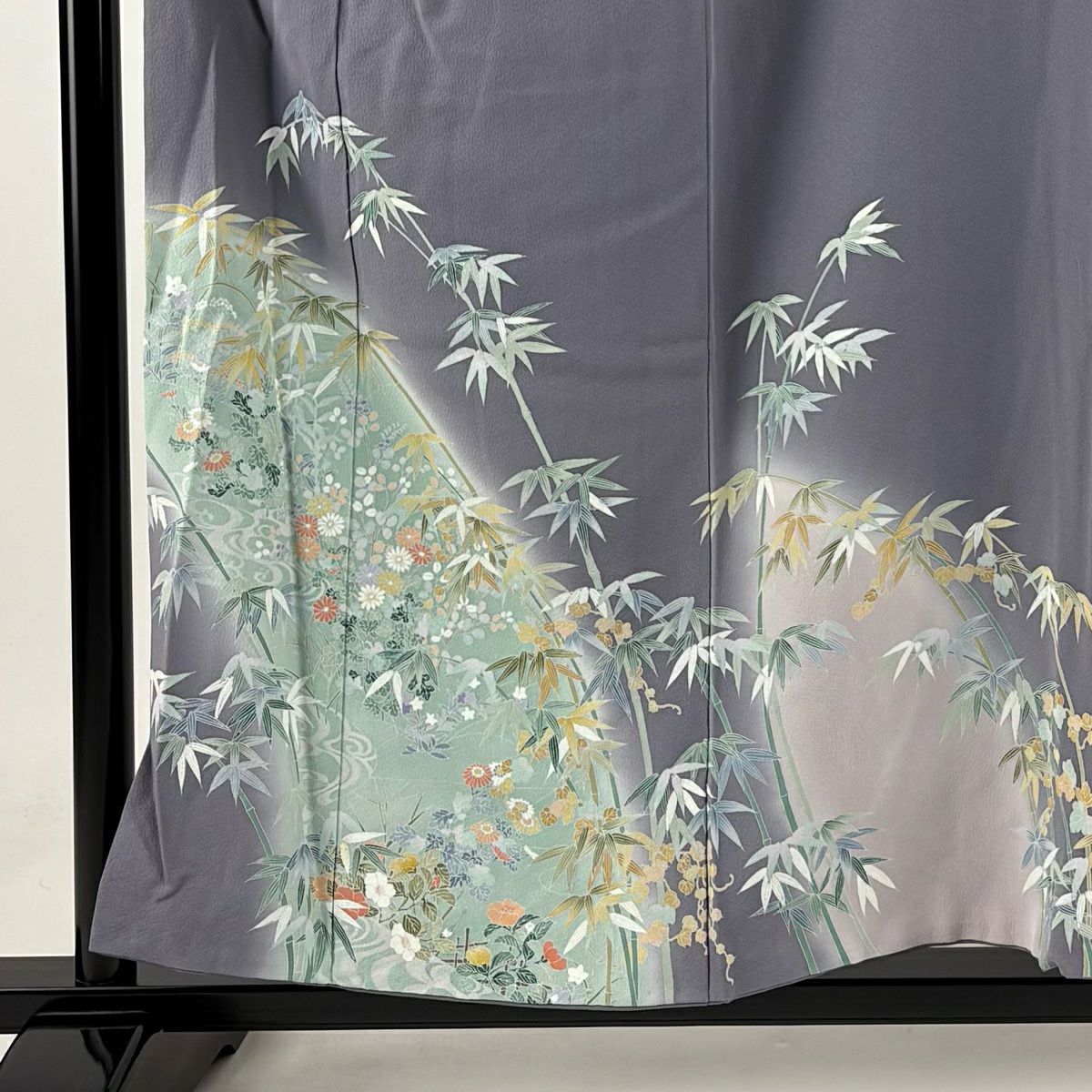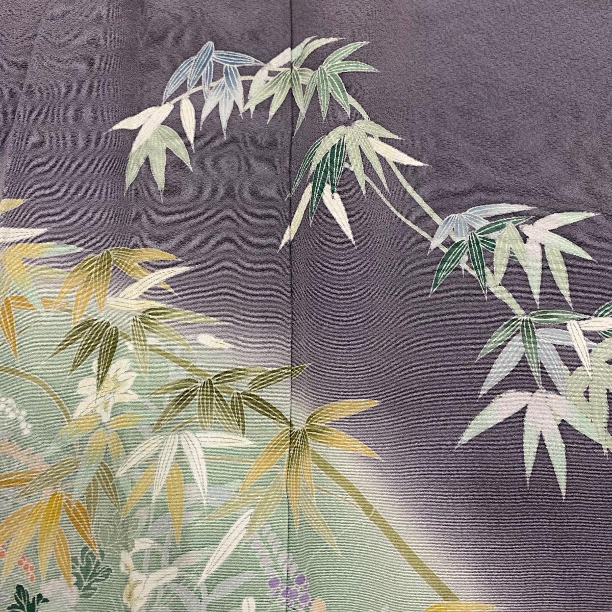 【在庫一掃】 付下げ 身丈156.5cm 裄丈64cm M 袷 竹 菊 染め分け ぼかし 灰紫 正絹 秀品