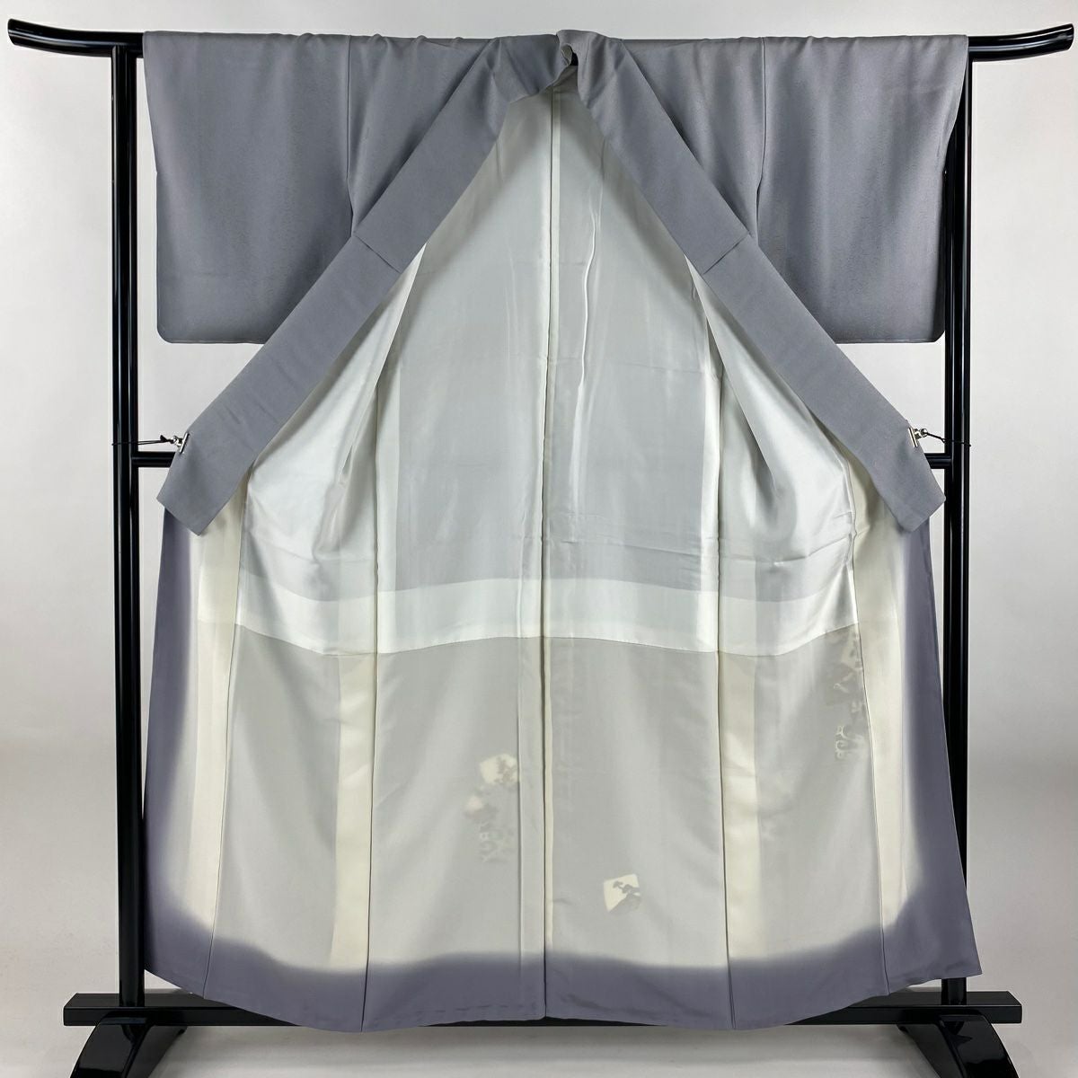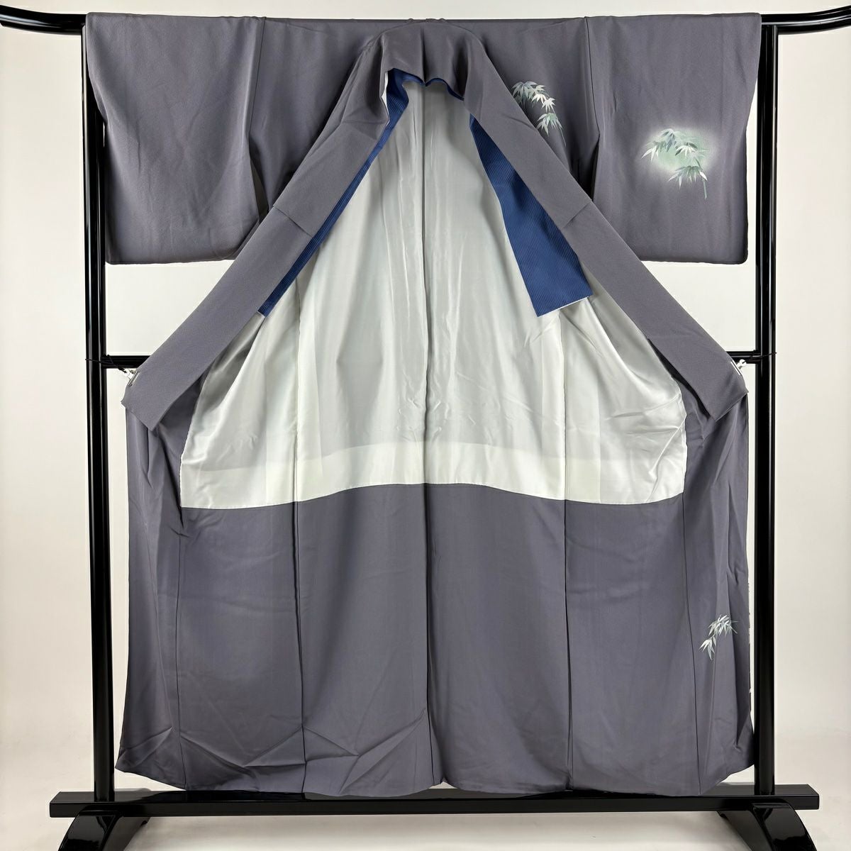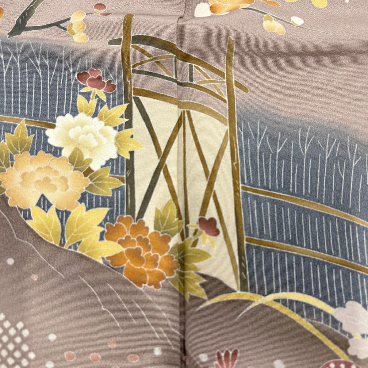 【在庫一掃】 付下げ 身丈156.5cm 裄丈64cm M 袷 竹 菊 染め分け ぼかし 灰紫 正絹 秀品