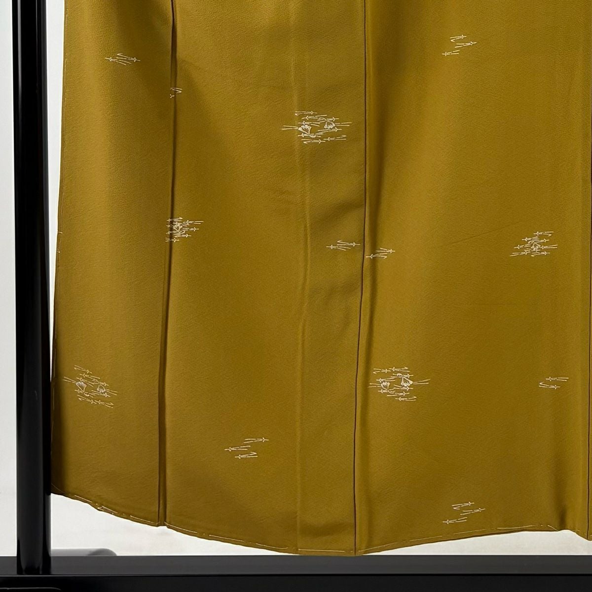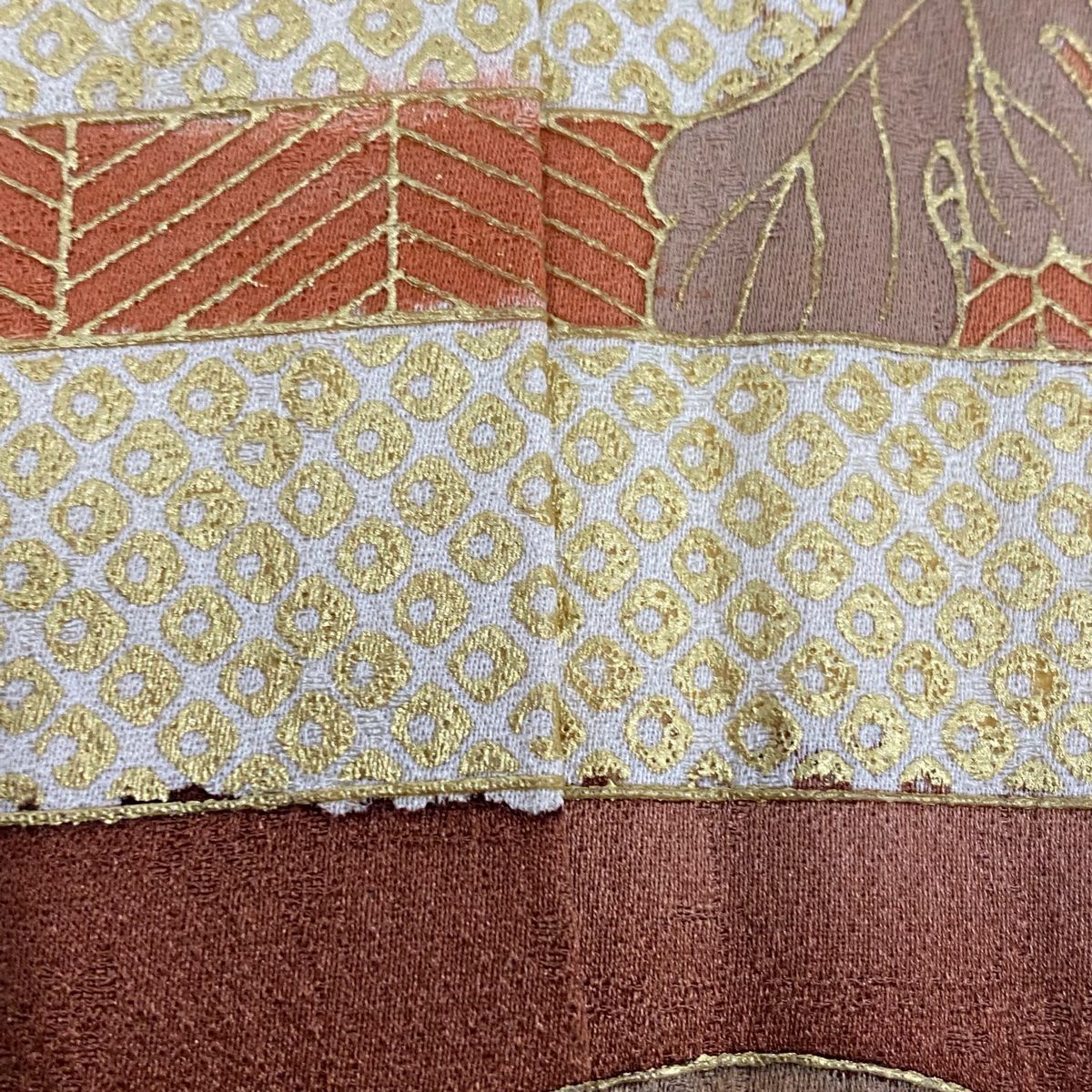 【在庫一掃】 【美品】 小紋 身丈153.5cm 裄丈62.5cm S 袷 松葉 イチョウ 山吹茶色 正絹 秀品