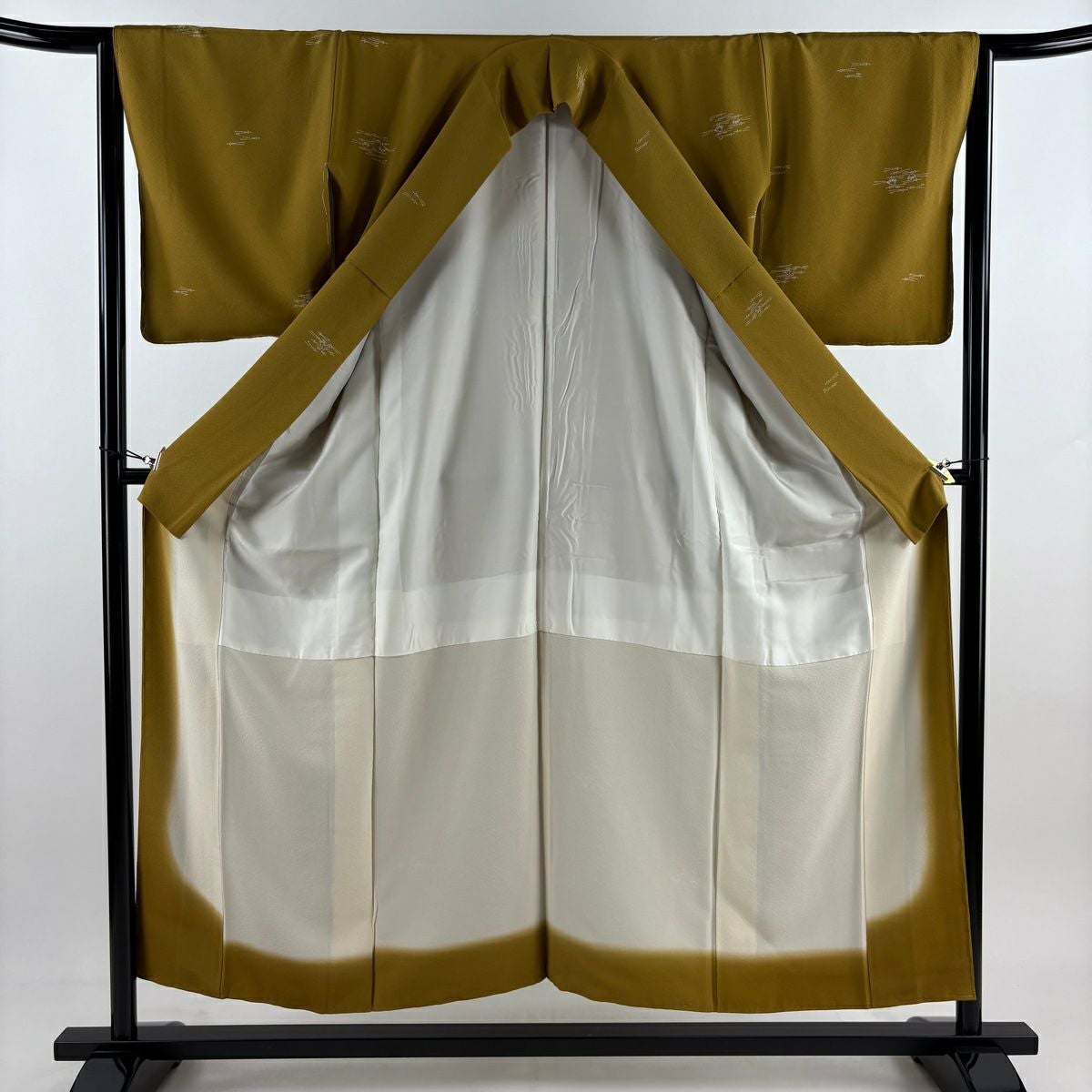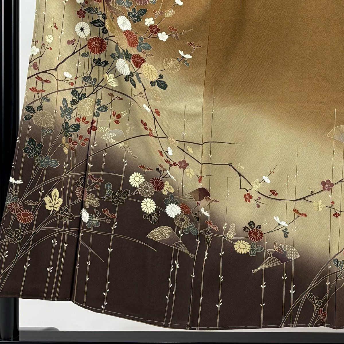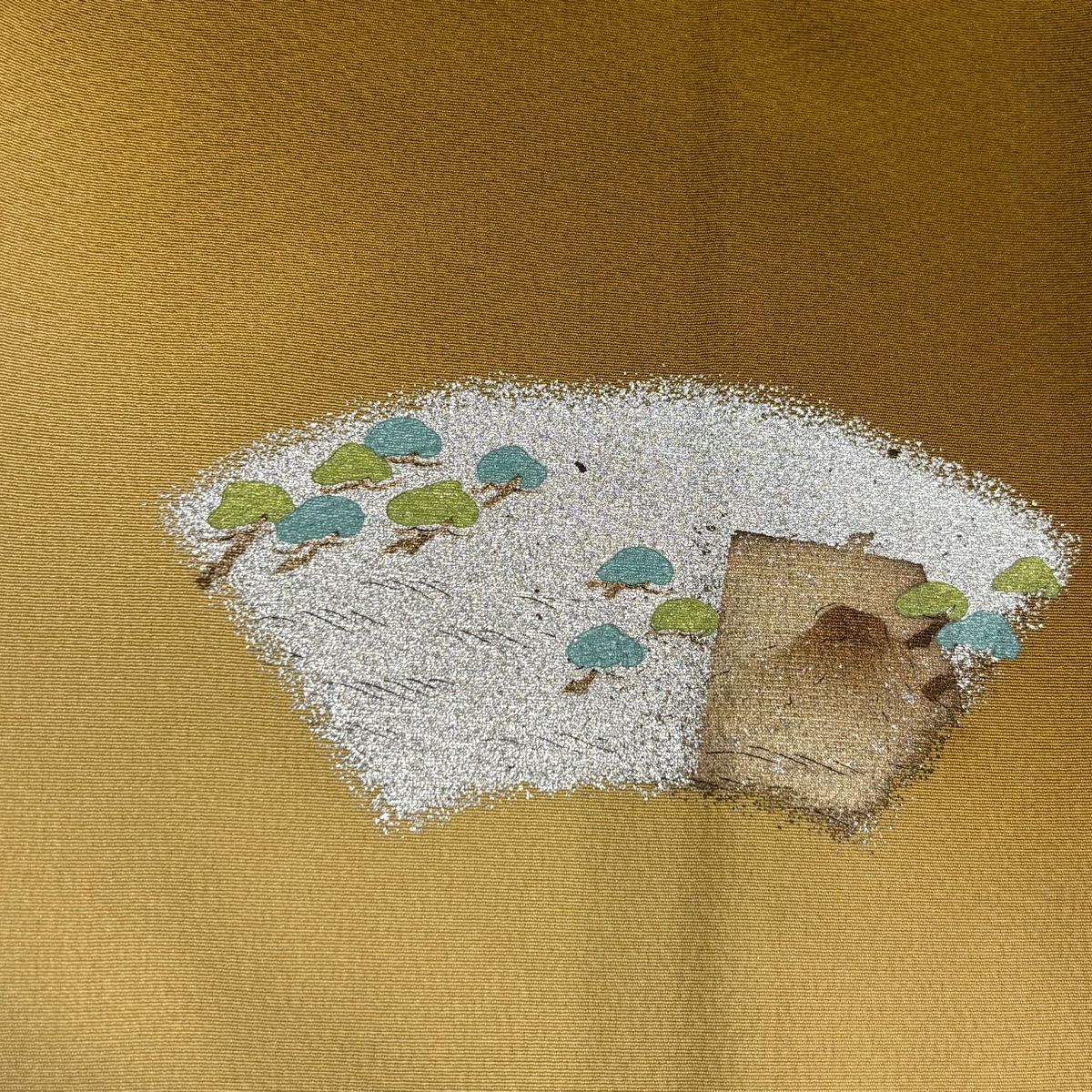 【在庫一掃】 付下げ 身丈164.5cm 裄丈64.5cm M 袷 扇面 鷺 金銀彩 ぼかし 山吹茶色 正絹 秀品