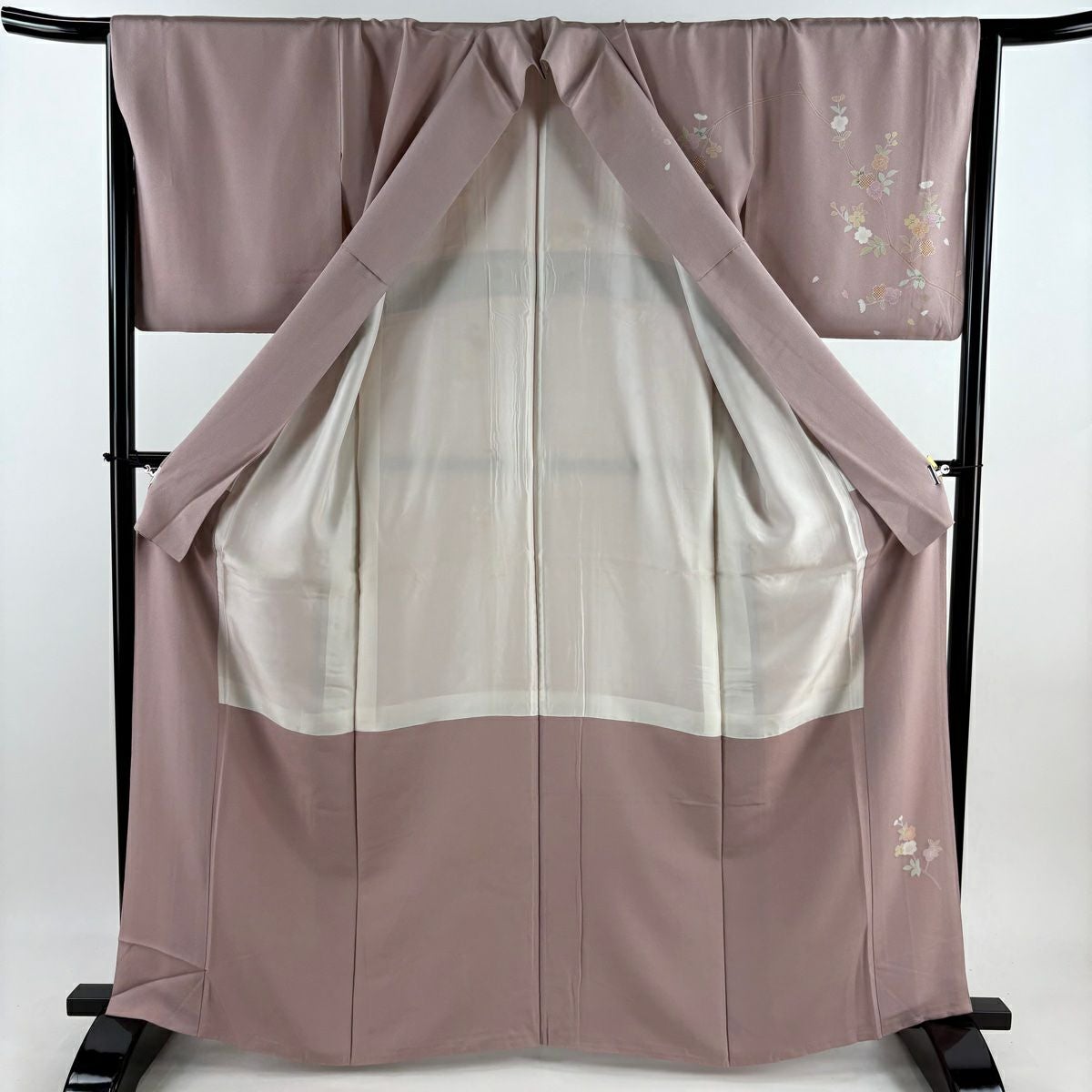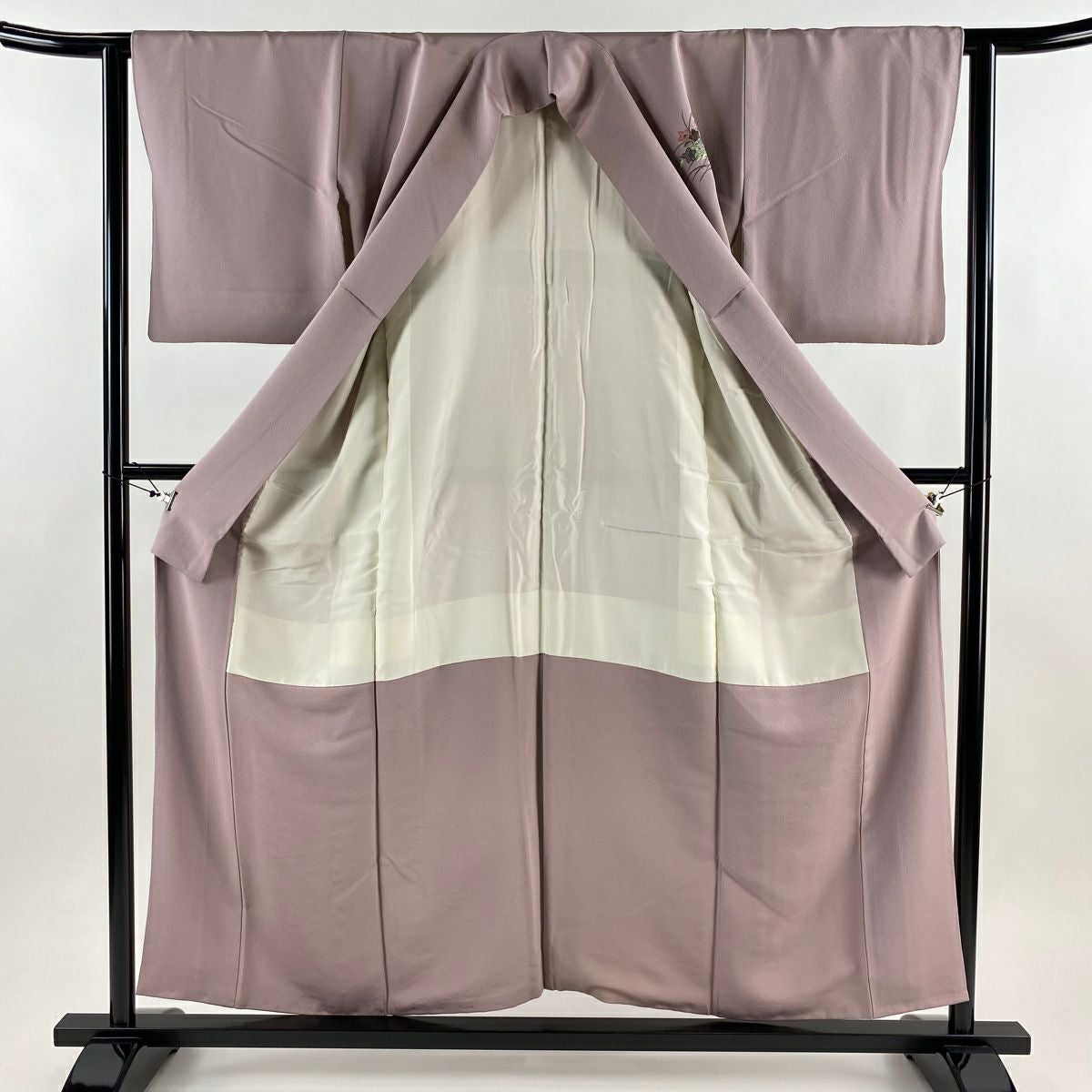 【在庫一掃】 訪問着 身丈158cm 裄丈63cm S 袷 落款あり 枝梅 柴垣 灰紫 正絹 秀品 一つ紋