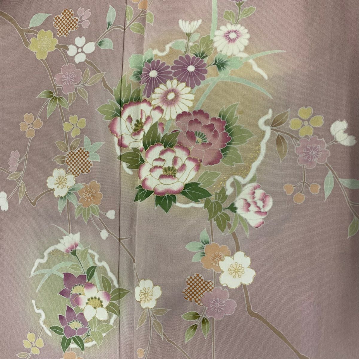 【在庫一掃】 訪問着 身丈164.5cm 裄丈67cm M 袷 雪輪 草花 金彩 ぼかし 灰紫 正絹 秀品