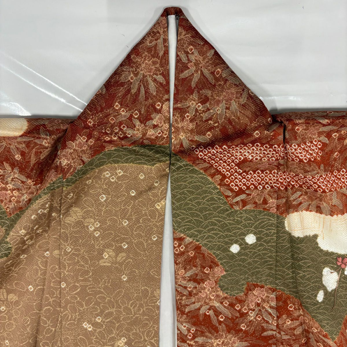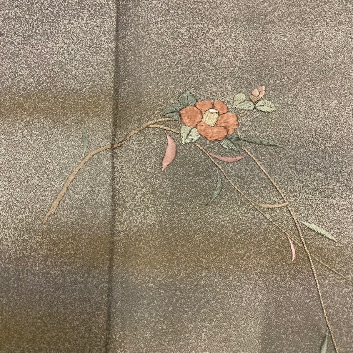 【在庫一掃】 【美品】 訪問着 身丈161cm 裄丈64cm M 袷 椿 ヱ霞 刺繍 絞り 赤茶 正絹 秀品