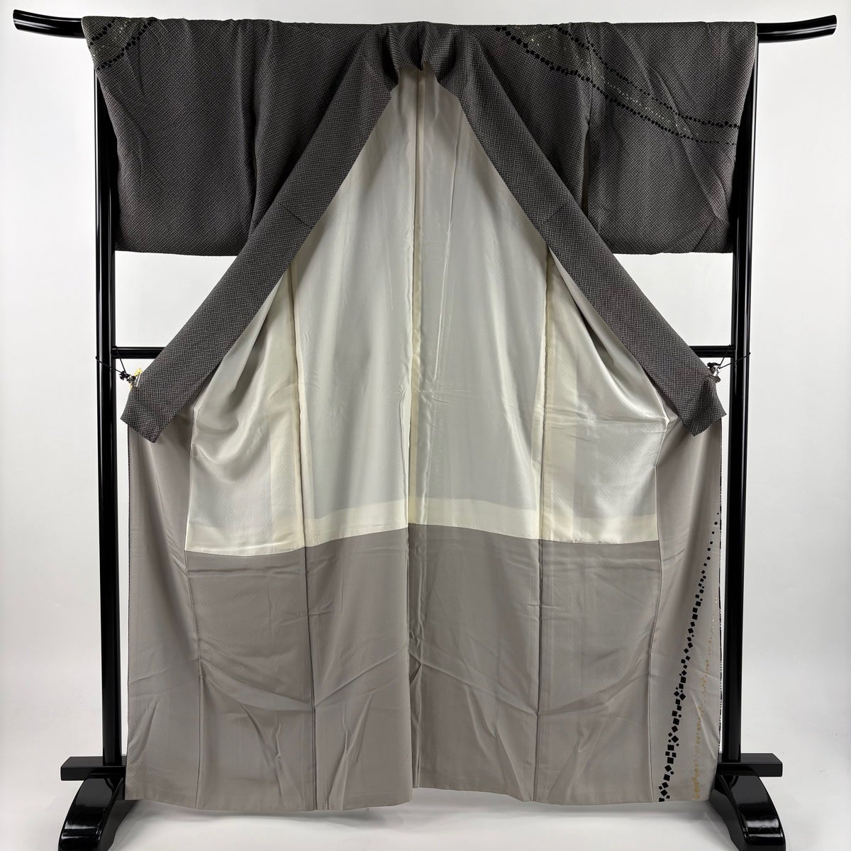 訪問着 身丈164.5cm 裄丈67cm M 袷 箔散らし シルエット 金銀糸 金銀彩 灰色 正絹 秀品