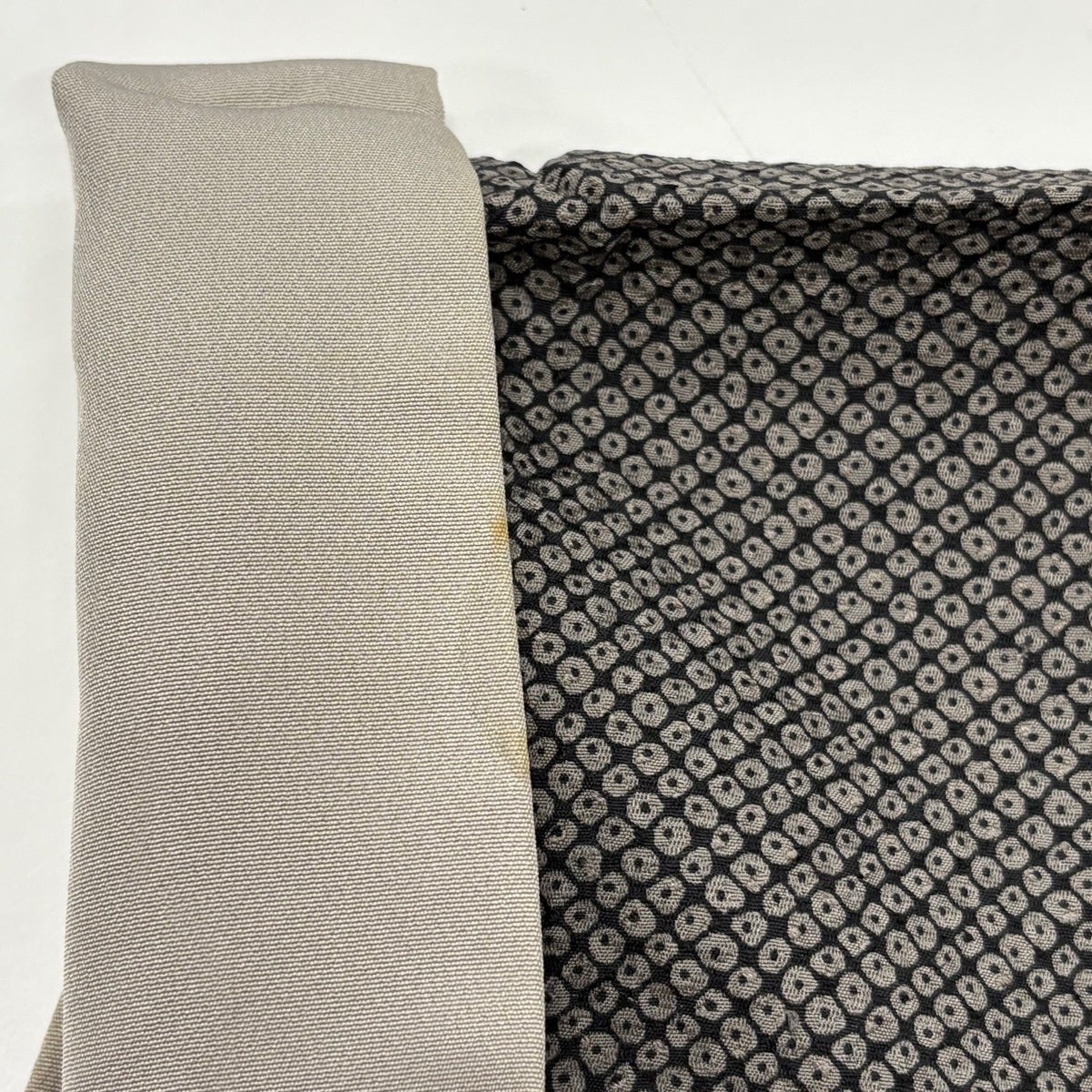 小紋 身丈154cm 裄丈64cm M 袷 斉藤三才 落款あり ぼかし 縮緬 灰緑 正絹 秀品 一つ紋