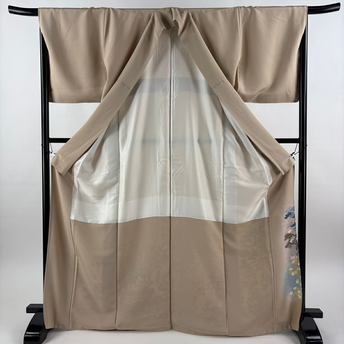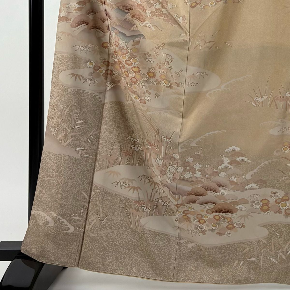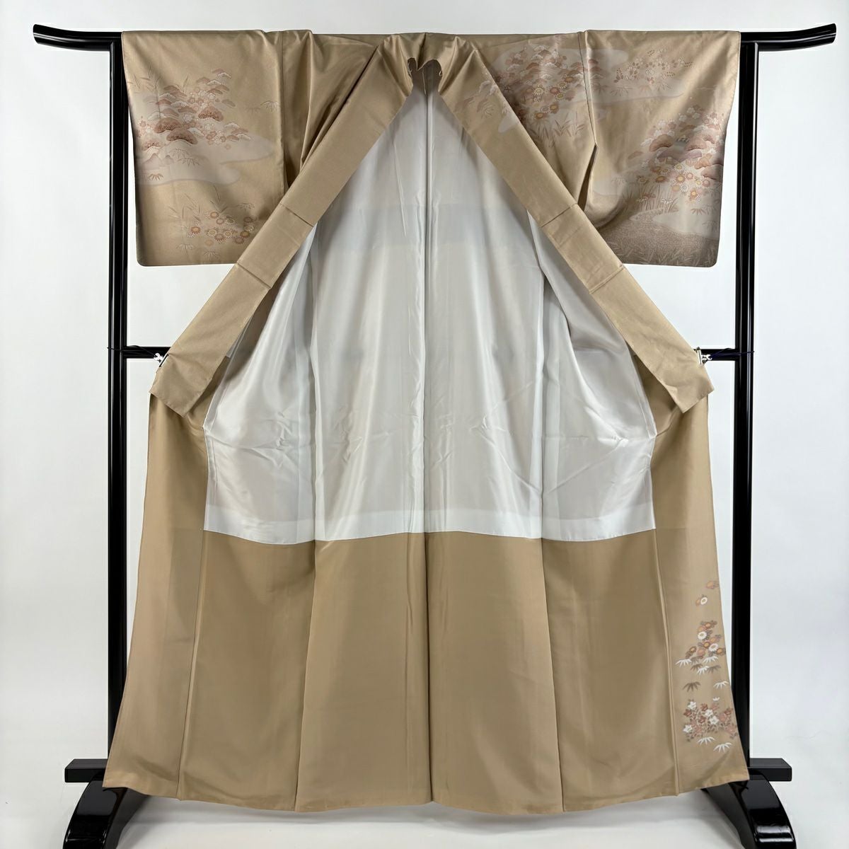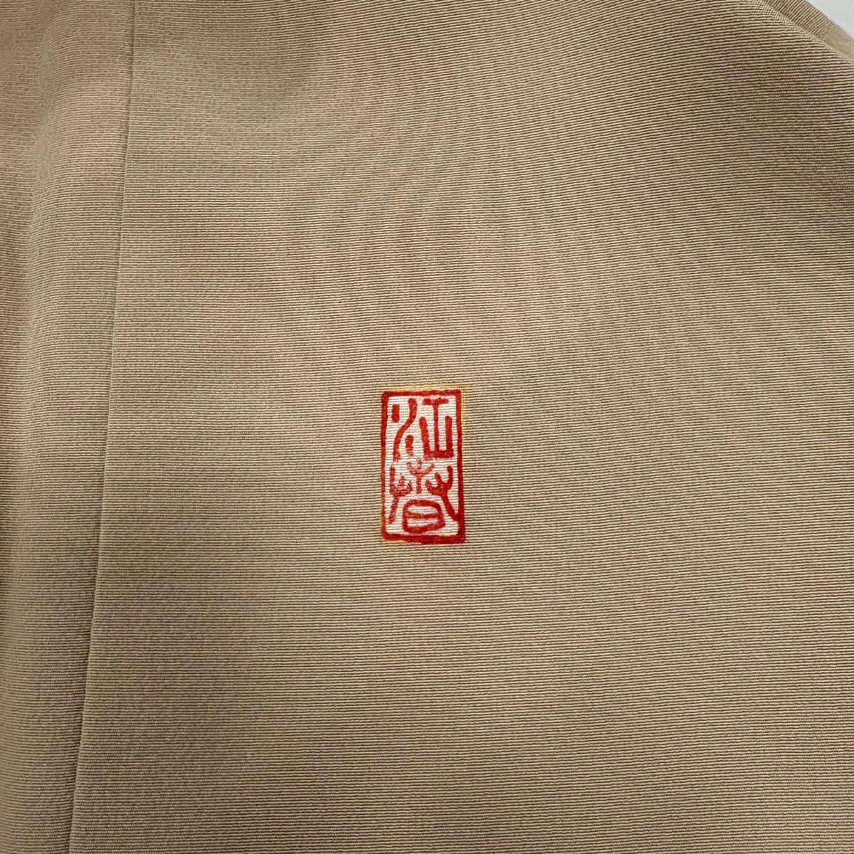 色留袖 身丈171cm 裄丈67cm M 袷 落款あり 松竹梅 鶴 ぼかし ベージュ 正絹 秀品 一つ紋